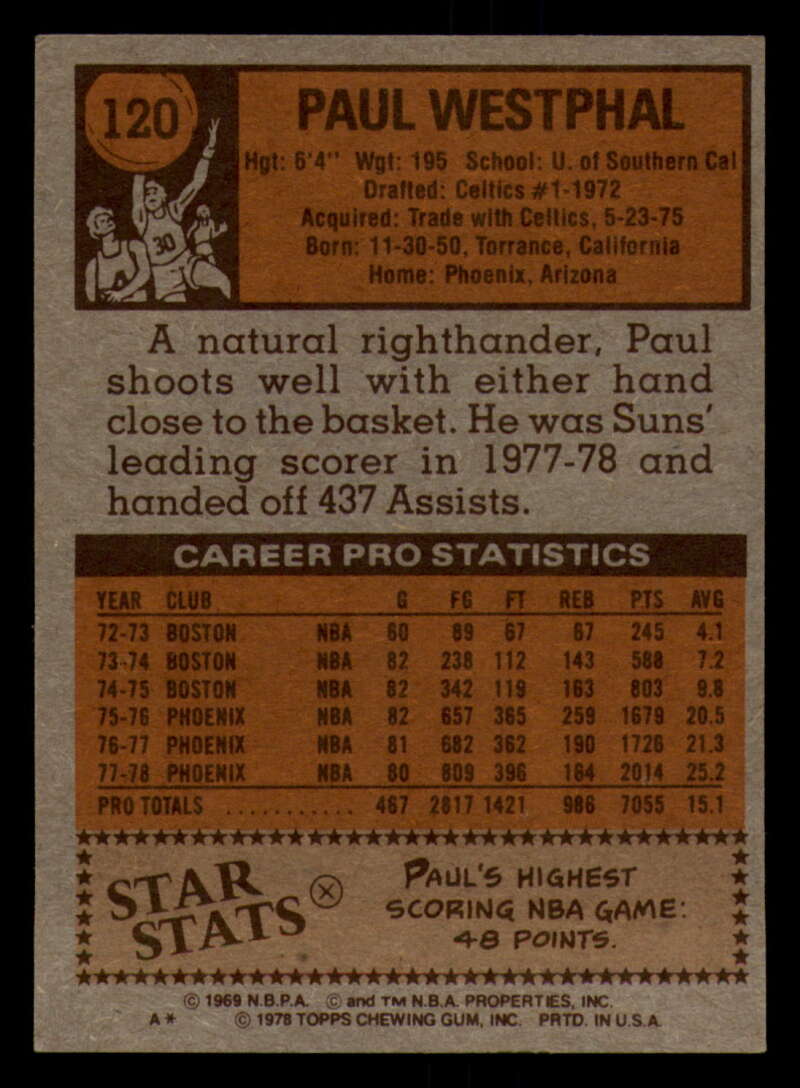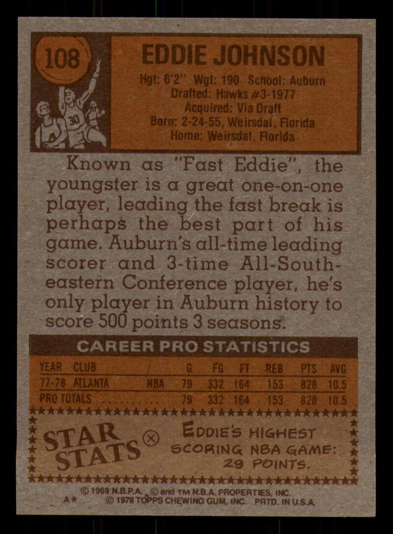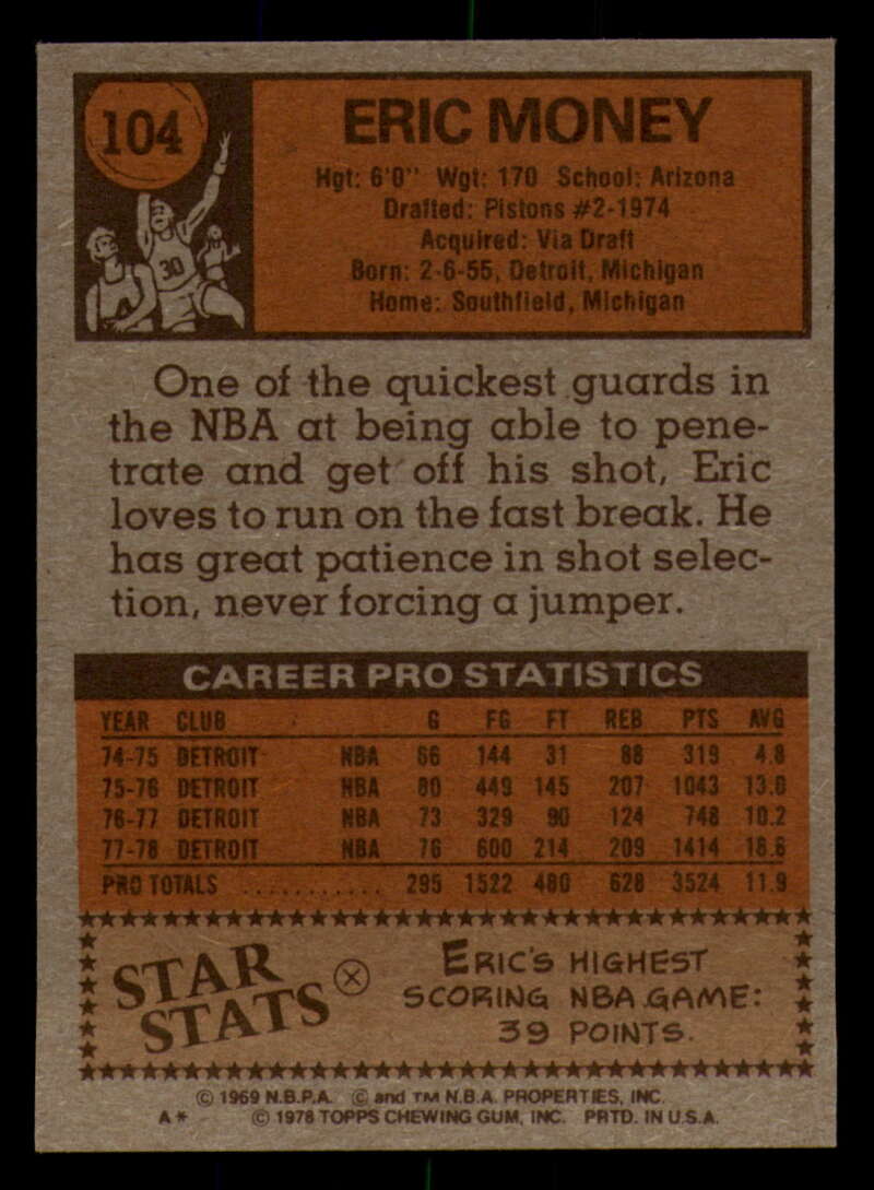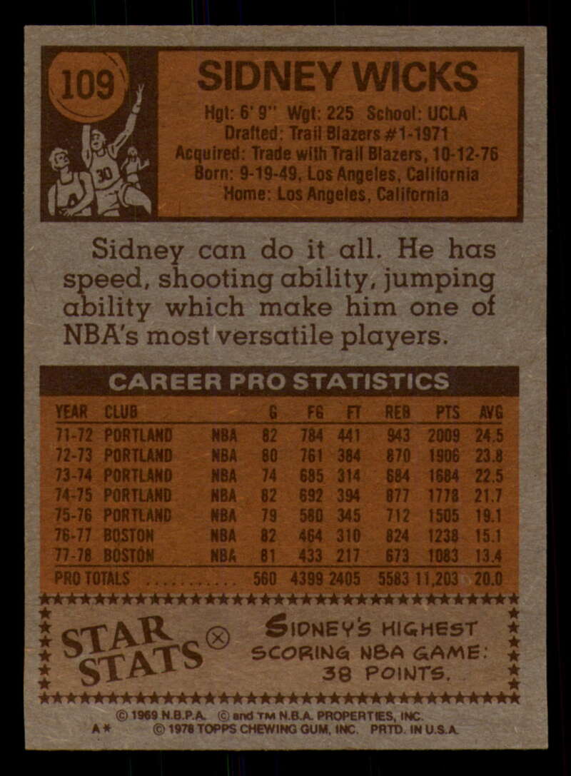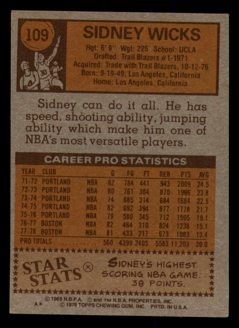 ALL MARTY'S STUFF The card in the scan is the card for sale. Each card has a high quality front and back scan of the item that you will receive. Please check the front and back pictures before buying. For combined shipping, please select all the cards that you would like from all of our many listings and have them in your shopping cart. We have a base shipping charge plus $0.05 for each additional card. Once you have made your selections, go to checkout and make one payment for the entire purchase. Multiple payments will result in multiple shipping charges. I f you have any questions, please ask . 1978-79 Topps Basketball #101 - #132 - Complete your set - Pick your card #101 John Gianelli EX NM Bucks (2)#101 John Gianelli EX NM Bucks #101 John Gianelli EX++ Excellent++ Bucks (2)#101 John Gianelli EX++ Excellent++ Bucks #101 John Gianelli NRMT-OC Bucks #102 Norm Van Lier EX Excellent Bulls #102 Norm Van Lier EX NM Bulls #102 Norm Van Lier NM Near Mint Bulls #102 Norm Van Lier NRMT-OC Bulls (2)#102 Norm Van Lier NRMT-OC Bulls #103 Caldwell Jones EX Excellent 76ers (2)#103 Caldwell Jones EX Excellent 76ers (3)#103 Caldwell Jones EX Excellent 76ers #103 Caldwell Jones NM Near Mint 76ers #103 Caldwell Jones taped 76ers #103 Caldwell Jones VG EX Very Good Exce 76ers #104 Eric Money EX NM Pistons (2)#104 Eric Money EX NM Pistons #104 Eric Money EX++ Excellent++ Pistons #104 Eric Money NM Near Mint Pistons (2)#104 Eric Money NM Near Mint Pistons #104 Eric Money VG Very Good Pistons #105 Jim Chones EX Excellent Cavaliers (2)#105 Jim Chones EX Excellent Cavaliers (3)#105 Jim Chones EX Excellent Cavaliers (4)#105 Jim Chones EX Excellent Cavaliers #105 Jim Chones NM Near Mint Cavaliers #106 John Lucas EX Excellent Rockets #106 John Lucas NM Near Mint Rockets (2)#106 John Lucas NM Near Mint Rockets #106 John Lucas tape residue Rockets #106 John Lucas VG Very Good Rockets #106 John Lucas VG EX Very Good Exce Rockets (2)#106 John Lucas VG EX Very Good Exce Rockets #107 Spencer Haywood EX Excellent Knicks #107 Spencer Haywood NM Near Mint Knicks (2)#107 Spencer Haywood NM Near Mint Knicks (3)#107 Spencer Haywood NM Near Mint Knicks #108 Eddie Johnson EX Excellent Hawks #108 Eddie Johnson EX++ Excellent++ Hawks #108 Eddie Johnson NM Near Mint Hawks #108 Eddie Johnson NRMT-OC Hawks (2)#108 Eddie Johnson NRMT-OC Hawks #109 Sidney Wicks EX NM Celtics #109 Sidney Wicks EX++ Excellent++ Celtics #109 Sidney Wicks NM Near Mint Celtics (2)#109 Sidney Wicks NM Near Mint Celtics #109 Sidney Wicks VG Very Good Celtics #109 Sidney Wicks VG EX Very Good Exce Celtics #110 Kareem Abdul-Jabbar EX NM Lakers #110 Kareem Abdul-Jabbar miscut Lakers #110 Kareem Abdul-Jabbar NM Near Mint Lakers (2)#110 Kareem Abdul-Jabbar NM Near Mint Lakers #110 Kareem Abdul-Jabbar NRMT oc Lakers #111 Sonny Parker EX Excellent Warriors #111 Sonny Parker EX++ Excellent++ Warriors #111 Sonny Parker NM Near Mint Warriors #111 Sonny Parker NRMT-OC Warriors (2)#111 Sonny Parker NRMT-OC Warriors #111 Sonny Parker wax stain Warriors #112 Randy Smith EX Excellent Clippers (2)#112 Randy Smith EX Excellent Clippers #112 Randy Smith NM Near Mint Clippers #112 Randy Smith NRMT-OC Clippers (2)#112 Randy Smith NRMT-OC Clippers #113 Kevin Grevey dent Bullets #113 Kevin Grevey EX Excellent Bullets #113 Kevin Grevey EX NM Bullets #113 Kevin Grevey miscut Bullets #113 Kevin Grevey NM Near Mint Bullets (2)#113 Kevin Grevey NM Near Mint Bullets #113 Kevin Grevey VG Very Good Bullets #114 Rich Kelley EX Excellent Jazz #114 Rich Kelley EX++ Excellent++ Jazz #114 Rich Kelley Fair Jazz #114 Rich Kelley miscut Jazz (2)#114 Rich Kelley miscut Jazz #114 Rich Kelley NM Near Mint Jazz (2)#114 Rich Kelley NM Near Mint Jazz #115 Scott May EX Excellent Bulls #115 Scott May EX NM Bulls (2)#115 Scott May EX NM Bulls #115 Scott May NM Near Mint Bulls (2)#115 Scott May NM Near Mint Bulls #115 Scott May tears creased Bulls #116 Lloyd Free EX Excellent 76ers #116 Lloyd Free EX NM 76ers #116 Lloyd Free NM Near Mint 76ers #116 Lloyd Free VG EX Very Good Exce 76ers (2)#116 Lloyd Free VG EX Very Good Exce 76ers #117 Jack Sikma EX NM #117 Jack Sikma NM Near Mint (2)#117 Jack Sikma NM Near Mint #118 Kevin Porter EX Excellent NJ Nets (2)#118 Kevin Porter EX Excellent NJ Nets (3)#118 Kevin Porter EX Excellent NJ Nets #118 Kevin Porter NRMT oc NJ Nets #118 Kevin Porter VG EX Very Good Exce NJ Nets #119 Darnell Hillman EX Excellent Nuggets #119 Darnell Hillman NM Near Mint Nuggets (2)#119 Darnell Hillman NM Near Mint Nuggets (3)#119 Darnell Hillman NM Near Mint Nuggets (4)#119 Darnell Hillman NM Near Mint Nuggets #120 Paul Westphal EX Excellent Suns (2)#120 Paul Westphal EX Excellent Suns #120 Paul Westphal EX++ Excellent++ Suns #120 Paul Westphal NRMT-OC Suns #120 Paul Westphal VG Very Good Suns #120 Paul Westphal VG EX Very Good Exce Suns #121 Richard Washington EX Excellent Kansas City K (2)#121 Richard Washington EX Excellent Kansas Cit (3)#121 Richard Washington EX Excellent Kansas Cit (4)#121 Richard Washington EX Excellent Kansas Cit #121 Richard Washington NRMT-OC Kansas City Kings #122 Dave Twardzik creased Blazers #122 Dave Twardzik EX NM Blazers #122 Dave Twardzik NM Near Mint Blazers (2)#122 Dave Twardzik NM Near Mint Blazers #122 Dave Twardzik VG EX Very Good Exce Blazers (2)#122 Dave Twardzik VG EX Very Good Exce Blazers #123 Mike Bantom creased Pacers #123 Mike Bantom EX NM Pacers #123 Mike Bantom miscut Pacers #123 Mike Bantom NM Near Mint Pacers (2)#123 Mike Bantom NM Near Mint Pacers #123 Mike Bantom VG Very Good Pacers #123 Mike Bantom VG EX Very Good Exce Pacers (2)#123 Mike Bantom VG EX Very Good Exce Pacers #124 Mike Newlin EX Excellent Rockets (2)#124 Mike Newlin EX Excellent Rockets #124 Mike Newlin NRMT-OC Rockets #124 Mike Newlin scuff Rockets #124 Mike Newlin VG EX Very Good Exce Rockets #125 Bob Lanier EX Excellent Pistons #125 Bob Lanier EX NM Pistons (2)#125 Bob Lanier EX NM Pistons (3)#125 Bob Lanier EX NM Pistons #125 Bob Lanier NM Near Mint Pistons #126 Ma