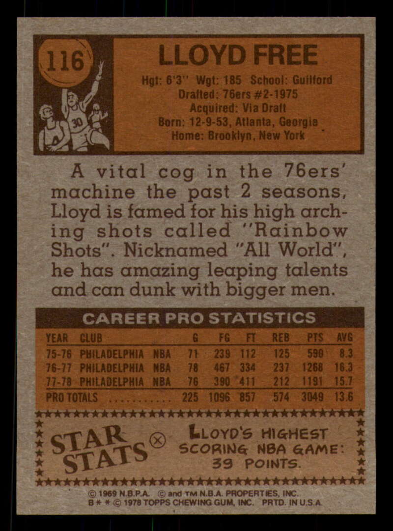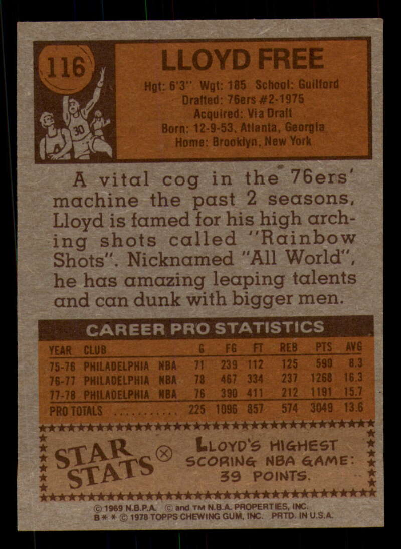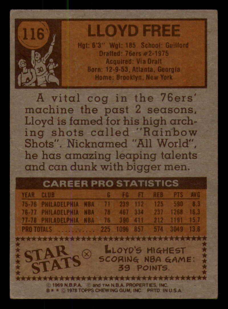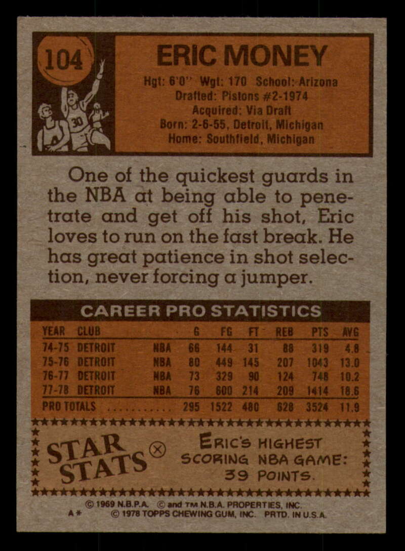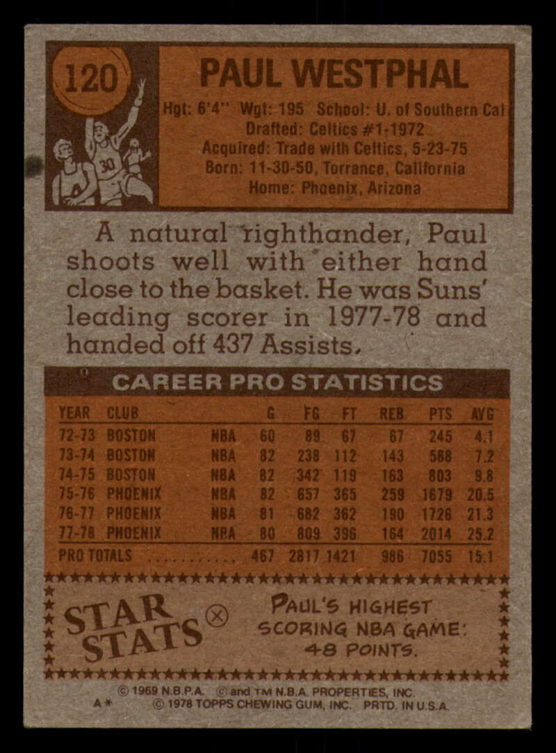 ALL MARTY'S STUFF The card in the scan is the card for sale. Each card has a high quality front and back scan of the item that you will receive. Please check the front and back pictures before buying. For combined shipping, please select all the cards that you would like from all of our many listings and have them in your shopping cart. We have a base shipping charge plus $0.05 for each additional card. Once you have made your selections, go to checkout and make one payment for the entire purchase. Multiple payments will result in multiple shipping charges. I f you have any questions, please ask . 1978-79 Topps Basketball #101 - #132 - Complete your set - Pick your card #101 John Gianelli EX NM Bucks (2)#101 John Gianelli EX NM Bucks #101 John Gianelli EX++ Excellent++ Bucks (2)#101 John Gianelli EX++ Excellent++ Bucks #101 John Gianelli NRMT-OC Bucks #102 Norm Van Lier EX Excellent Bulls #102 Norm Van Lier EX NM Bulls #102 Norm Van Lier NM Near Mint Bulls #102 Norm Van Lier NRMT-OC Bulls (2)#102 Norm Van Lier NRMT-OC Bulls #103 Caldwell Jones EX Excellent 76ers (2)#103 Caldwell Jones EX Excellent 76ers (3)#103 Caldwell Jones EX Excellent 76ers #103 Caldwell Jones NM Near Mint 76ers #103 Caldwell Jones taped 76ers #103 Caldwell Jones VG EX Very Good Exce 76ers #104 Eric Money EX NM Pistons (2)#104 Eric Money EX NM Pistons #104 Eric Money EX++ Excellent++ Pistons #104 Eric Money NM Near Mint Pistons (2)#104 Eric Money NM Near Mint Pistons #104 Eric Money VG Very Good Pistons #105 Jim Chones EX Excellent Cavaliers (2)#105 Jim Chones EX Excellent Cavaliers (3)#105 Jim Chones EX Excellent Cavaliers (4)#105 Jim Chones EX Excellent Cavaliers #105 Jim Chones NM Near Mint Cavaliers #106 John Lucas EX Excellent Rockets #106 John Lucas NM Near Mint Rockets (2)#106 John Lucas NM Near Mint Rockets #106 John Lucas tape residue Rockets #106 John Lucas VG Very Good Rockets #106 John Lucas VG EX Very Good Exce Rockets (2)#106 John Lucas VG EX Very Good Exce Rockets #107 Spencer Haywood EX Excellent Knicks #107 Spencer Haywood NM Near Mint Knicks (2)#107 Spencer Haywood NM Near Mint Knicks (3)#107 Spencer Haywood NM Near Mint Knicks #108 Eddie Johnson EX Excellent Hawks #108 Eddie Johnson EX++ Excellent++ Hawks #108 Eddie Johnson NM Near Mint Hawks #108 Eddie Johnson NRMT-OC Hawks (2)#108 Eddie Johnson NRMT-OC Hawks #109 Sidney Wicks EX NM Celtics #109 Sidney Wicks EX++ Excellent++ Celtics #109 Sidney Wicks NM Near Mint Celtics (2)#109 Sidney Wicks NM Near Mint Celtics #109 Sidney Wicks VG Very Good Celtics #109 Sidney Wicks VG EX Very Good Exce Celtics #110 Kareem Abdul-Jabbar EX NM Lakers #110 Kareem Abdul-Jabbar miscut Lakers #110 Kareem Abdul-Jabbar NM Near Mint Lakers (2)#110 Kareem Abdul-Jabbar NM Near Mint Lakers #110 Kareem Abdul-Jabbar NRMT oc Lakers #111 Sonny Parker EX Excellent Warriors #111 Sonny Parker EX++ Excellent++ Warriors #111 Sonny Parker NM Near Mint Warriors #111 Sonny Parker NRMT-OC Warriors (2)#111 Sonny Parker NRMT-OC Warriors #111 Sonny Parker wax stain Warriors #112 Randy Smith EX Excellent Clippers (2)#112 Randy Smith EX Excellent Clippers #112 Randy Smith NM Near Mint Clippers #112 Randy Smith NRMT-OC Clippers (2)#112 Randy Smith NRMT-OC Clippers #113 Kevin Grevey dent Bullets #113 Kevin Grevey EX Excellent Bullets #113 Kevin Grevey EX NM Bullets #113 Kevin Grevey miscut Bullets #113 Kevin Grevey NM Near Mint Bullets (2)#113 Kevin Grevey NM Near Mint Bullets #113 Kevin Grevey VG Very Good Bullets #114 Rich Kelley EX Excellent Jazz #114 Rich Kelley EX++ Excellent++ Jazz #114 Rich Kelley Fair Jazz #114 Rich Kelley miscut Jazz (2)#114 Rich Kelley miscut Jazz #114 Rich Kelley NM Near Mint Jazz (2)#114 Rich Kelley NM Near Mint Jazz #115 Scott May EX Excellent Bulls #115 Scott May EX NM Bulls (2)#115 Scott May EX NM Bulls #115 Scott May NM Near Mint Bulls (2)#115 Scott May NM Near Mint Bulls #115 Scott May tears creased Bulls #116 Lloyd Free EX Excellent 76ers #116 Lloyd Free EX NM 76ers #116 Lloyd Free NM Near Mint 76ers #116 Lloyd Free VG EX Very Good Exce 76ers (2)#116 Lloyd Free VG EX Very Good Exce 76ers #117 Jack Sikma EX NM #117 Jack Sikma NM Near Mint (2)#117 Jack Sikma NM Near Mint #118 Kevin Porter EX Excellent NJ Nets (2)#118 Kevin Porter EX Excellent NJ Nets (3)#118 Kevin Porter EX Excellent NJ Nets #118 Kevin Porter NRMT oc NJ Nets #118 Kevin Porter VG EX Very Good Exce NJ Nets #119 Darnell Hillman EX Excellent Nuggets #119 Darnell Hillman NM Near Mint Nuggets (2)#119 Darnell Hillman NM Near Mint Nuggets (3)#119 Darnell Hillman NM Near Mint Nuggets (4)#119 Darnell Hillman NM Near Mint Nuggets #120 Paul Westphal EX Excellent Suns (2)#120 Paul Westphal EX Excellent Suns #120 Paul Westphal EX++ Excellent++ Suns #120 Paul Westphal NRMT-OC Suns #120 Paul Westphal VG Very Good Suns #120 Paul Westphal VG EX Very Good Exce Suns #121 Richard Washington EX Excellent Kansas City K (2)#121 Richard Washington EX Excellent Kansas Cit (3)#121 Richard Washington EX Excellent Kansas Cit (4)#121 Richard Washington EX Excellent Kansas Cit #121 Richard Washington NRMT-OC Kansas City Kings #122 Dave Twardzik creased Blazers #122 Dave Twardzik EX NM Blazers #122 Dave Twardzik NM Near Mint Blazers (2)#122 Dave Twardzik NM Near Mint Blazers #122 Dave Twardzik VG EX Very Good Exce Blazers (2)#122 Dave Twardzik VG EX Very Good Exce Blazers #123 Mike Bantom creased Pacers #123 Mike Bantom EX NM Pacers #123 Mike Bantom miscut Pacers #123 Mike Bantom NM Near Mint Pacers (2)#123 Mike Bantom NM Near Mint Pacers #123 Mike Bantom VG Very Good Pacers #123 Mike Bantom VG EX Very Good Exce Pacers (2)#123 Mike Bantom VG EX Very Good Exce Pacers #124 Mike Newlin EX Excellent Rockets (2)#124 Mike Newlin EX Excellent Rockets #124 Mike Newlin NRMT-OC Rockets #124 Mike Newlin scuff Rockets #124 Mike Newlin VG EX Very Good Exce Rockets #125 Bob Lanier EX Excellent Pistons #125 Bob Lanier EX NM Pistons (2)#125 Bob Lanier EX NM Pistons (3)#125 Bob Lanier EX NM Pistons #125 Bob Lanier NM Near Mint Pistons #126 Ma