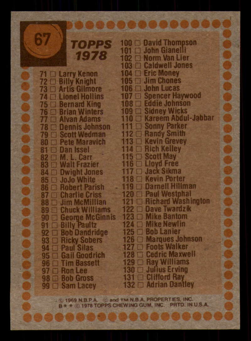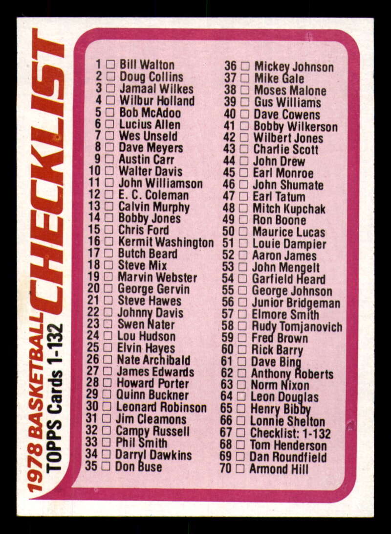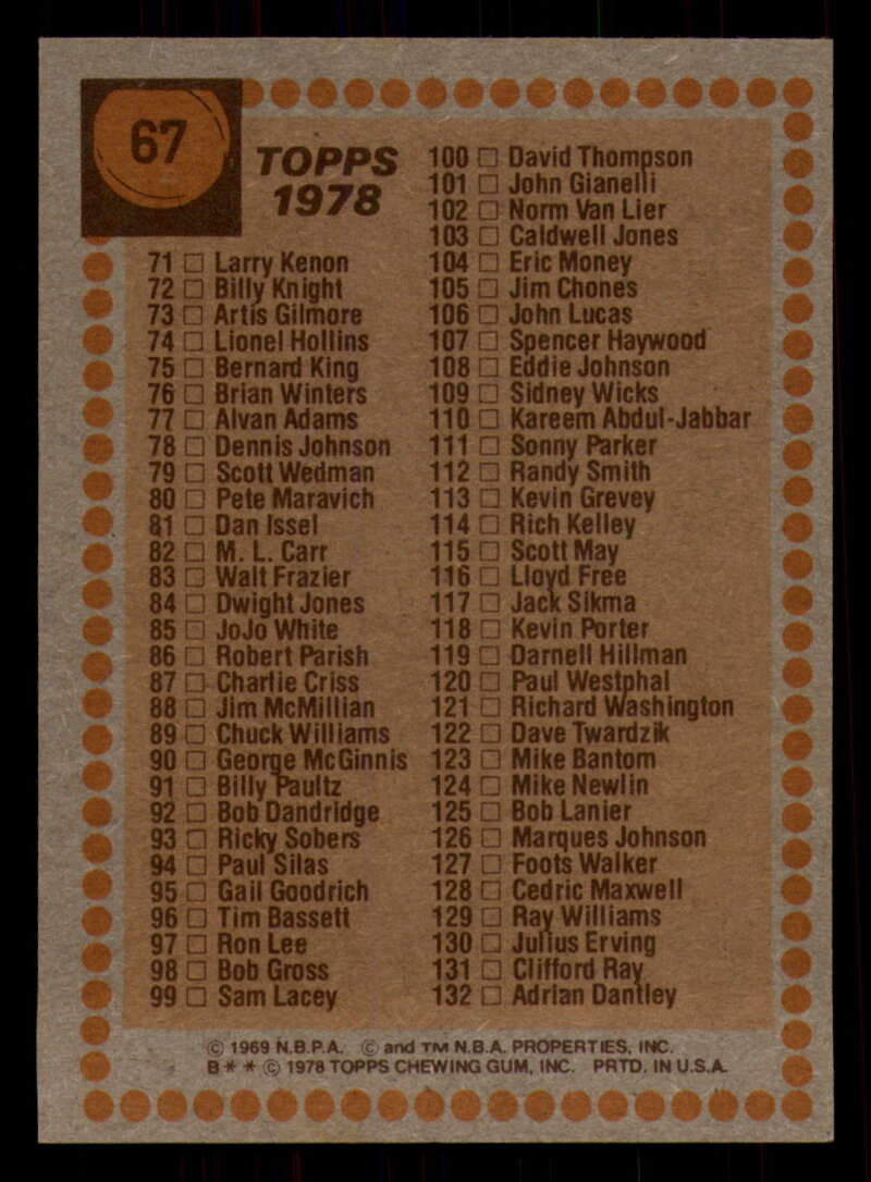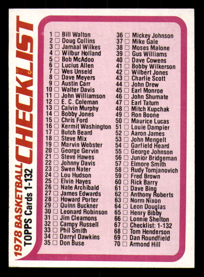 ALL MARTY'S STUFF The card in the scan is the card for sale. Each card has a high quality front and back scan of the item that you will receive. Please check the front and back pictures before buying. For combined shipping, please select all the cards that you would like from all of our many listings and have them in your shopping cart. We have a base shipping charge plus $0.05 for each additional card. Once you have made your selections, go to checkout and make one payment for the entire purchase. Multiple payments will result in multiple shipping charges. I f you have any questions, please ask . 1978-79 Topps Basketball #51 - #100 - Complete your set - Pick your card #51 Louie Dampier EX NM Spurs #51 Louie Dampier EX++ Excellent++ Spurs #51 Louie Dampier NM Near Mint Spurs (2)#51 Louie Dampier NM Near Mint Spurs (3)#51 Louie Dampier NM Near Mint Spurs #52 Aaron James NM Near Mint Jazz #52 Aaron James NRMT-OC Jazz #52 Aaron James print defect Jazz #53 John Mengelt EX Excellent Bulls (2)#53 John Mengelt EX Excellent Bulls #53 John Mengelt NM Near Mint Bulls (2)#53 John Mengelt NM Near Mint Bulls #53 John Mengelt VG EX Very Good Exce Bulls #54 Garfield Heard dent Suns #54 Garfield Heard EX Excellent Suns (2)#54 Garfield Heard EX Excellent Suns #54 Garfield Heard EX++ Excellent++ Suns #54 Garfield Heard NM Near Mint Suns (2)#54 Garfield Heard NM Near Mint Suns #55 George Johnson EX NM NJ Nets #55 George Johnson NM Near Mint NJ Nets (2)#55 George Johnson NM Near Mint NJ Nets (3)#55 George Johnson NM Near Mint NJ Nets (4)#55 George Johnson NM Near Mint NJ Nets #55 George Johnson taped NJ Nets #55 George Johnson VG Very Good NJ Nets #56 Junior Bridgeman NM Near Mint Bucks (2)#56 Junior Bridgeman NM Near Mint Bucks (3)#56 Junior Bridgeman NM Near Mint Bucks (4)#56 Junior Bridgeman NM Near Mint Bucks #56 Junior Bridgeman NRMT-OC Bucks #57 Elmore Smith EX NM Cavaliers (2)#57 Elmore Smith EX NM Cavaliers #57 Elmore Smith EX++ Excellent++ Cavaliers #57 Elmore Smith NM Near Mint Cavaliers #57 Elmore Smith VG EX Very Good Exce Cavaliers #58 Rudy Tomjanovich EX Excellent Rockets #58 Rudy Tomjanovich EX NM Rockets #58 Rudy Tomjanovich NM Near Mint Rockets (2)#58 Rudy Tomjanovich NM Near Mint Rockets (3)#58 Rudy Tomjanovich NM Near Mint Rockets #58 Rudy Tomjanovich tape residue Rockets #58 Rudy Tomjanovich VG Very Good Rockets #59 Fred Brown EX Excellent Seattle SuperSonics #59 Fred Brown Fair Seattle SuperSonics #59 Fred Brown NM Near Mint Seattle SuperSonics #59 Fred Brown NM Near Mint #59 Fred Brown VG EX Very Good Exce Seattle SuperS #59 Fred Brown wax stain Seattle SuperSonics #6 Lucius Allen creased Kansas City Kings #60 Rick Barry NM Near Mint Warriors (2)#60 Rick Barry NM Near Mint Warriors (3)#60 Rick Barry NM Near Mint Warriors (4)#60 Rick Barry NM Near Mint Warriors (5)#60 Rick Barry NM Near Mint Warriors #61 Dave Bing EX NM Celtics #61 Dave Bing NM Near Mint Celtics (2)#61 Dave Bing NM Near Mint Celtics (3)#61 Dave Bing NM Near Mint Celtics (4)#61 Dave Bing NM Near Mint Celtics #62 Anthony Roberts NM Near Mint Nuggets (2)#62 Anthony Roberts NM Near Mint Nuggets (3)#62 Anthony Roberts NM Near Mint Nuggets #62 Anthony Roberts VG EX Very Good Exce Nuggets (2)#62 Anthony Roberts VG EX Very Good Exce Nugget #63 Norm Nixon EX Excellent Lakers #63 Norm Nixon NRMT oc Lakers (2)#63 Norm Nixon NRMT oc Lakers #64 Leon Douglas EX Excellent Pistons (2)#64 Leon Douglas EX Excellent Pistons #64 Leon Douglas NM Near Mint Pistons #64 Leon Douglas NRMT-OC Pistons #64 Leon Douglas VG EX Very Good Exce Pistons #65 Henry Bibby EX NM 76ers #65 Henry Bibby NM Near Mint 76ers (2)#65 Henry Bibby NM Near Mint 76ers #66 Lonnie Shelton EX Excellent Knicks (2)#66 Lonnie Shelton EX Excellent Knicks (3)#66 Lonnie Shelton EX Excellent Knicks (4)#66 Lonnie Shelton EX Excellent Knicks #66 Lonnie Shelton EX NM Knicks #67 Checklist 1-132 EX Excellent #67 Checklist 1-132 NM Near Mint (2)#67 Checklist 1-132 NM Near Mint #68 Tom Henderson EX Excellent Bullets (2)#68 Tom Henderson EX Excellent Bullets #68 Tom Henderson NM Near Mint Bullets (2)#68 Tom Henderson NM Near Mint Bullets #68 Tom Henderson surface wrinkles Bullets #69 Dan Roundfield EX Excellent Pacers #69 Dan Roundfield G VG Good Very Good Pacers #69 Dan Roundfield NM Near Mint Pacers (2)#69 Dan Roundfield NM Near Mint Pacers #69 Dan Roundfield NRMT-OC Pacers #69 Dan Roundfield VG EX Very Good Exce Pacers #70 Armond Hill dent Hawks #70 Armond Hill EX Excellent Hawks #70 Armond Hill EX NM Hawks #70 Armond Hill G VG Good Very Good Hawks #70 Armond Hill NM Near Mint Hawks (2)#70 Armond Hill NM Near Mint Hawks #70 Armond Hill VG EX Very Good Exce Hawks #71 Larry Kenon EX Excellent Spurs (2)#71 Larry Kenon EX Excellent Spurs #71 Larry Kenon EX NM Spurs (2)#71 Larry Kenon EX NM Spurs #71 Larry Kenon EX++ Excellent++ Spurs #72 Billy Knight EX Excellent Clippers #72 Billy Knight NM Near Mint Clippers (2)#72 Billy Knight NM Near Mint Clippers #72 Billy Knight VG EX Very Good Exce Clippers #72 Billy Knight wrinkles Clippers #73 Artis Gilmore NM Near Mint Bulls (2)#73 Artis Gilmore NM Near Mint Bulls (3)#73 Artis Gilmore NM Near Mint Bulls #74 Lionel Hollins EX Excellent Blazers (2)#74 Lionel Hollins EX Excellent Blazers (3)#74 Lionel Hollins EX Excellent Blazers #74 Lionel Hollins miscut Blazers #74 Lionel Hollins NM Near Mint Blazers #75 Bernard King EX NM NJ Nets #75 Bernard King EX+ NJ Nets #75 Bernard King EXNM oc NJ Nets #75 Bernard King NRMT oc NJ Nets #75 Bernard King scuff NJ Nets #76 Brian Winters EX Excellent Bucks (2)#76 Brian Winters EX Excellent Bucks #76 Brian Winters EX++ Excellent++ Bucks #76 Brian Winters VG EX Very Good Exce Bucks #77 Alvan Adams EX Excellent Suns (2)#77 Alvan Adams EX Excellent Suns #77 Alvan Adams NM Near Mint Suns #77 Alvan Adams taped Suns #77 Alvan Adams VG EX Very Good Exce Suns #78 Dennis Johnson dents Seattle SuperSonics #78 Dennis Johnson EX NM Seattle SuperSonics #78 Dennis Johnson NM Near Mint Seattle SuperSonic #78 Dennis Johnson NRM