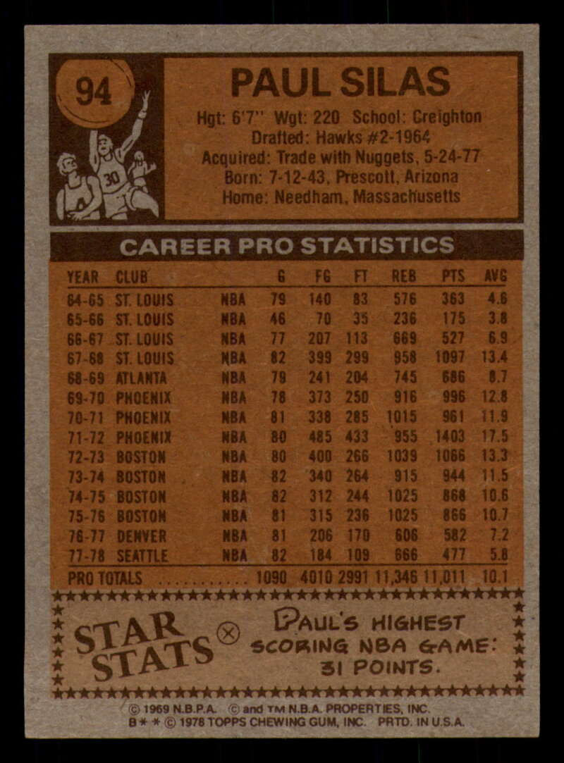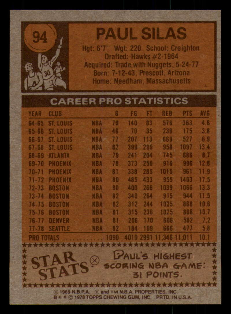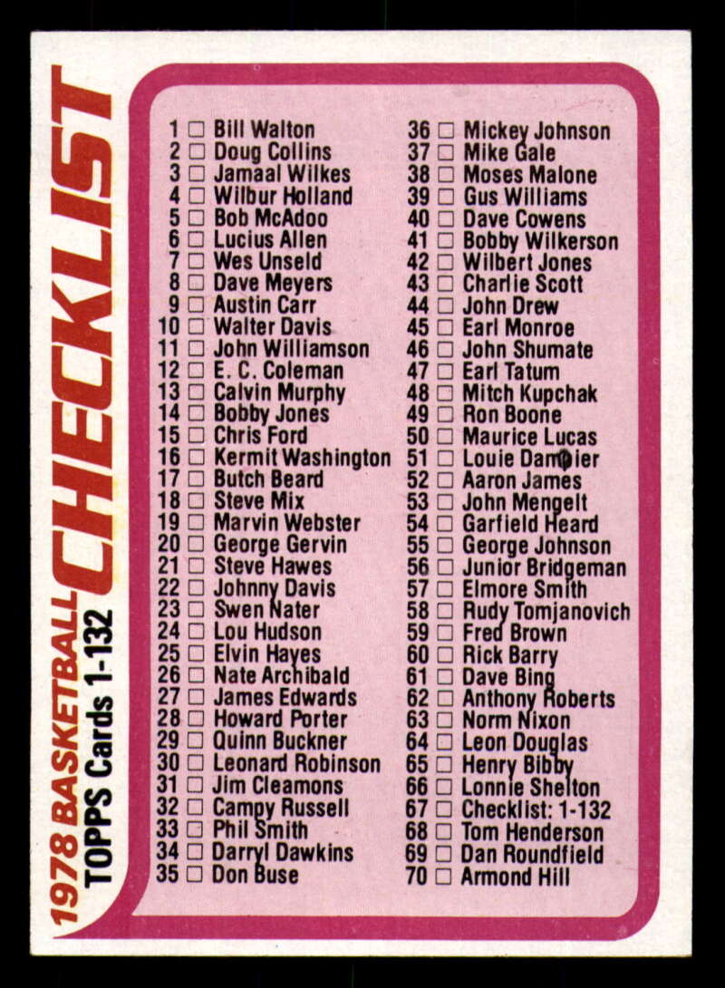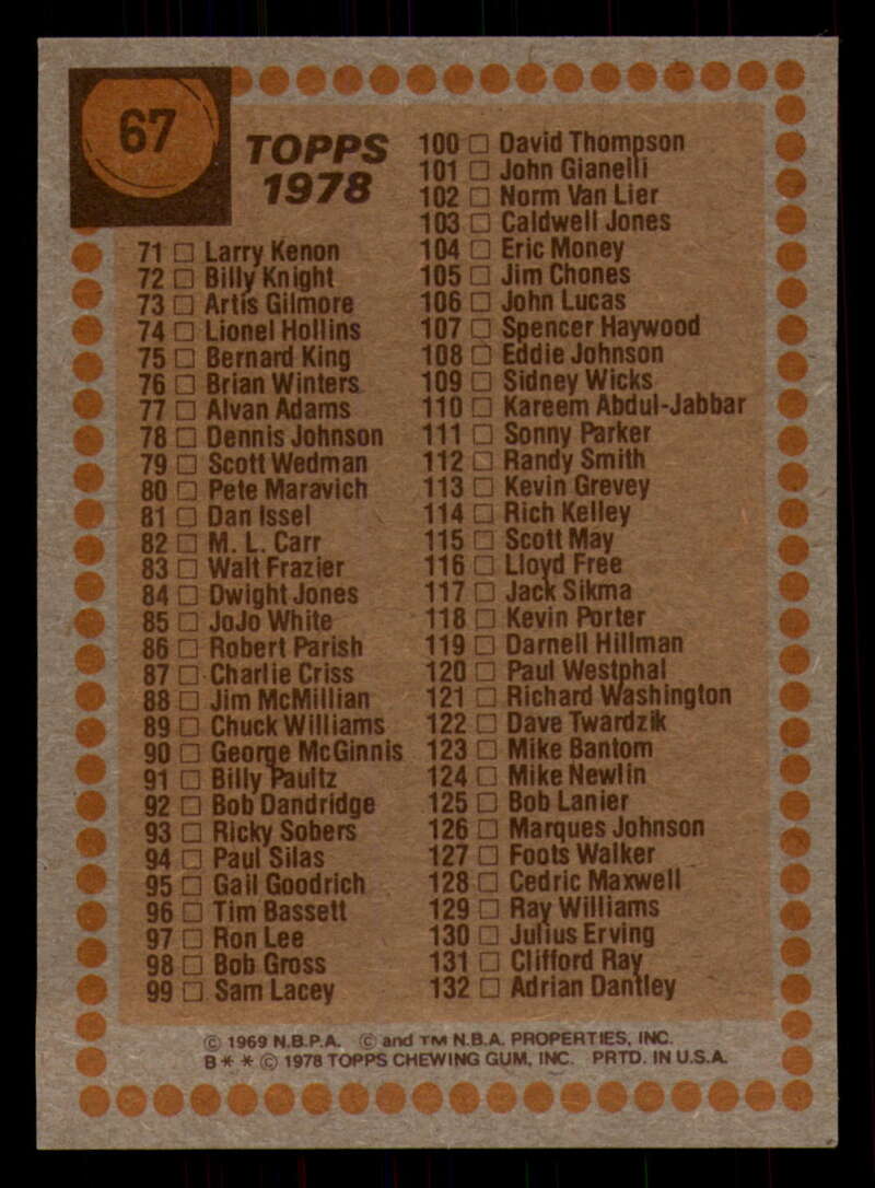 ALL MARTY'S STUFF The card in the scan is the card for sale. Each card has a high quality front and back scan of the item that you will receive. Please check the front and back pictures before buying. For combined shipping, please select all the cards that you would like from all of our many listings and have them in your shopping cart. We have a base shipping charge plus $0.05 for each additional card. Once you have made your selections, go to checkout and make one payment for the entire purchase. Multiple payments will result in multiple shipping charges. I f you have any questions, please ask . 1978-79 Topps Basketball #51 - #100 - Complete your set - Pick your card #51 Louie Dampier EX NM Spurs #51 Louie Dampier EX++ Excellent++ Spurs #51 Louie Dampier NM Near Mint Spurs (2)#51 Louie Dampier NM Near Mint Spurs (3)#51 Louie Dampier NM Near Mint Spurs #52 Aaron James NM Near Mint Jazz #52 Aaron James NRMT-OC Jazz #52 Aaron James print defect Jazz #53 John Mengelt EX Excellent Bulls (2)#53 John Mengelt EX Excellent Bulls #53 John Mengelt NM Near Mint Bulls (2)#53 John Mengelt NM Near Mint Bulls #53 John Mengelt VG EX Very Good Exce Bulls #54 Garfield Heard dent Suns #54 Garfield Heard EX Excellent Suns (2)#54 Garfield Heard EX Excellent Suns #54 Garfield Heard EX++ Excellent++ Suns #54 Garfield Heard NM Near Mint Suns (2)#54 Garfield Heard NM Near Mint Suns #55 George Johnson EX NM NJ Nets #55 George Johnson NM Near Mint NJ Nets (2)#55 George Johnson NM Near Mint NJ Nets (3)#55 George Johnson NM Near Mint NJ Nets (4)#55 George Johnson NM Near Mint NJ Nets #55 George Johnson taped NJ Nets #55 George Johnson VG Very Good NJ Nets #56 Junior Bridgeman NM Near Mint Bucks (2)#56 Junior Bridgeman NM Near Mint Bucks (3)#56 Junior Bridgeman NM Near Mint Bucks (4)#56 Junior Bridgeman NM Near Mint Bucks #56 Junior Bridgeman NRMT-OC Bucks #57 Elmore Smith EX NM Cavaliers (2)#57 Elmore Smith EX NM Cavaliers #57 Elmore Smith EX++ Excellent++ Cavaliers #57 Elmore Smith NM Near Mint Cavaliers #57 Elmore Smith VG EX Very Good Exce Cavaliers #58 Rudy Tomjanovich EX Excellent Rockets #58 Rudy Tomjanovich EX NM Rockets #58 Rudy Tomjanovich NM Near Mint Rockets (2)#58 Rudy Tomjanovich NM Near Mint Rockets (3)#58 Rudy Tomjanovich NM Near Mint Rockets #58 Rudy Tomjanovich tape residue Rockets #58 Rudy Tomjanovich VG Very Good Rockets #59 Fred Brown EX Excellent Seattle SuperSonics #59 Fred Brown Fair Seattle SuperSonics #59 Fred Brown NM Near Mint Seattle SuperSonics #59 Fred Brown NM Near Mint #59 Fred Brown VG EX Very Good Exce Seattle SuperS #59 Fred Brown wax stain Seattle SuperSonics #6 Lucius Allen creased Kansas City Kings #60 Rick Barry NM Near Mint Warriors (2)#60 Rick Barry NM Near Mint Warriors (3)#60 Rick Barry NM Near Mint Warriors (4)#60 Rick Barry NM Near Mint Warriors (5)#60 Rick Barry NM Near Mint Warriors #61 Dave Bing EX NM Celtics #61 Dave Bing NM Near Mint Celtics (2)#61 Dave Bing NM Near Mint Celtics (3)#61 Dave Bing NM Near Mint Celtics (4)#61 Dave Bing NM Near Mint Celtics #62 Anthony Roberts NM Near Mint Nuggets (2)#62 Anthony Roberts NM Near Mint Nuggets (3)#62 Anthony Roberts NM Near Mint Nuggets #62 Anthony Roberts VG EX Very Good Exce Nuggets (2)#62 Anthony Roberts VG EX Very Good Exce Nugget #63 Norm Nixon EX Excellent Lakers #63 Norm Nixon NRMT oc Lakers (2)#63 Norm Nixon NRMT oc Lakers #64 Leon Douglas EX Excellent Pistons (2)#64 Leon Douglas EX Excellent Pistons #64 Leon Douglas NM Near Mint Pistons #64 Leon Douglas NRMT-OC Pistons #64 Leon Douglas VG EX Very Good Exce Pistons #65 Henry Bibby EX NM 76ers #65 Henry Bibby NM Near Mint 76ers (2)#65 Henry Bibby NM Near Mint 76ers #66 Lonnie Shelton EX Excellent Knicks (2)#66 Lonnie Shelton EX Excellent Knicks (3)#66 Lonnie Shelton EX Excellent Knicks (4)#66 Lonnie Shelton EX Excellent Knicks #66 Lonnie Shelton EX NM Knicks #67 Checklist 1-132 EX Excellent #67 Checklist 1-132 NM Near Mint (2)#67 Checklist 1-132 NM Near Mint #68 Tom Henderson EX Excellent Bullets (2)#68 Tom Henderson EX Excellent Bullets #68 Tom Henderson NM Near Mint Bullets (2)#68 Tom Henderson NM Near Mint Bullets #68 Tom Henderson surface wrinkles Bullets #69 Dan Roundfield EX Excellent Pacers #69 Dan Roundfield G VG Good Very Good Pacers #69 Dan Roundfield NM Near Mint Pacers (2)#69 Dan Roundfield NM Near Mint Pacers #69 Dan Roundfield NRMT-OC Pacers #69 Dan Roundfield VG EX Very Good Exce Pacers #70 Armond Hill dent Hawks #70 Armond Hill EX Excellent Hawks #70 Armond Hill EX NM Hawks #70 Armond Hill G VG Good Very Good Hawks #70 Armond Hill NM Near Mint Hawks (2)#70 Armond Hill NM Near Mint Hawks #70 Armond Hill VG EX Very Good Exce Hawks #71 Larry Kenon EX Excellent Spurs (2)#71 Larry Kenon EX Excellent Spurs #71 Larry Kenon EX NM Spurs (2)#71 Larry Kenon EX NM Spurs #71 Larry Kenon EX++ Excellent++ Spurs #72 Billy Knight EX Excellent Clippers #72 Billy Knight NM Near Mint Clippers (2)#72 Billy Knight NM Near Mint Clippers #72 Billy Knight VG EX Very Good Exce Clippers #72 Billy Knight wrinkles Clippers #73 Artis Gilmore NM Near Mint Bulls (2)#73 Artis Gilmore NM Near Mint Bulls (3)#73 Artis Gilmore NM Near Mint Bulls #74 Lionel Hollins EX Excellent Blazers (2)#74 Lionel Hollins EX Excellent Blazers (3)#74 Lionel Hollins EX Excellent Blazers #74 Lionel Hollins miscut Blazers #74 Lionel Hollins NM Near Mint Blazers #75 Bernard King EX NM NJ Nets #75 Bernard King EX+ NJ Nets #75 Bernard King EXNM oc NJ Nets #75 Bernard King NRMT oc NJ Nets #75 Bernard King scuff NJ Nets #76 Brian Winters EX Excellent Bucks (2)#76 Brian Winters EX Excellent Bucks #76 Brian Winters EX++ Excellent++ Bucks #76 Brian Winters VG EX Very Good Exce Bucks #77 Alvan Adams EX Excellent Suns (2)#77 Alvan Adams EX Excellent Suns #77 Alvan Adams NM Near Mint Suns #77 Alvan Adams taped Suns #77 Alvan Adams VG EX Very Good Exce Suns #78 Dennis Johnson dents Seattle SuperSonics #78 Dennis Johnson EX NM Seattle SuperSonics #78 Dennis Johnson NM Near Mint Seattle SuperSonic #78 Dennis Johnson NRM