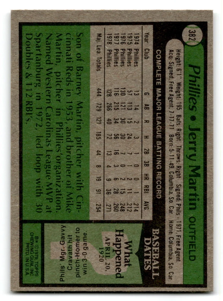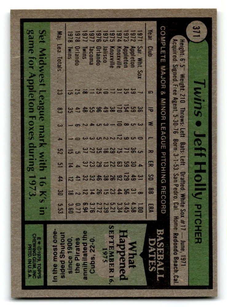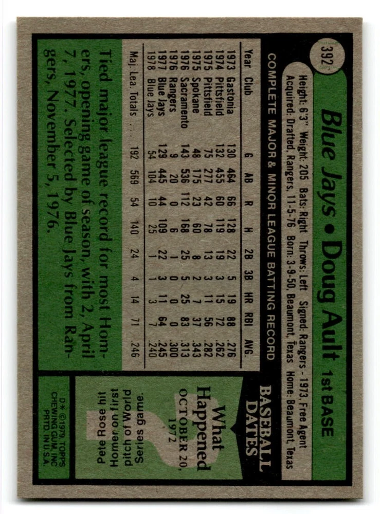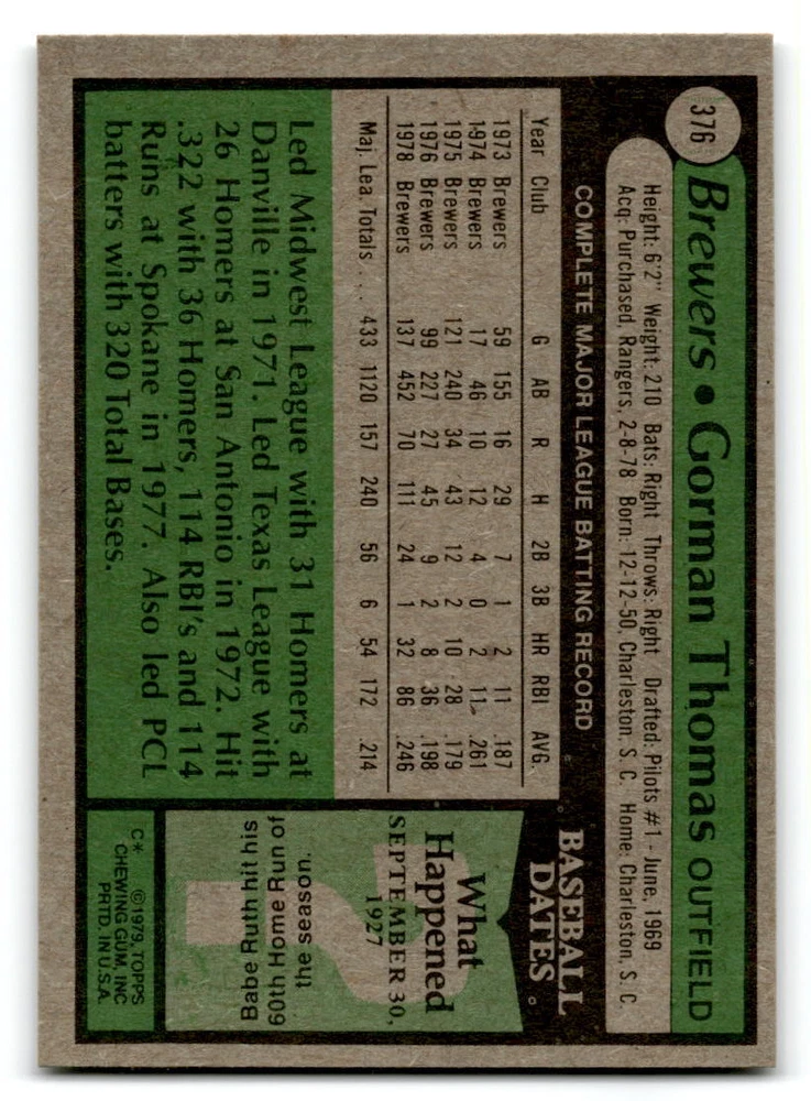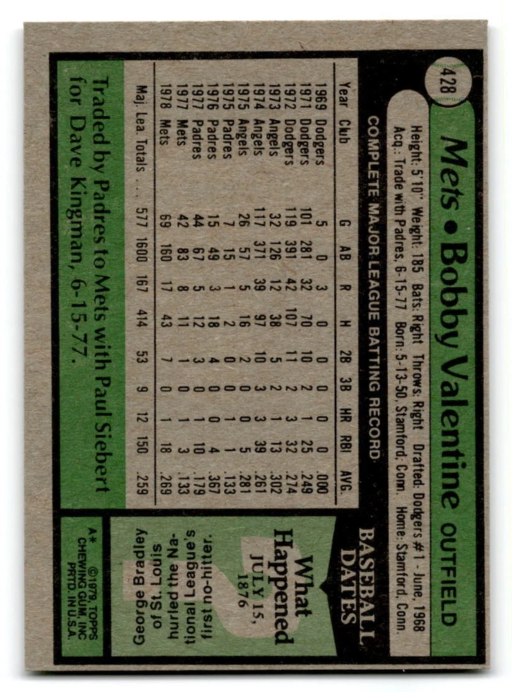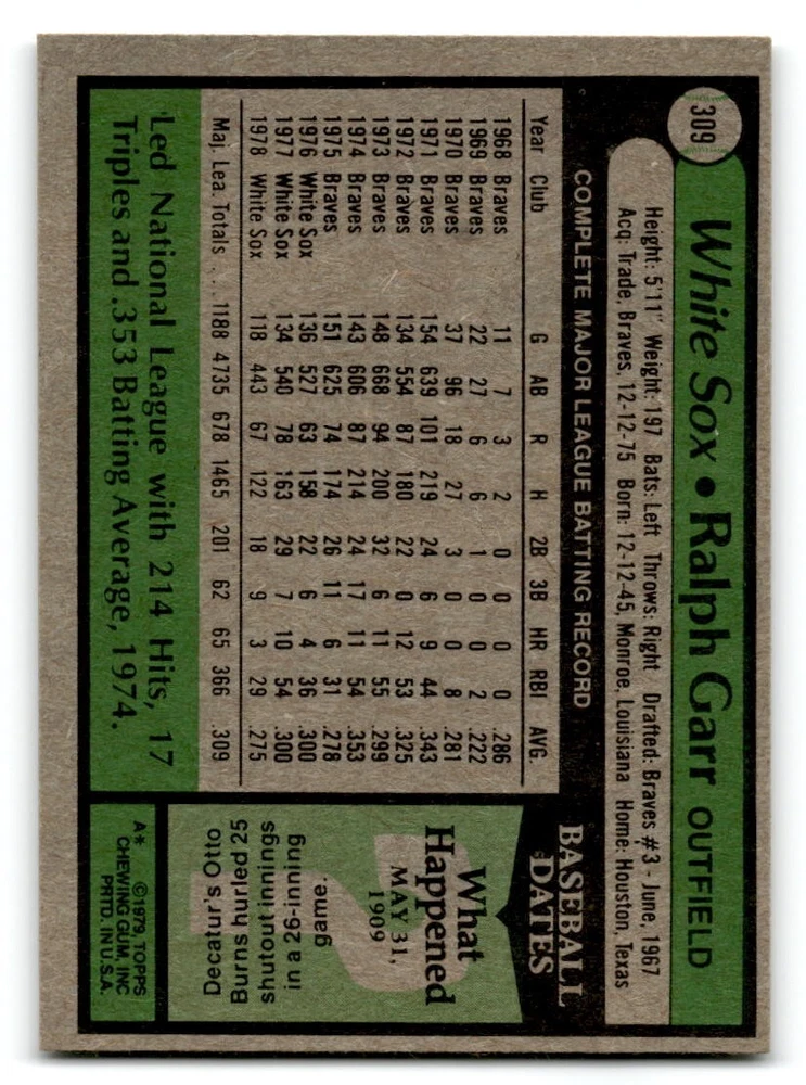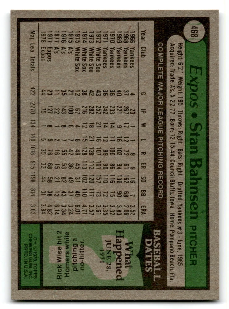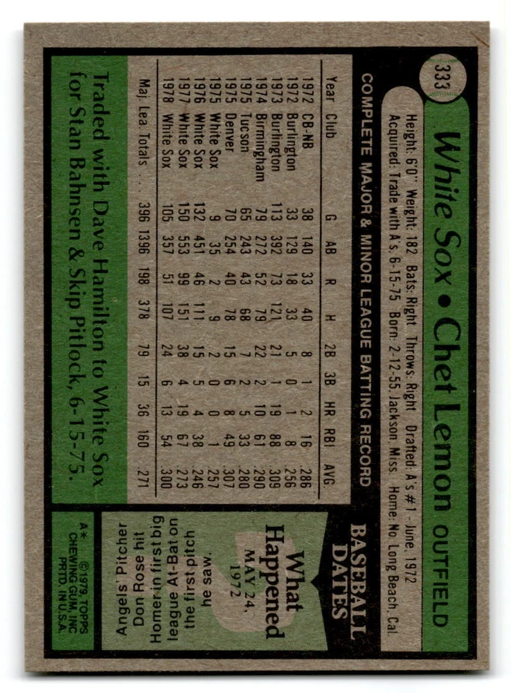 Hello, This listing is for single cards from the 1979 Topps Baseball Set. The cards are in EX/MT to NM unless there is a grade next to the name. I also have noted if the card has wax on the card (front of the card, none of the cards have wax stains on the back). I have generically graded all wax cards as a VG. If there is a card in VG with no notes saying there is wax, then there is damage to the card. The card in the picture is the card you will receive! There are lots of pictures with lines on the cards, that is from my scanner. There are no lines on any of the cards!! Grading: NM = 7 EX/MT = 6 EX = 5 VG/EX = 4 VG = 3 G = 2 Shipping: 1st card costs $1.00 using eBay Standard Envelope and .50cents for each additional card. If you buy 7 cards or more, the shipping cost is $4 for Ground Advantage (just check the boxes for Ground Advantage in the check out and no matter how many cards you are buying the cost will be $4 max! When buying 7 cards, they will be shipped in a padded envelope or box. (Ground Advantage or Priority Mail for larger orders) The last thing I am trying to do is make a profit off of Shipping. When using eBay Standard Envelope, I will put up to 2 cards in 1 top loader to ship. Unfortunately that is the max I can put in a top loader because of the thickness of these cards. I can fit 3 top loaders in one started letter sized envelope. If you have any questions about shipping please don't hesitate to ask.