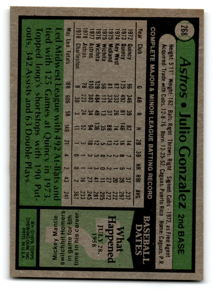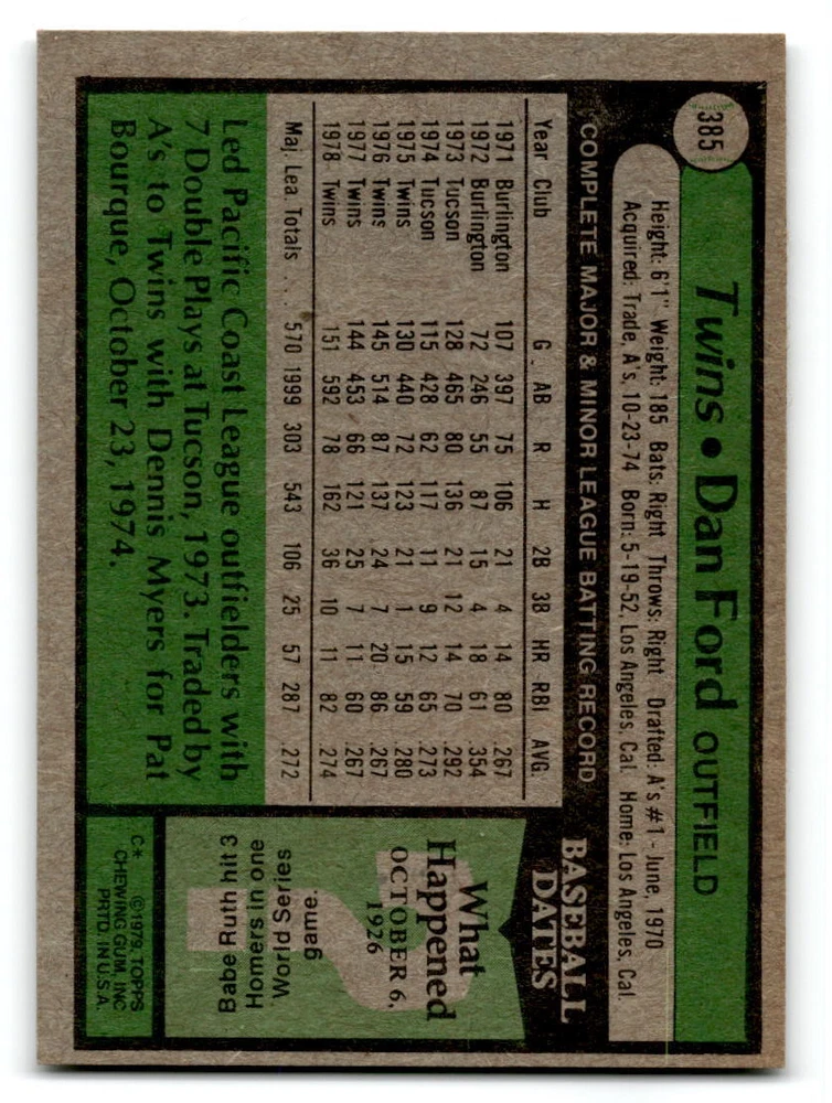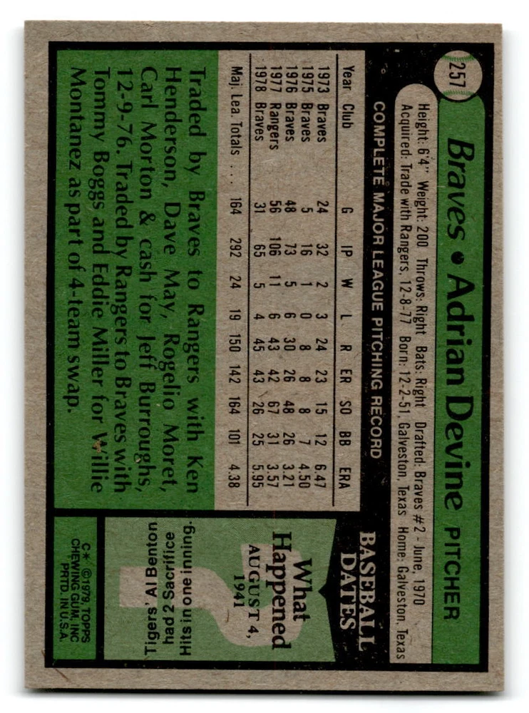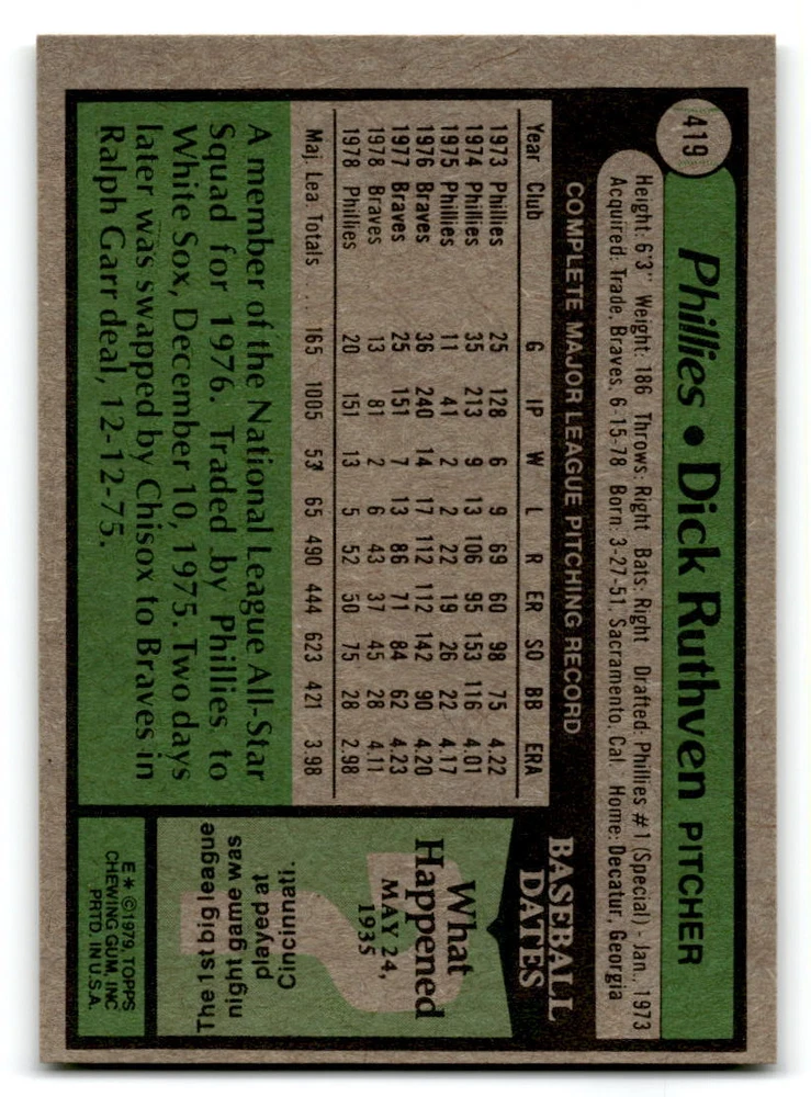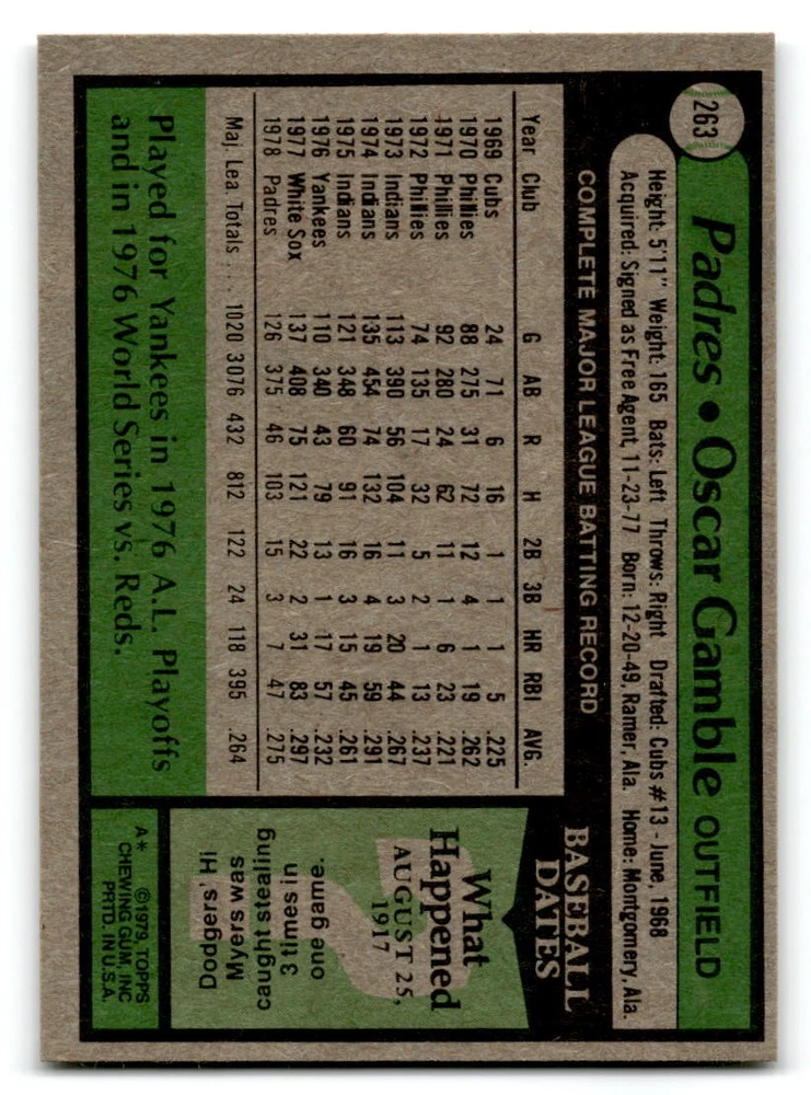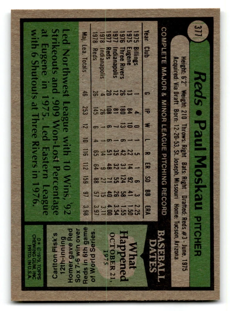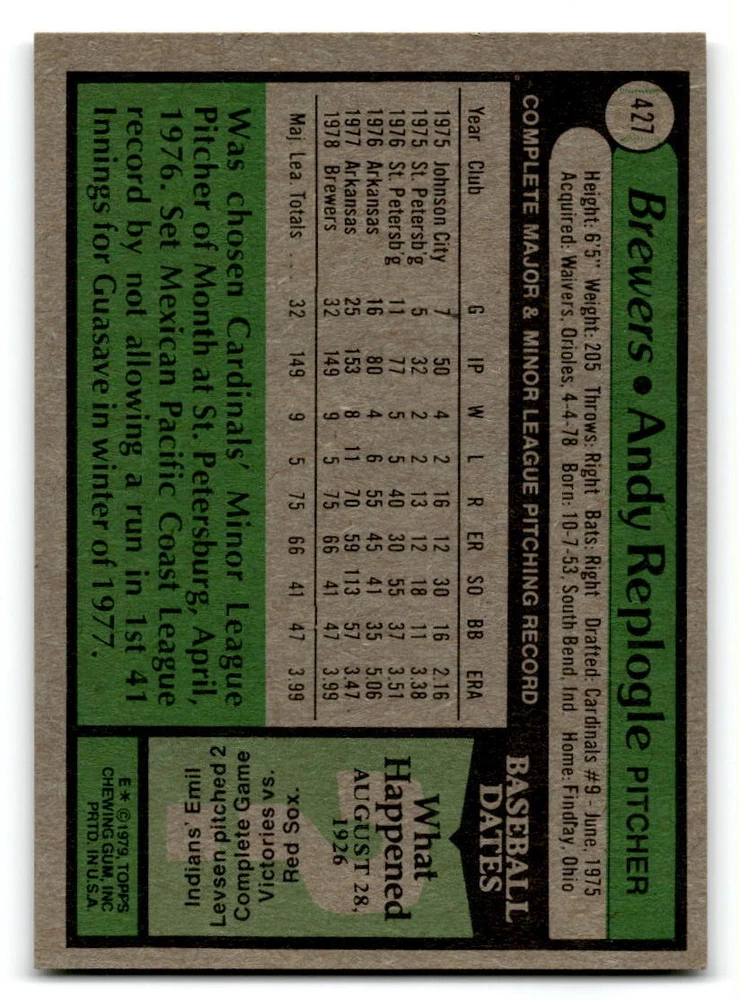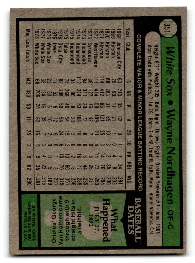 Hello, This listing is for single cards from the 1979 Topps Baseball Set. The cards are in EX/MT to NM unless there is a grade next to the name. I also have noted if the card has wax on the card (front of the card, none of the cards have wax stains on the back). I have generically graded all wax cards as a VG. If there is a card in VG with no notes saying there is wax, then there is damage to the card. The card in the picture is the card you will receive! There are lots of pictures with lines on the cards, that is from my scanner. There are no lines on any of the cards!! Grading: NM = 7 EX/MT = 6 EX = 5 VG/EX = 4 VG = 3 G = 2 Shipping: 1st card costs $1.00 using eBay Standard Envelope and .50cents for each additional card. If you buy 7 cards or more, the shipping cost is $4 for Ground Advantage (just check the boxes for Ground Advantage in the check out and no matter how many cards you are buying the cost will be $4 max! When buying 7 cards, they will be shipped in a padded envelope or box. (Ground Advantage or Priority Mail for larger orders) The last thing I am trying to do is make a profit off of Shipping. When using eBay Standard Envelope, I will put up to 2 cards in 1 top loader to ship. Unfortunately that is the max I can put in a top loader because of the thickness of these cards. I can fit 3 top loaders in one started letter sized envelope. If you have any questions about shipping please don't hesitate to ask.