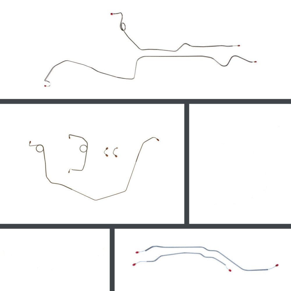 Our complete formed brake line sets will be exact reproductions of your factory lines with the correct size fittings and spring guard in all the places it came from the factory. All of the prebent lines throughout the entire vehicle are included. This means from the master cylinder down to any blocks, out to the two front wheels, the long line that runs to the rear end and the two over the rear axle. Complete and bent to perfection. Don't need a complete set? Give us a call at 614-557-3442 and we can get you taken care of. This kit is designed for standard suspension. Will not fit F-41 suspension