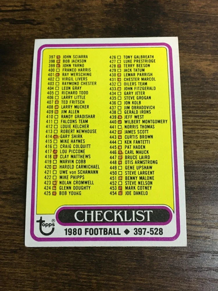 1980 Topps Football You Pick List / Complete Your Set #496-528 Shipping is $0.75 for the first card and free for each additional cards !! Add them to your cart for the discount. Please check out my store and do a search for your favorite player or team.
