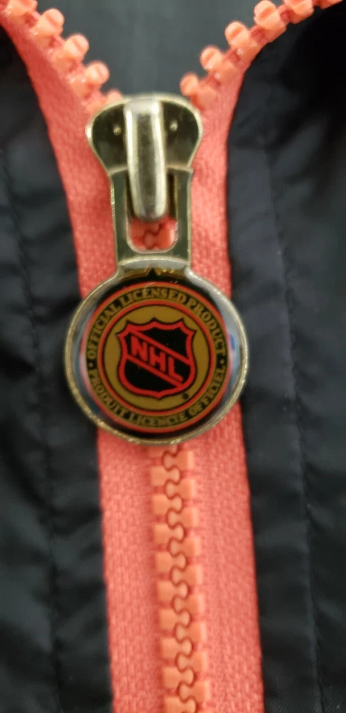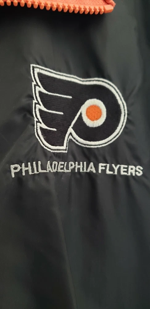 For sale Rare vintage Philadelphia Flyer's windbreaker jacket. It is embroidered with the Philadelphia Flyers logo and name on the front. It also has the original orange and black zipper pull! It is a size mens large, it is a FIRST DOWN jacket. They made so many Starter jackets but rarely had them made by the First Down company. This is a rare jacket to find. It is in excellent condition for it's age. No tears, stains etc... It zippers up the front with two side pockets on the front. Nice super clean jacket to add to your collection. I am a Philadelphia Flyers season ticket holder for so many years, I have so much vintage flyers items to list on ebay for sale. Both men's and women's items and children's items. I will be listing more men's and women's vintage items for sale. Sport items, Ralph Lauren coats, more Hilfiger coats, Columbia coats, Coach handbags, boots, shoes most never worn. I ship only to the lower 48 states only. Please check my 100 percent positive feedback!