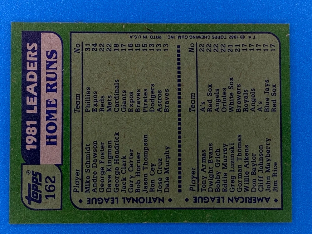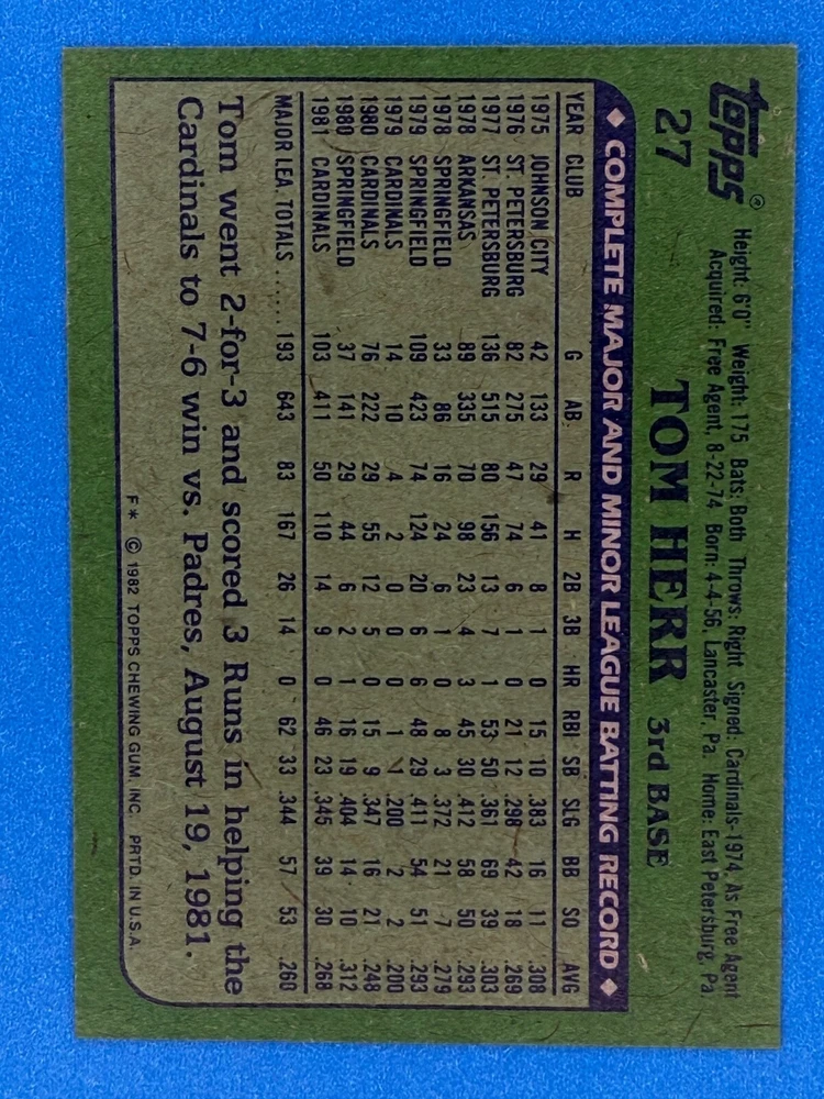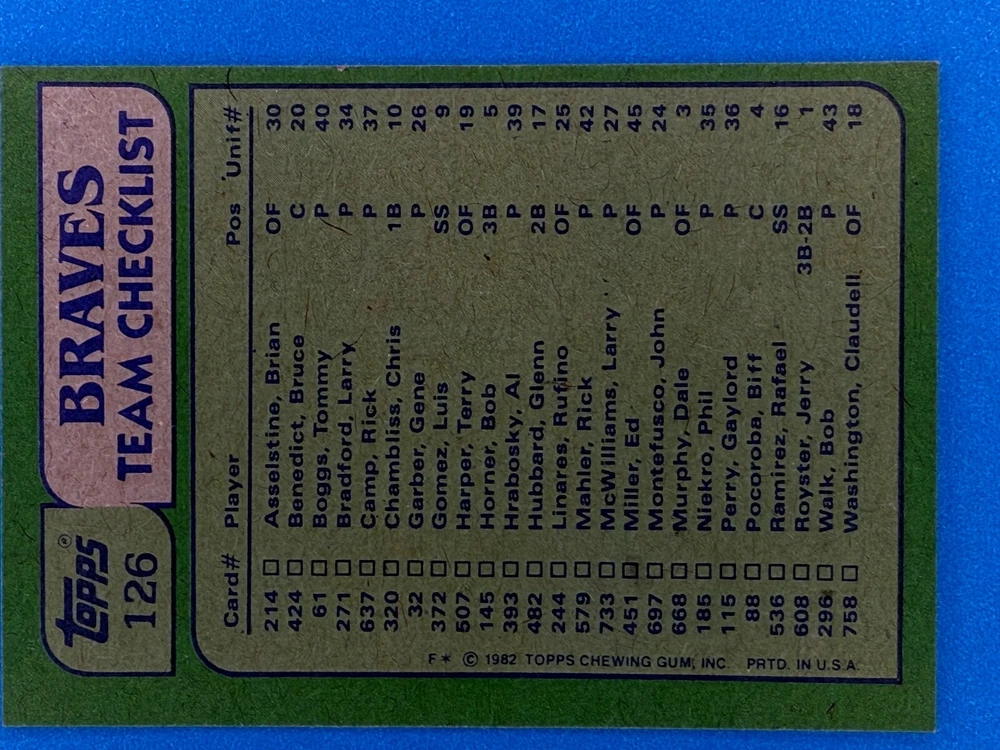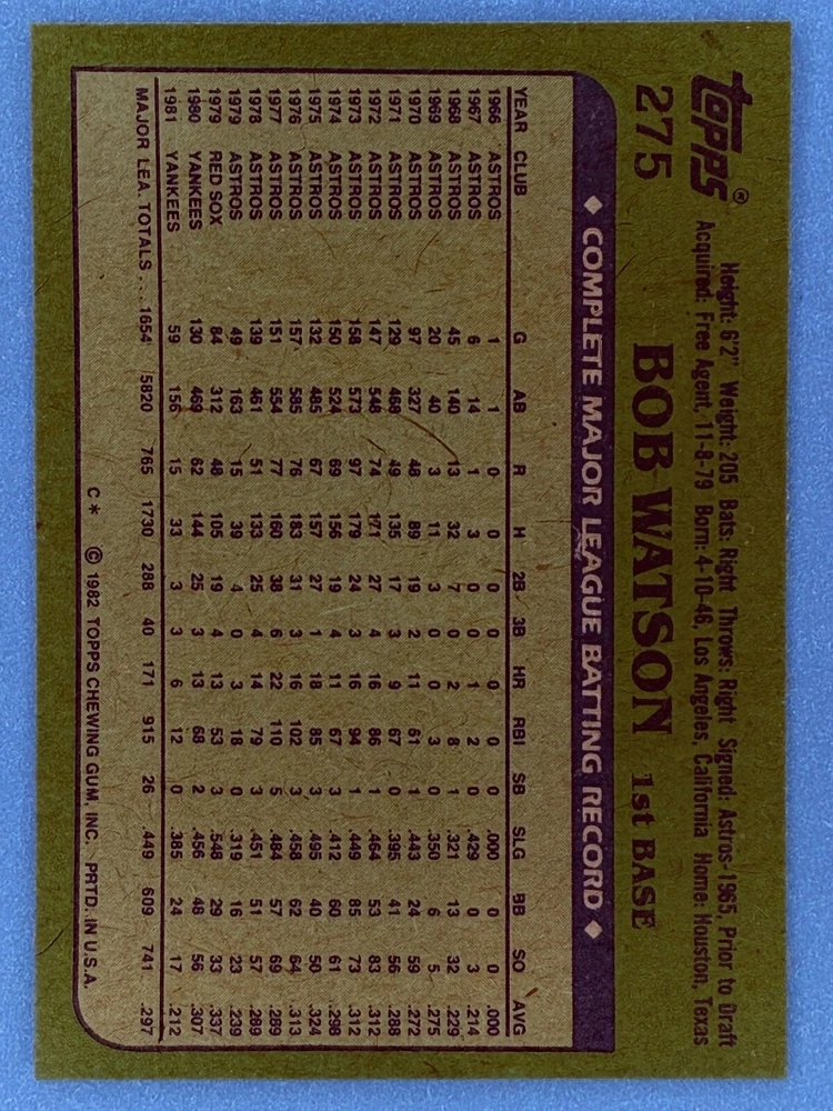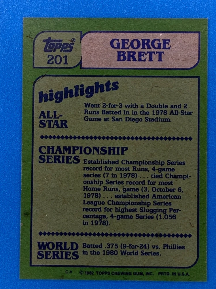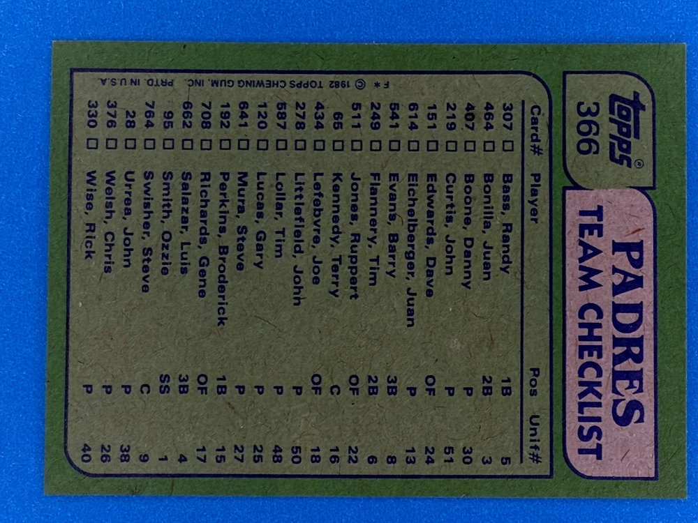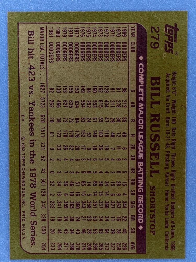 Free Shipping! eBay Standard Envelope or USPS Ground Advantage Enjoy 50% off your entire order, if you purchase at least 5 items from either of my 1982 Topps Listings. Commons available! If a card is not listed separately then it is considered a common and can be purchased by selecting the item shown as ' Up to 20 commons ', use contact seller button and send me either a picture of your list or a typed list with card numbers. See list below for cards I do not have available. If you would like to purchase 400 different commons, please select '1982 Topps 400 Different' in the drop down box. Cost for 400 different commons is $16 with 50% off (be sure to purchase 4 other 1982 Topps items to get the 50% off). Most cards you receive will have condition of NM or better; however, certain cards have front centering between 70/30 and 85/15 which would grade as low as EX. No creases or badly damaged corners. If you are not satisfied with the condition of a card, I will offer a refund. Be sure to see my other listing for 1982 Topps Baseball which has card numbers 376-792 available. See pictures of cards which are representative of the cards you may receive. I have many duplicates not pictured.