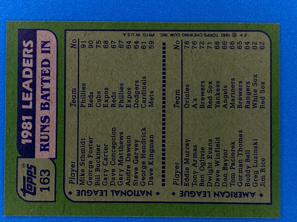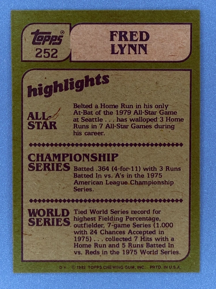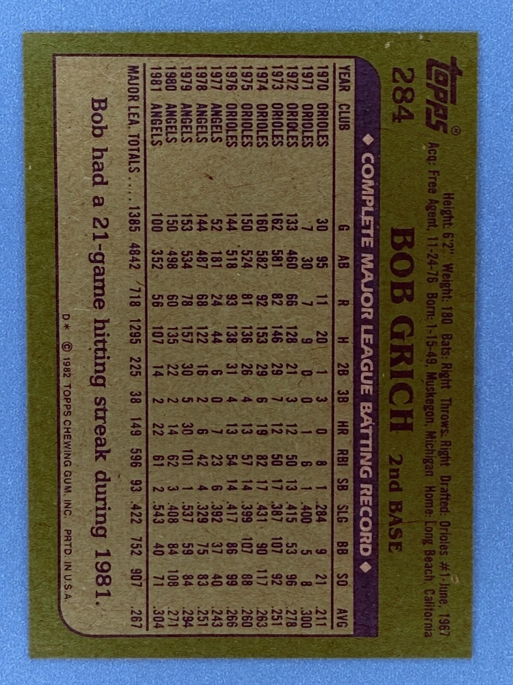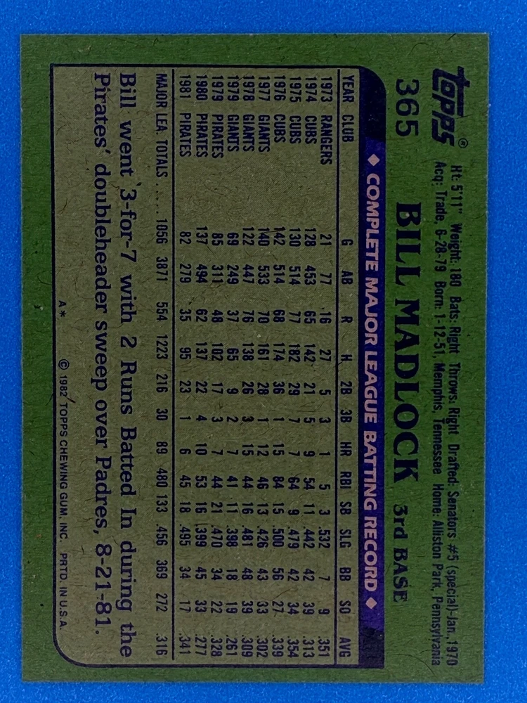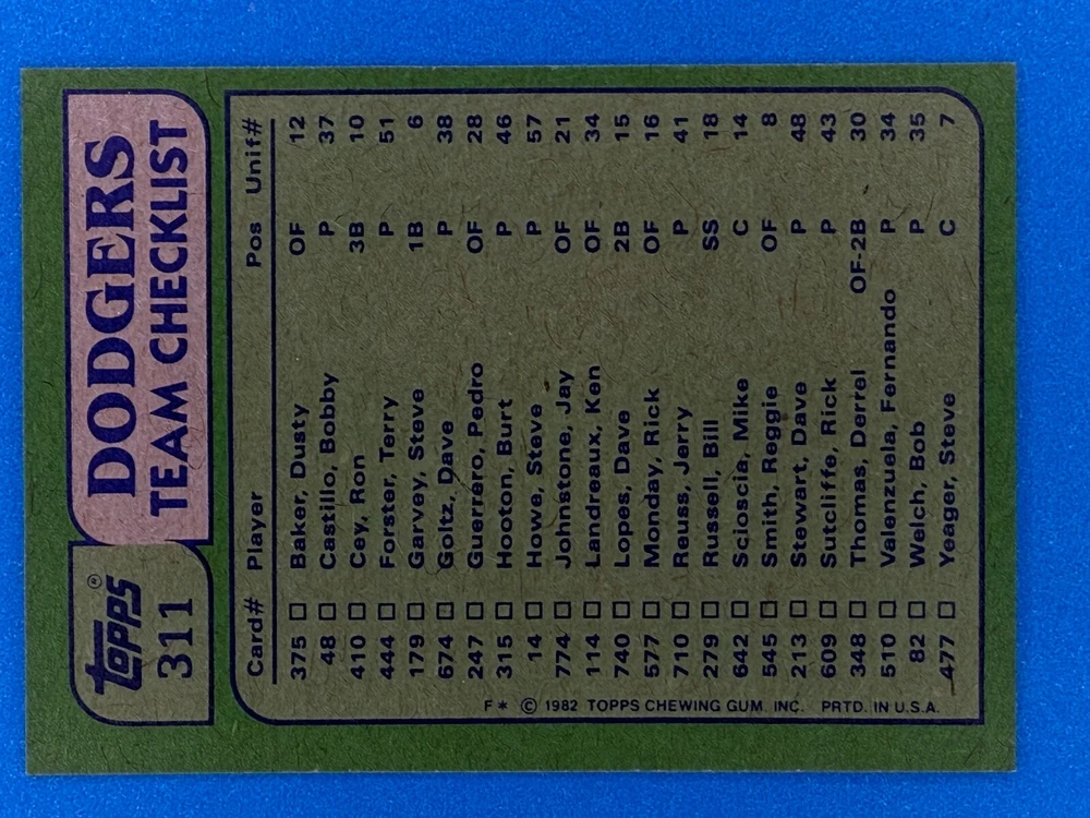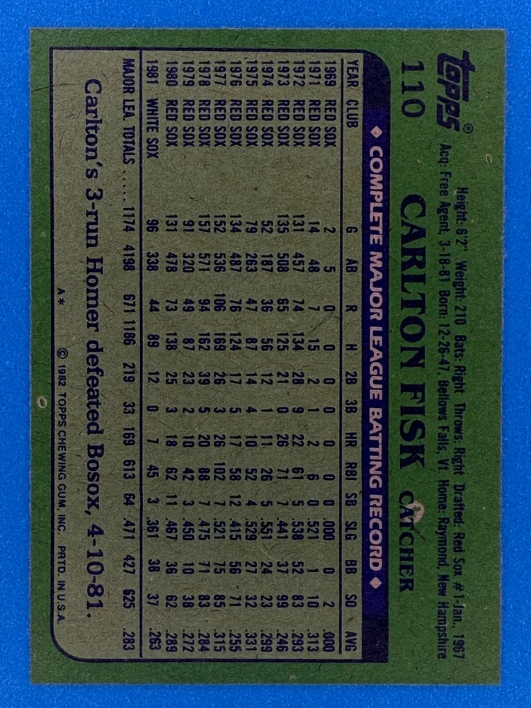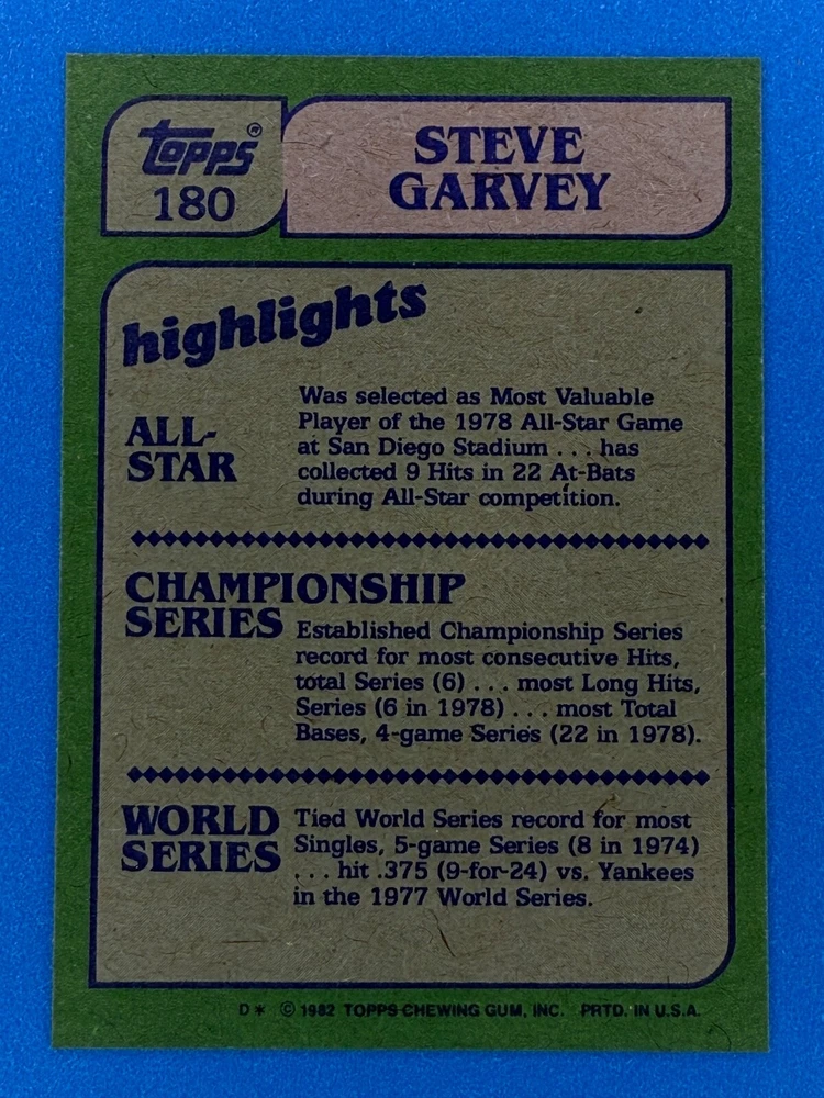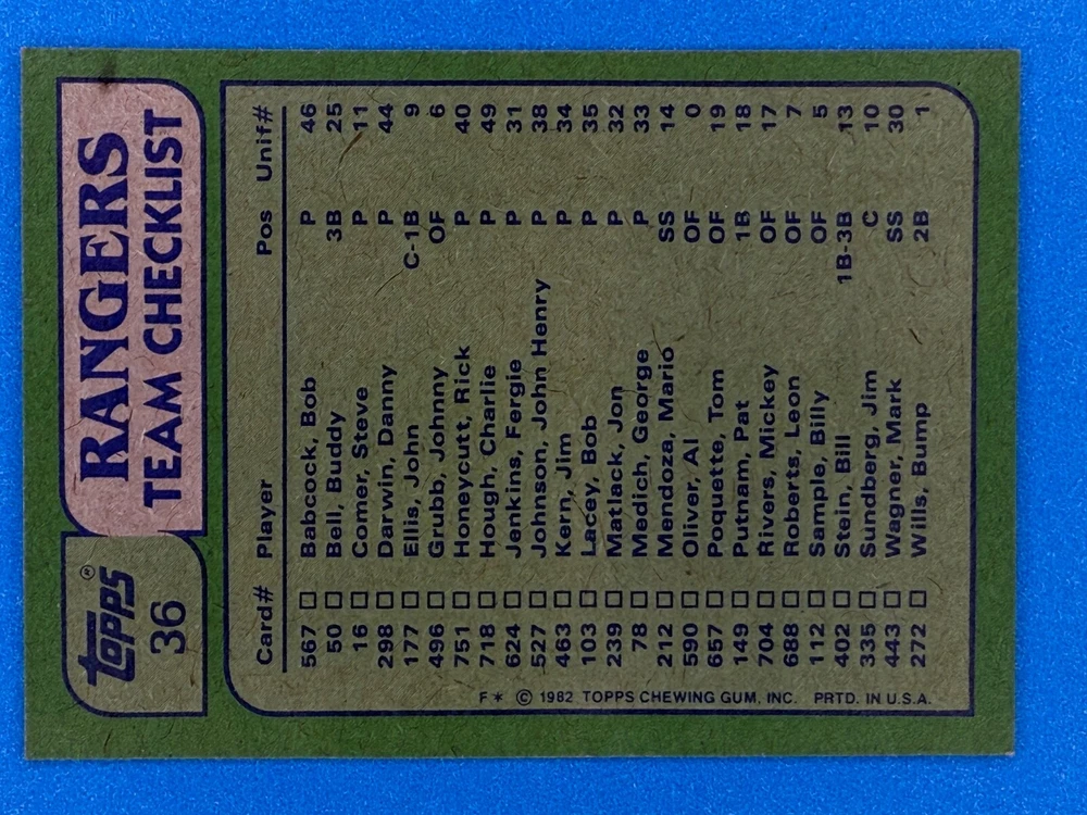 Free Shipping! eBay Standard Envelope or USPS Ground Advantage Enjoy 50% off your entire order, if you purchase at least 5 items from either of my 1982 Topps Listings. Commons available! If a card is not listed separately then it is considered a common and can be purchased by selecting the item shown as ' Up to 20 commons ', use contact seller button and send me either a picture of your list or a typed list with card numbers. See list below for cards I do not have available. If you would like to purchase 400 different commons, please select '1982 Topps 400 Different' in the drop down box. Cost for 400 different commons is $16 with 50% off (be sure to purchase 4 other 1982 Topps items to get the 50% off). Most cards you receive will have condition of NM or better; however, certain cards have front centering between 70/30 and 85/15 which would grade as low as EX. No creases or badly damaged corners. If you are not satisfied with the condition of a card, I will offer a refund. Be sure to see my other listing for 1982 Topps Baseball which has card numbers 376-792 available. See pictures of cards which are representative of the cards you may receive. I have many duplicates not pictured.