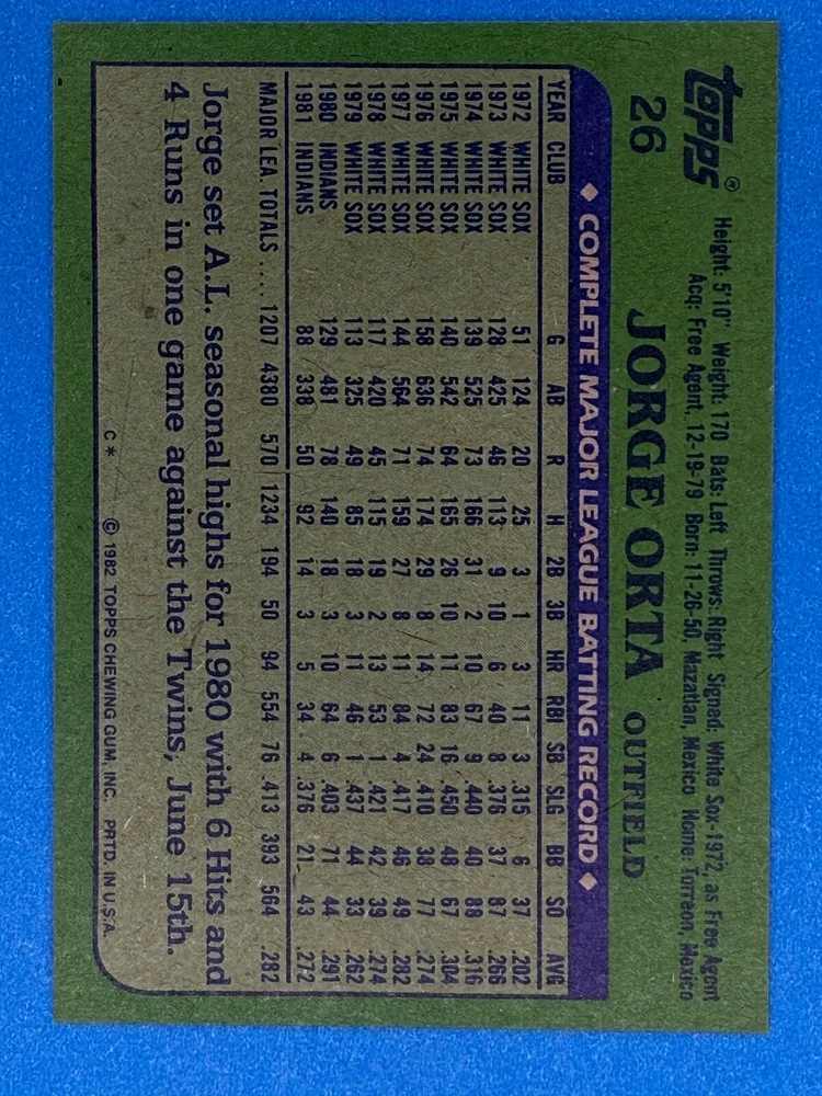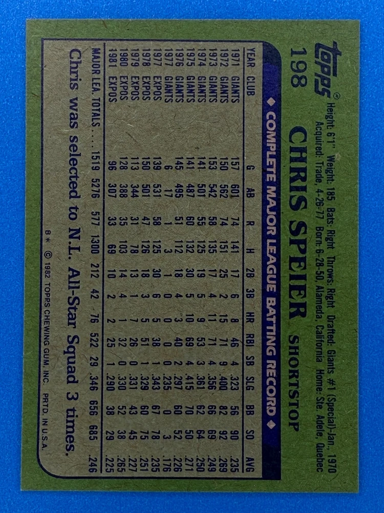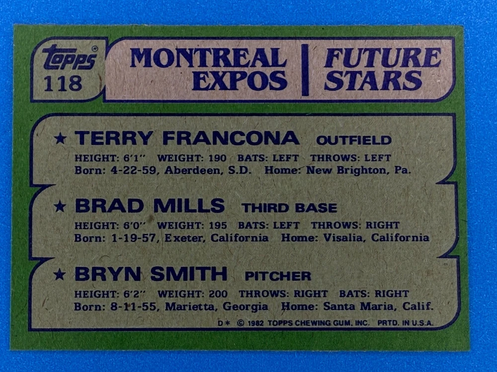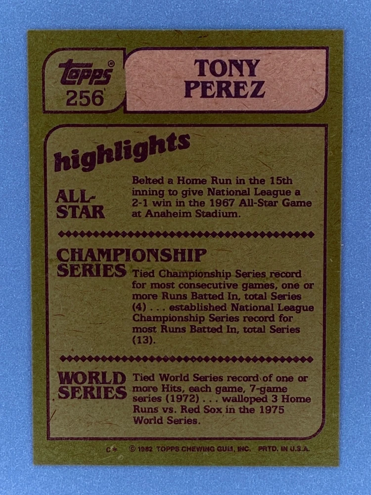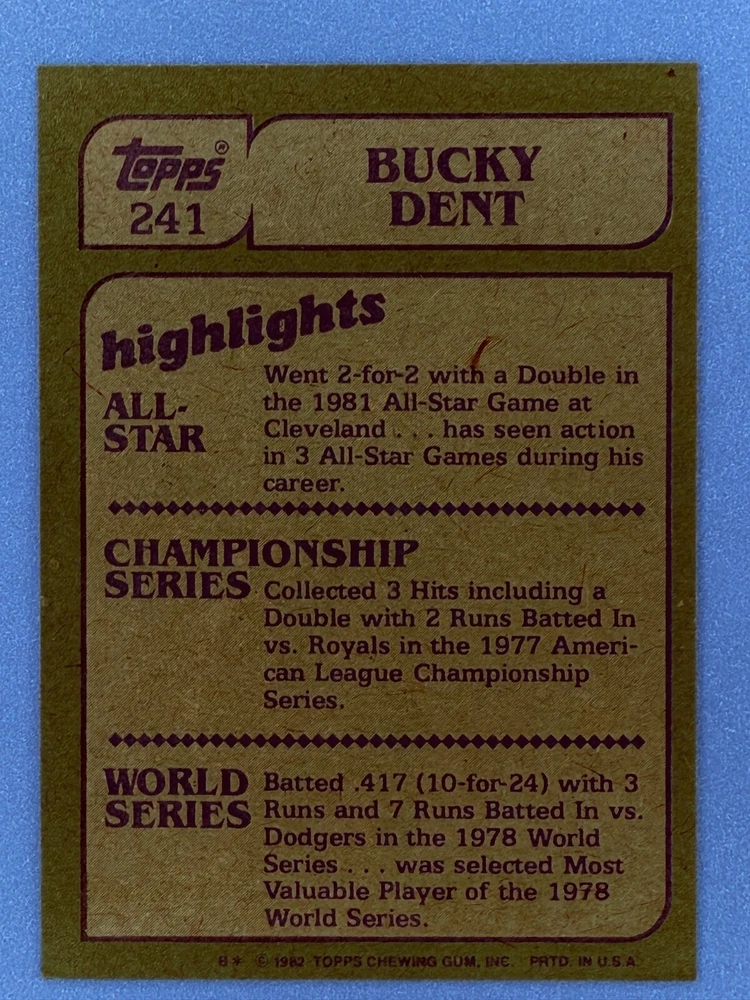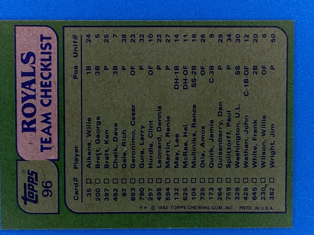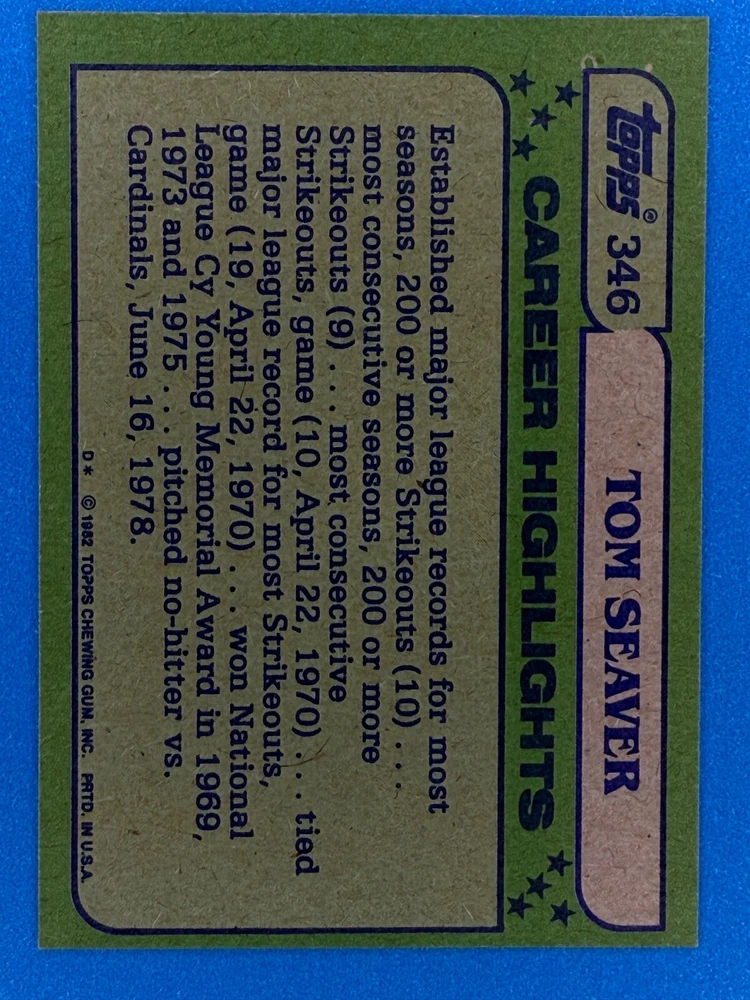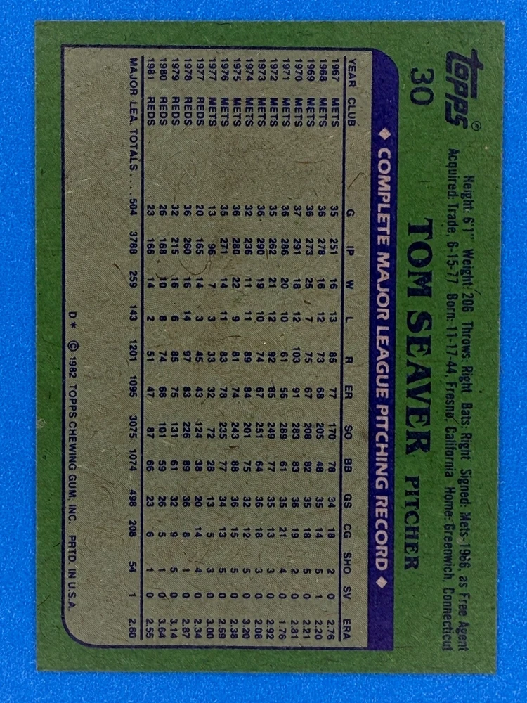 Free Shipping! eBay Standard Envelope or USPS Ground Advantage Enjoy 50% off your entire order, if you purchase at least 5 items from either of my 1982 Topps Listings. Commons available! If a card is not listed separately then it is considered a common and can be purchased by selecting the item shown as ' Up to 20 commons ', use contact seller button and send me either a picture of your list or a typed list with card numbers. See list below for cards I do not have available. If you would like to purchase 400 different commons, please select '1982 Topps 400 Different' in the drop down box. Cost for 400 different commons is $16 with 50% off (be sure to purchase 4 other 1982 Topps items to get the 50% off). Most cards you receive will have condition of NM or better; however, certain cards have front centering between 70/30 and 85/15 which would grade as low as EX. No creases or badly damaged corners. If you are not satisfied with the condition of a card, I will offer a refund. Be sure to see my other listing for 1982 Topps Baseball which has card numbers 376-792 available. See pictures of cards which are representative of the cards you may receive. I have many duplicates not pictured.