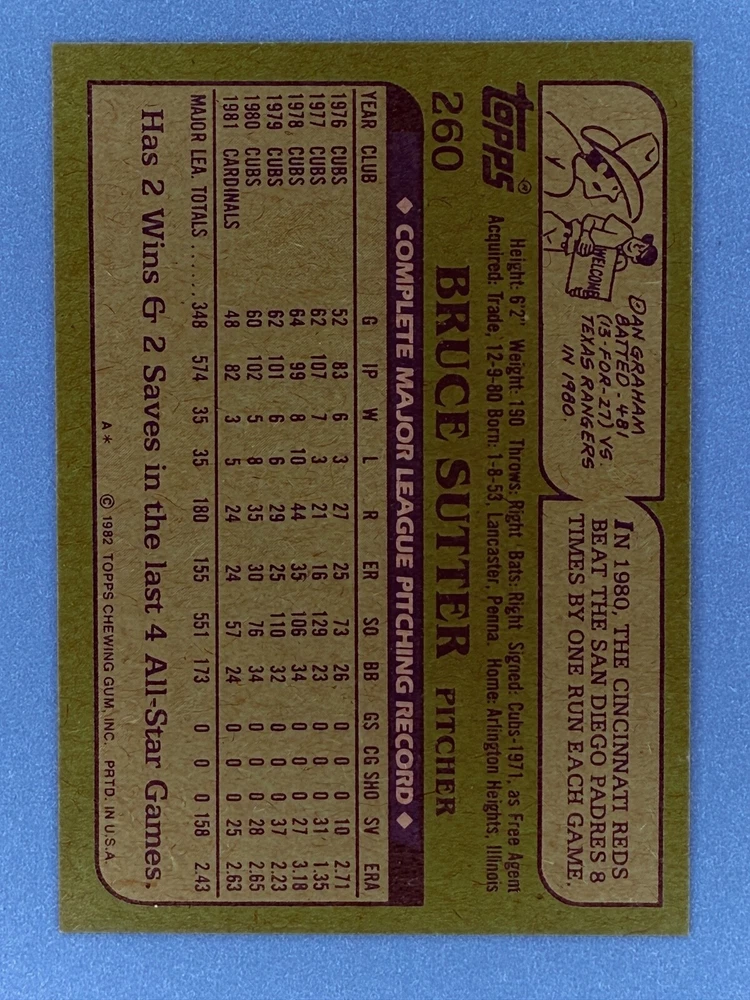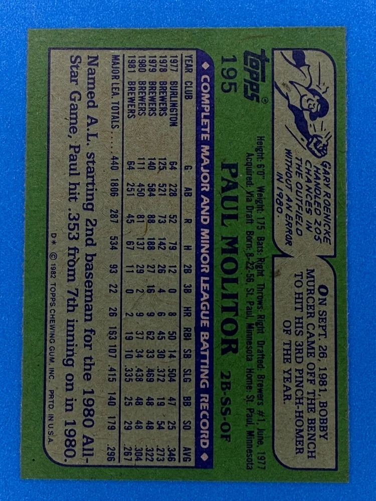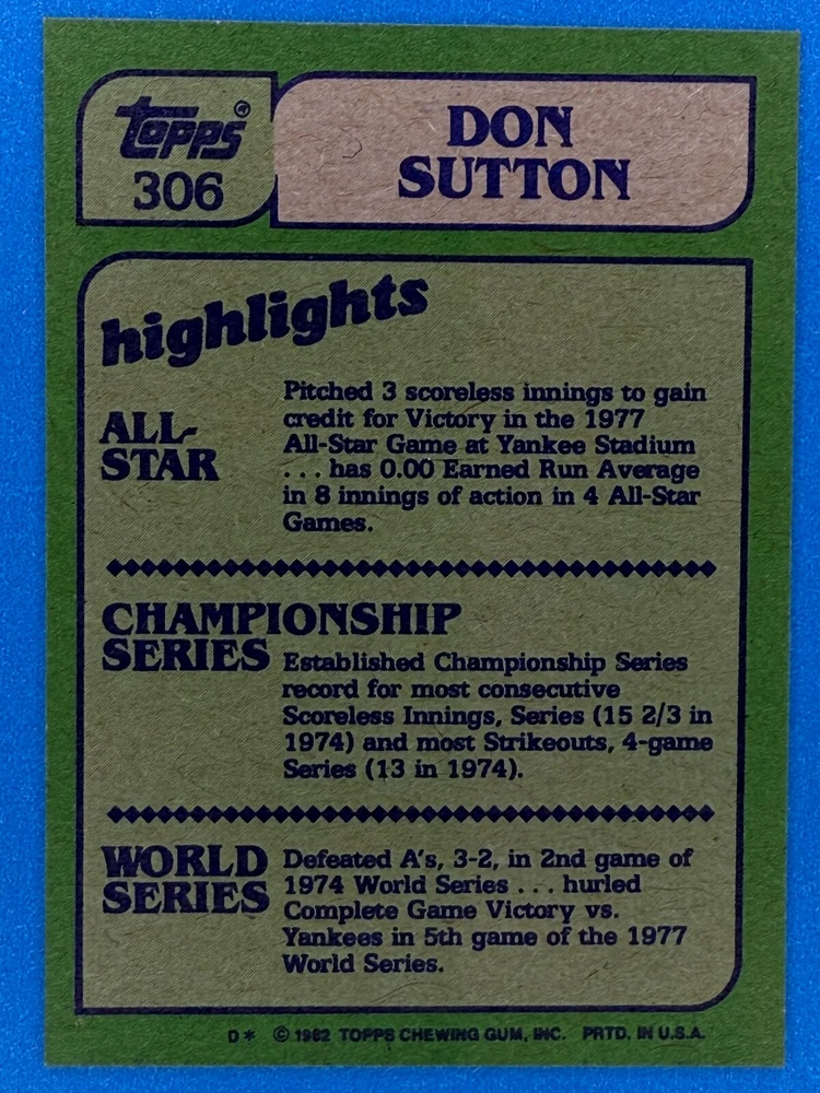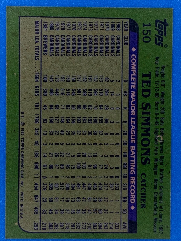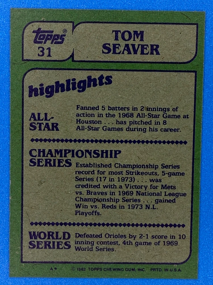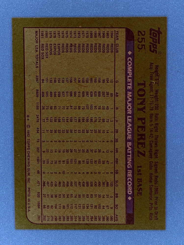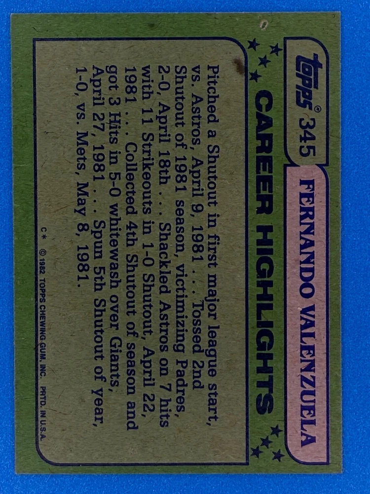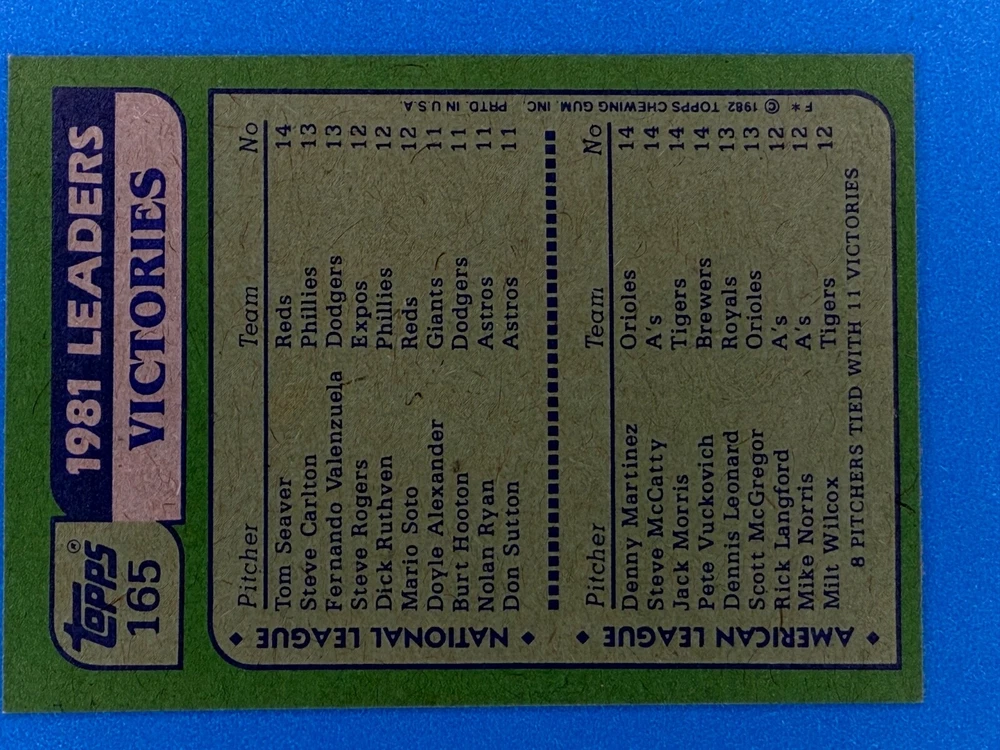 Free Shipping! eBay Standard Envelope or USPS Ground Advantage Enjoy 50% off your entire order, if you purchase at least 5 items from either of my 1982 Topps Listings. Commons available! If a card is not listed separately then it is considered a common and can be purchased by selecting the item shown as ' Up to 20 commons ', use contact seller button and send me either a picture of your list or a typed list with card numbers. See list below for cards I do not have available. If you would like to purchase 400 different commons, please select '1982 Topps 400 Different' in the drop down box. Cost for 400 different commons is $16 with 50% off (be sure to purchase 4 other 1982 Topps items to get the 50% off). Most cards you receive will have condition of NM or better; however, certain cards have front centering between 70/30 and 85/15 which would grade as low as EX. No creases or badly damaged corners. If you are not satisfied with the condition of a card, I will offer a refund. Be sure to see my other listing for 1982 Topps Baseball which has card numbers 376-792 available. See pictures of cards which are representative of the cards you may receive. I have many duplicates not pictured.