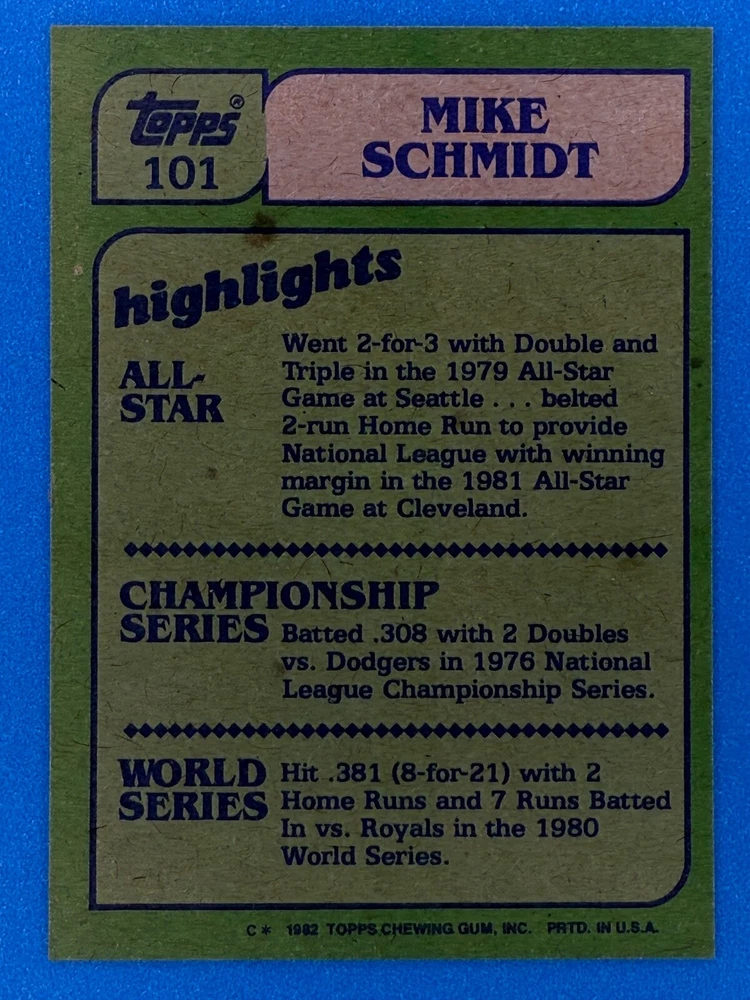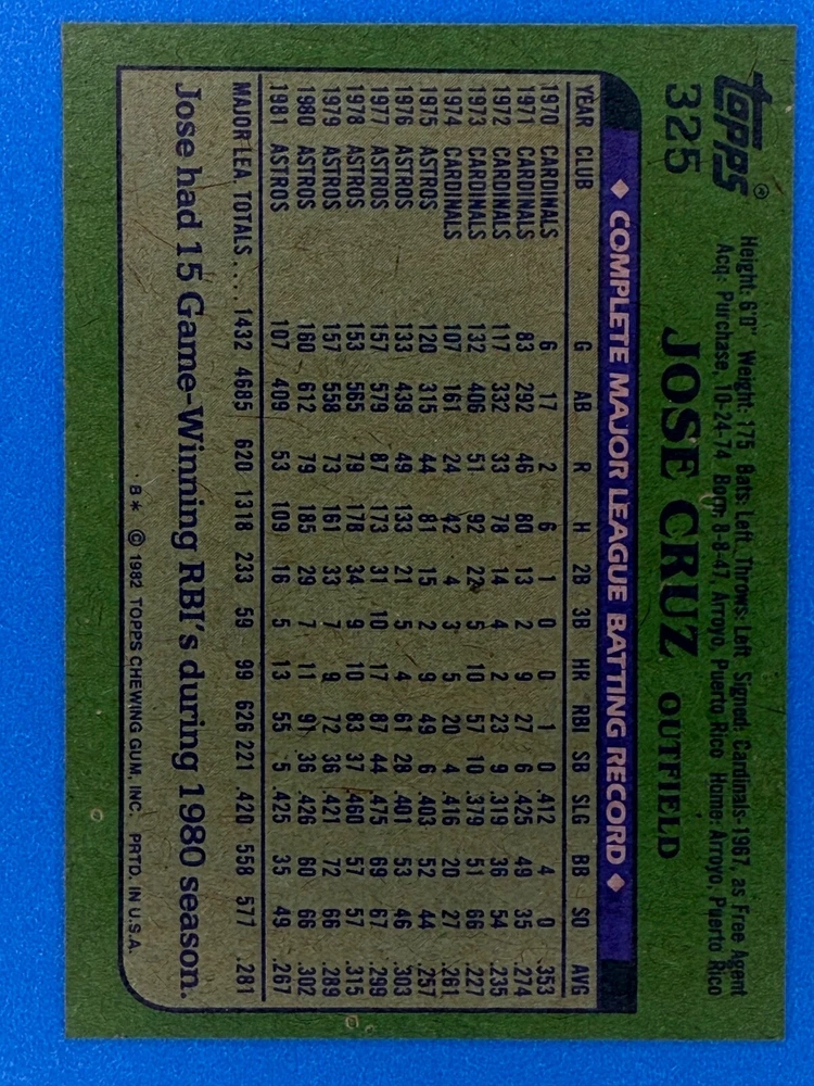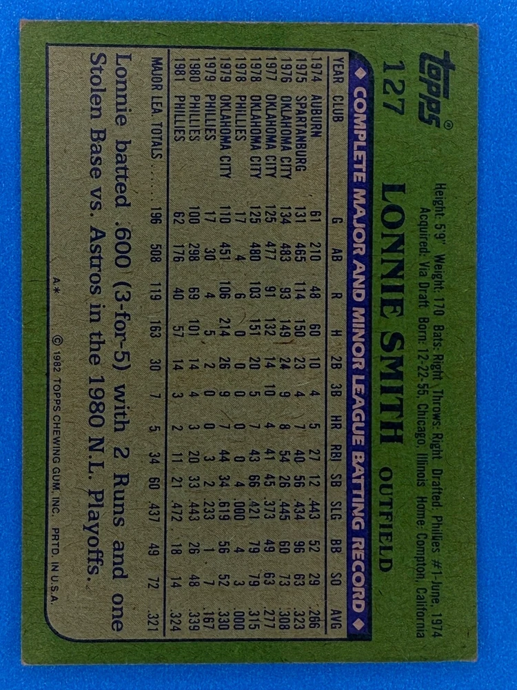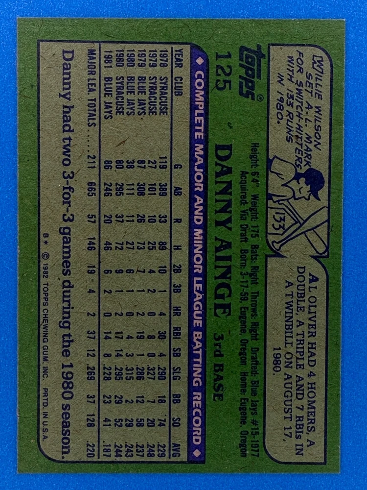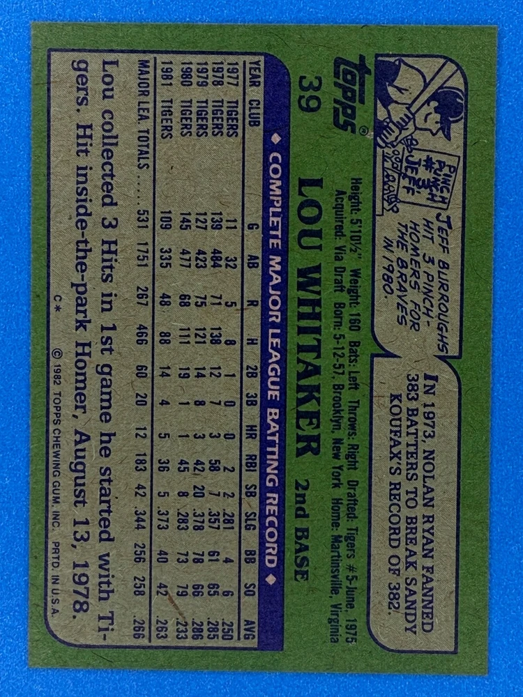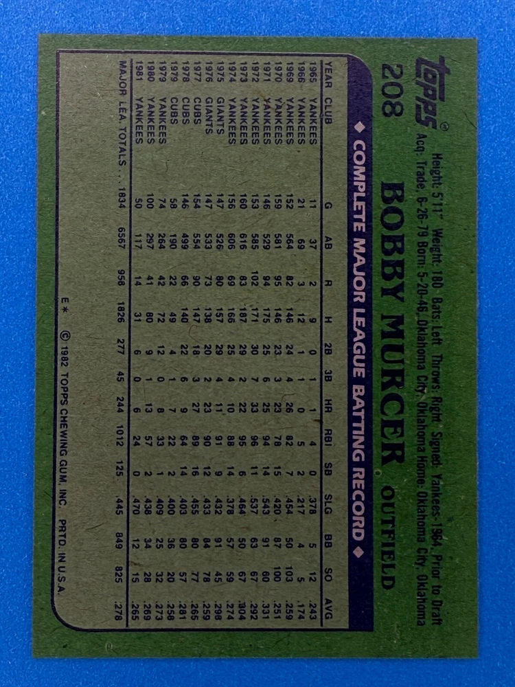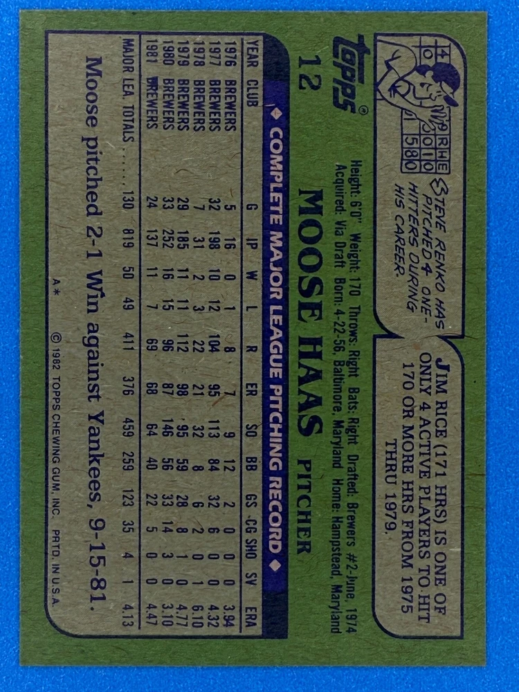 Free Shipping! eBay Standard Envelope or USPS Ground Advantage Enjoy 50% off your entire order, if you purchase at least 5 items from either of my 1982 Topps Listings. Commons available! If a card is not listed separately then it is considered a common and can be purchased by selecting the item shown as ' Up to 20 commons ', use contact seller button and send me either a picture of your list or a typed list with card numbers. See list below for cards I do not have available. If you would like to purchase 400 different commons, please select '1982 Topps 400 Different' in the drop down box. Cost for 400 different commons is $16 with 50% off (be sure to purchase 4 other 1982 Topps items to get the 50% off). Most cards you receive will have condition of NM or better; however, certain cards have front centering between 70/30 and 85/15 which would grade as low as EX. No creases or badly damaged corners. If you are not satisfied with the condition of a card, I will offer a refund. Be sure to see my other listing for 1982 Topps Baseball which has card numbers 376-792 available. See pictures of cards which are representative of the cards you may receive. I have many duplicates not pictured.