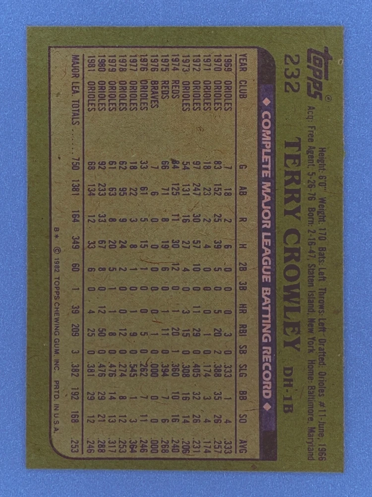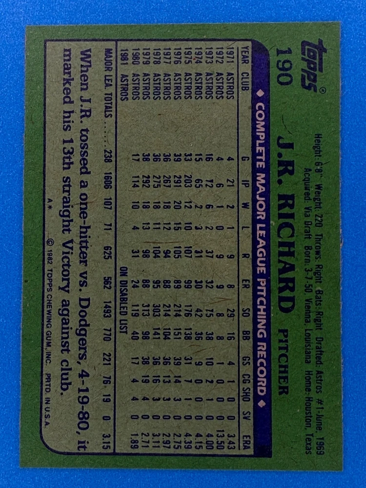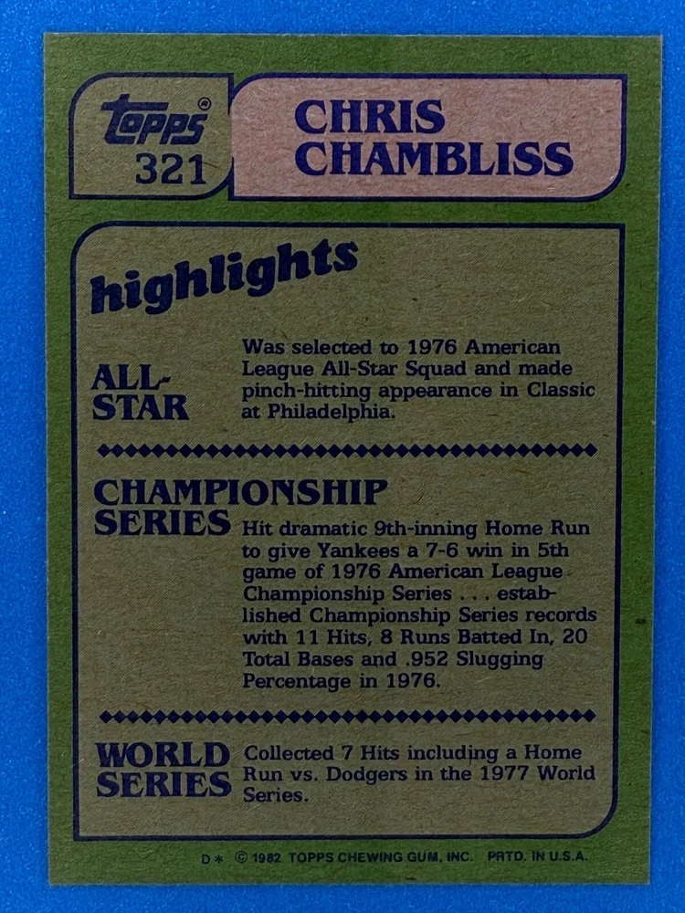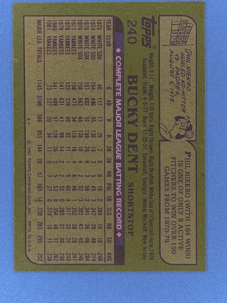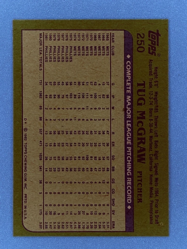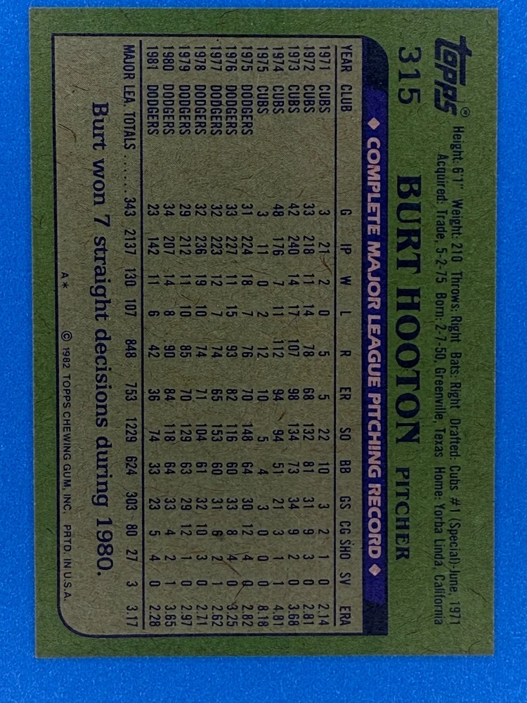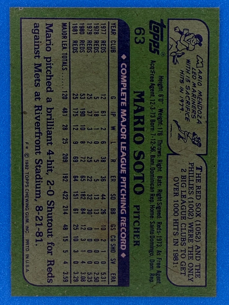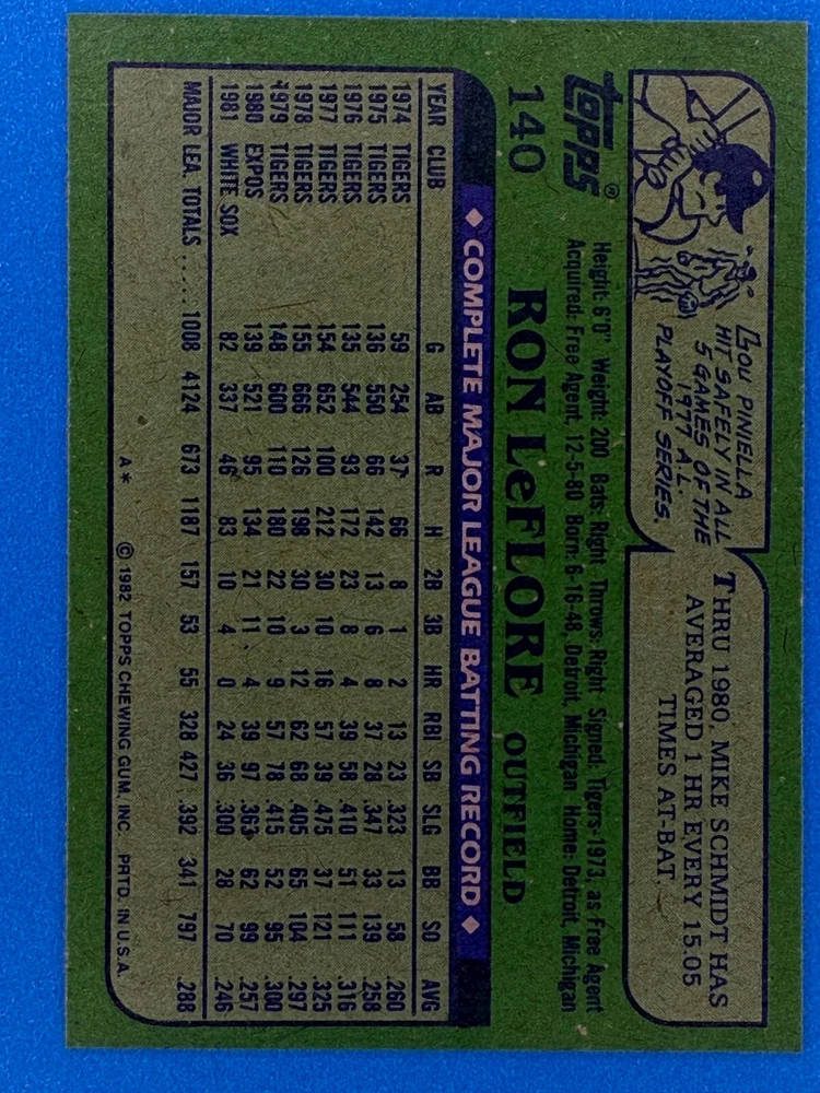 Free Shipping! eBay Standard Envelope or USPS Ground Advantage Enjoy 50% off your entire order, if you purchase at least 5 items from either of my 1982 Topps Listings. Commons available! If a card is not listed separately then it is considered a common and can be purchased by selecting the item shown as ' Up to 20 commons ', use contact seller button and send me either a picture of your list or a typed list with card numbers. See list below for cards I do not have available. If you would like to purchase 400 different commons, please select '1982 Topps 400 Different' in the drop down box. Cost for 400 different commons is $16 with 50% off (be sure to purchase 4 other 1982 Topps items to get the 50% off). Most cards you receive will have condition of NM or better; however, certain cards have front centering between 70/30 and 85/15 which would grade as low as EX. No creases or badly damaged corners. If you are not satisfied with the condition of a card, I will offer a refund. Be sure to see my other listing for 1982 Topps Baseball which has card numbers 376-792 available. See pictures of cards which are representative of the cards you may receive. I have many duplicates not pictured.