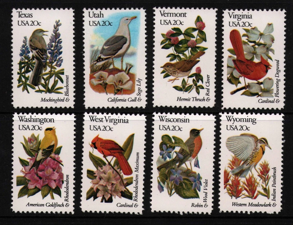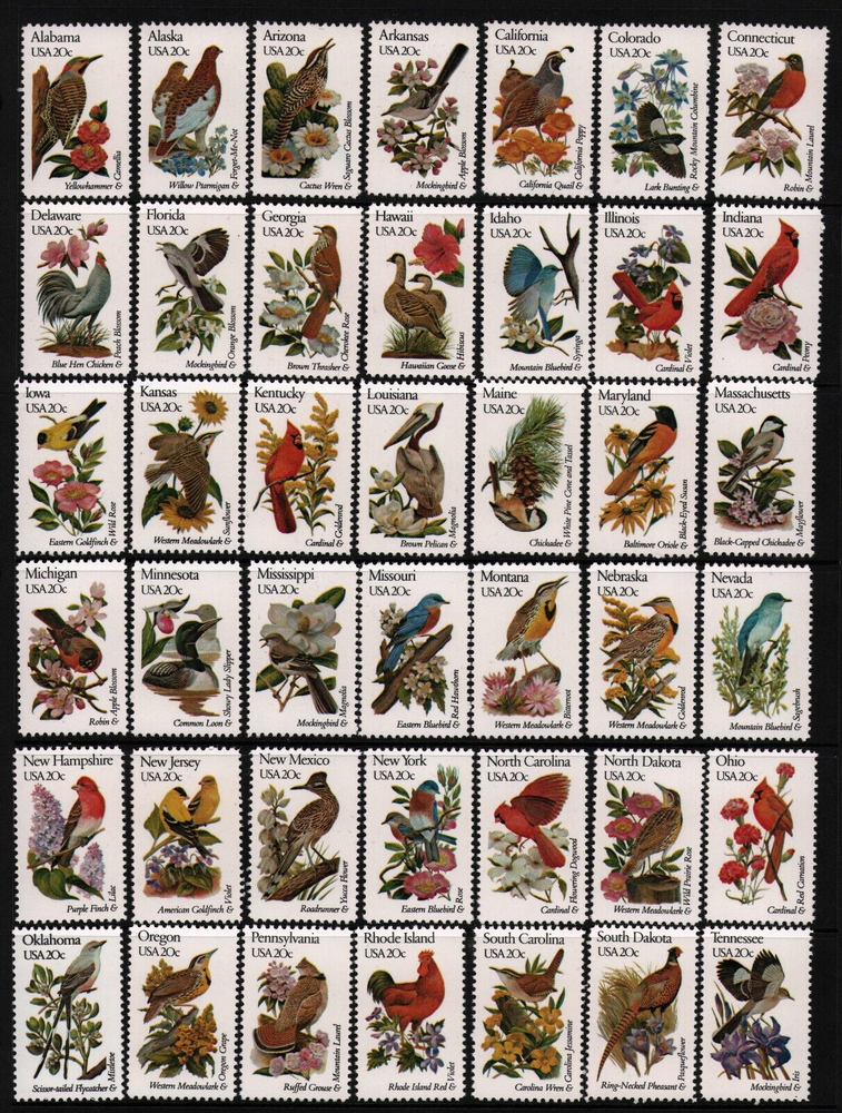 United States 1982 State Birds & Flowers Compete Set of 50. SC#'s 1953-2002 - singles. Mint never hinged, original gum. See scans.