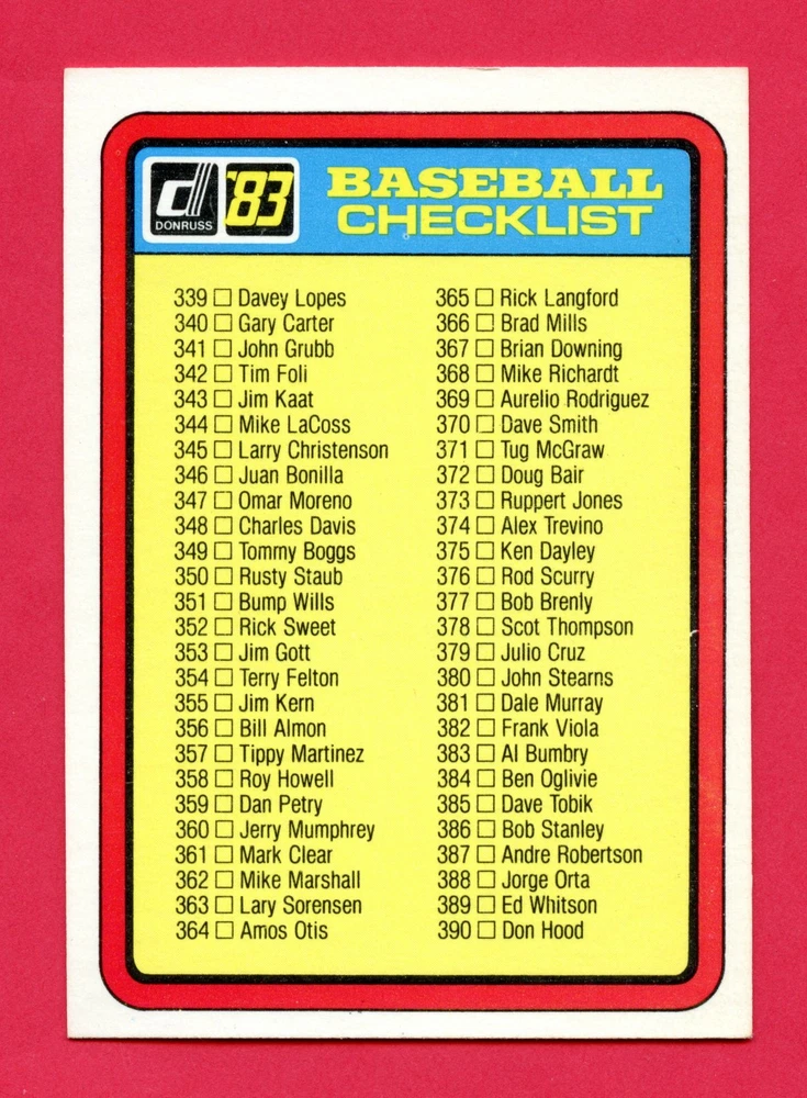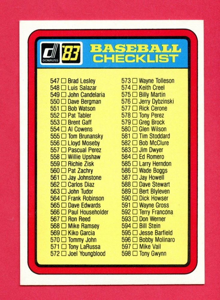 Absolutely thrilled with my purchase! The cards arrived in perfect mint condition, just as described. The seller was super helpful and even picked the best available for my set. Fast shipping and great packaging—definitely recommend for any collector looking to complete their 1983 Donruss set. Will be coming back for more!