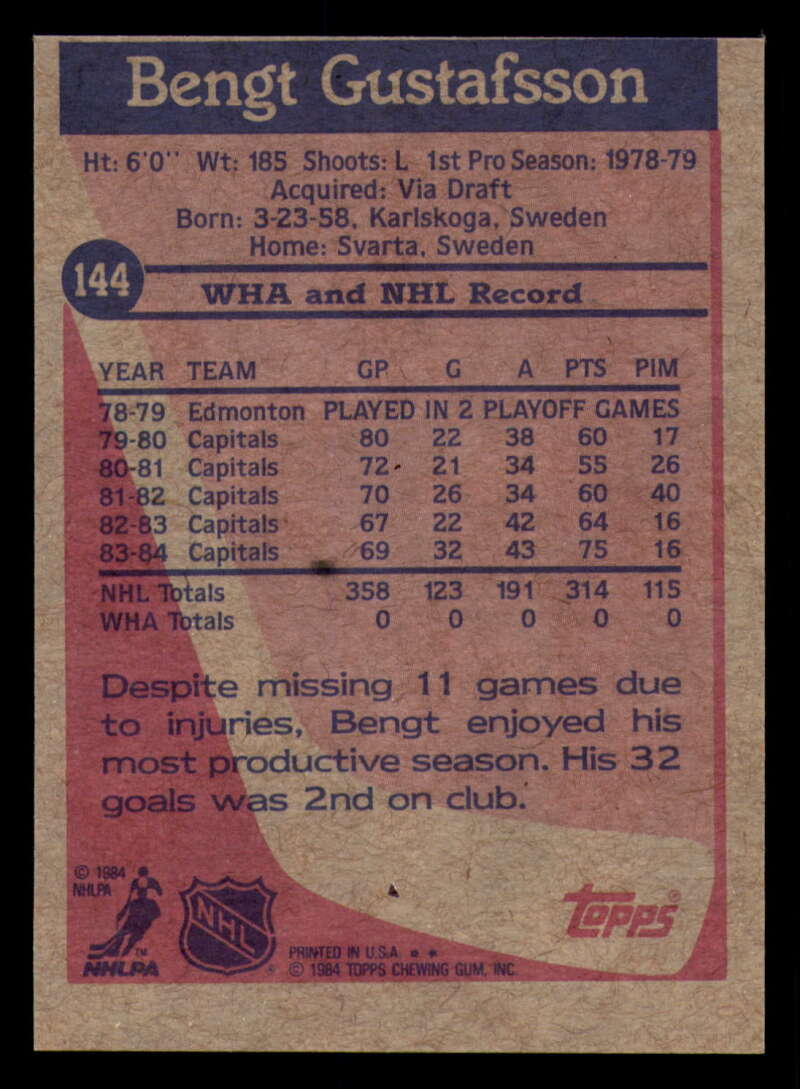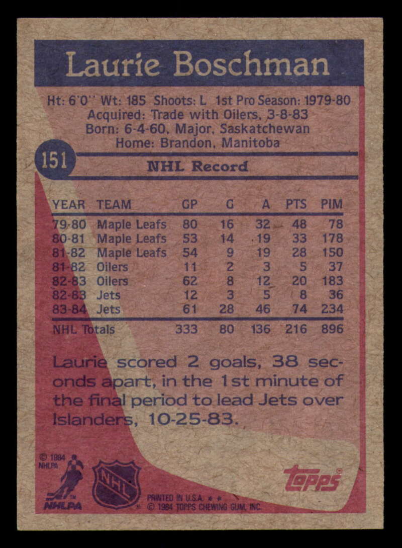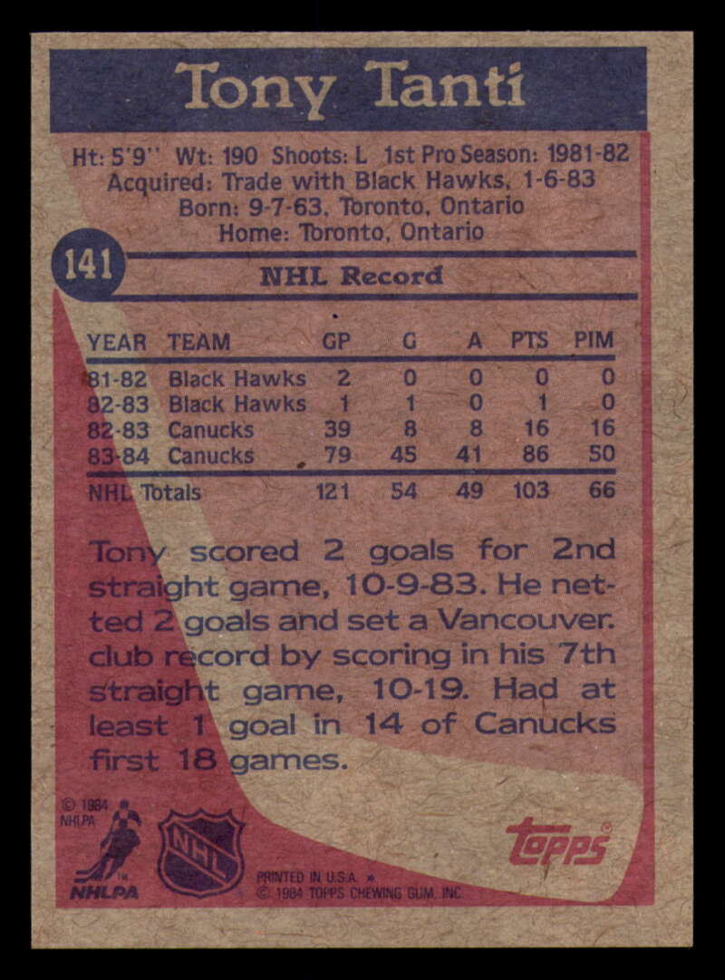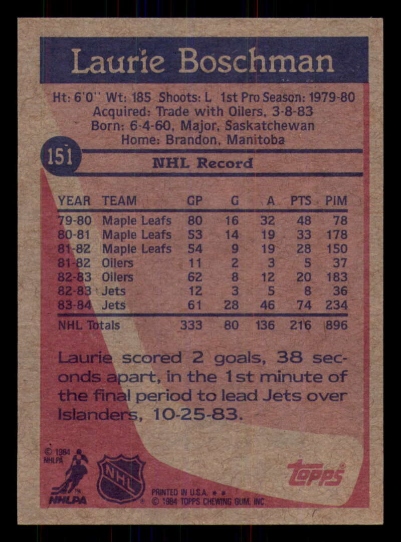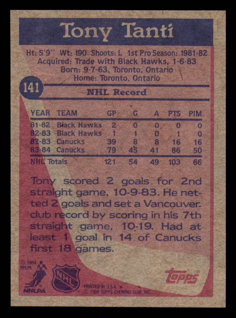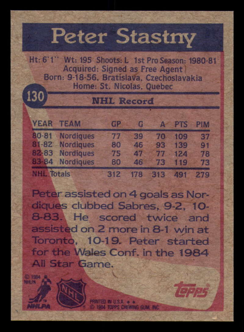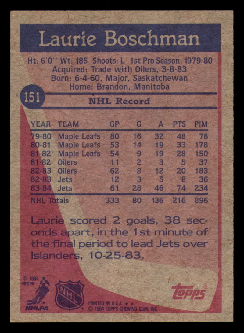 ALL MARTY'S STUFF The card in the scan is the card for sale. Each card has a high quality front and back scan of the item that you will receive. Please check the front and back pictures before buying. For combined shipping, please select all the cards that you would like from all of our many listings and have them in your shopping cart. We have a base shipping charge plus $0.05 for each additional card. Once you have made your selections, go to checkout and make one payment for the entire purchase. Multiple payments will result in multiple shipping charges. I f you have any questions, please ask . 1984-85 Topps Hockey #122 - #164 - Complete your set - Pick your card #122 Ron Sutter VG Very Good Flyers #123 Mike Bullard EX Excellent Penguins #124 Ron Flockhart EX NM Penguins #125 Rick Kehoe EX++ Excellent++ Penguins #126 Kevin McCarthy NM Near Mint Penguins #127 Mark Taylor EX++ Excellent++ Penguins #128 Dan Bouchard EX Excellent Nordiques #128 Dan Bouchard NM Near Mint Nordiques #129 Michel Goulet EX++ Excellent++ Nordiques #129 Michel Goulet NM Near Mint Nordiques #130 Peter Stastny EX NM Nordiques #130 Peter Stastny NM Near Mint Nordiques #133 Joe Mullen EX++ Excellent++ Blues #134 Rob Ramage EX Excellent Blues #134 Rob Ramage NRMT-OC Blues #135 Brian Sutter EX++ Excellent++ Blues #136 John Anderson EX++ Excellent++ Maple Leafs #136 John Anderson NRMT-OC Maple Leafs #137 Dan Daoust EX Excellent Maple Leafs (2)#137 Dan Daoust EX Excellent Maple Leafs #137 Dan Daoust EX++ Excellent++ Maple Leafs #137 Dan Daoust NM Near Mint Maple Leafs (2)#137 Dan Daoust NM Near Mint Maple Leafs (3)#137 Dan Daoust NM Near Mint Maple Leafs #137 Dan Daoust oc Maple Leafs #138 Rick Vaive EX Excellent Maple Leafs #138 Rick Vaive NM Near Mint Maple Leafs #139 Darcy Rota EX NM Canucks #140 Stan Smyl EX Excellent Canucks #140 Stan Smyl EX++ Excellent++ Canucks #141 Tony Tanti EX Excellent Canucks #141 Tony Tanti VG EX Very Good Exce Canucks #142 Dave Christian EX Excellent Capitals #144 Bengt Gustafsson EX Excellent Capitals (2)#144 Bengt Gustafsson EX Excellent Capitals #145 Doug Jarvis EX++ Excellent++ Capitals #145 Doug Jarvis NM Near Mint Capitals #145 Doug Jarvis VG Very Good Capitals #146 Al Jensen EX++ Excellent++ Capitals (2)#146 Al Jensen EX++ Excellent++ Capitals (3)#146 Al Jensen EX++ Excellent++ Capitals #146 Al Jensen NM Near Mint Capitals (2)#146 Al Jensen NM Near Mint Capitals #147 Rod Langway EX Excellent Capitals #147 Rod Langway NM Near Mint Capitals #148 Pat Riggin EX++ Excellent++ Capitals (2)#148 Pat Riggin EX++ Excellent++ Capitals (3)#148 Pat Riggin EX++ Excellent++ Capitals #148 Pat Riggin NM Near Mint Capitals (2)#148 Pat Riggin NM Near Mint Capitals #148 Pat Riggin oc Capitals (2)#148 Pat Riggin oc Capitals #150 Dave Babych EX Excellent Winn Jets #150 Dave Babych NM Near Mint Winn Jets (2)#150 Dave Babych NM Near Mint Winn Jets #151 Laurie Boschman EX Excellent Winn Jets #151 Laurie Boschman EX++ Excellent++ Winn Jets #151 Laurie Boschman NM Near Mint Winn Jets #152 Dale Hawerchuk NM Near Mint Winn Jets #153 Michel Goulet EX Excellent Nordiques (2)#153 Michel Goulet EX Excellent Nordiques #155 Mike Bossy NM Near Mint NY Islanders (2)#155 Mike Bossy NM Near Mint NY Islanders #156 Rod Langway NM Near Mint Capitals #157 Ray Bourque NM Near Mint Bruins (2)#157 Ray Bourque NM Near Mint Bruins #159 Mark Messier EX++ Excellent++ Oilers #159 Mark Messier NM Near Mint Oilers #160 Bryan Trottier EX++ Excellent++ NY Islanders #161 Jari Kurri EX++ Excellent++ Oilers #161 Jari Kurri NRMT-OC Oilers #162 Denis Potvin EX Excellent NY Islanders #164 Pat Riggin EX++ Excellent++ Capitals #164 Pat Riggin NRMT-OC Capitals This listing created with GLETech Multiple Selling Channel tools.