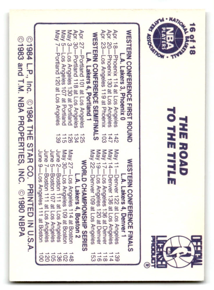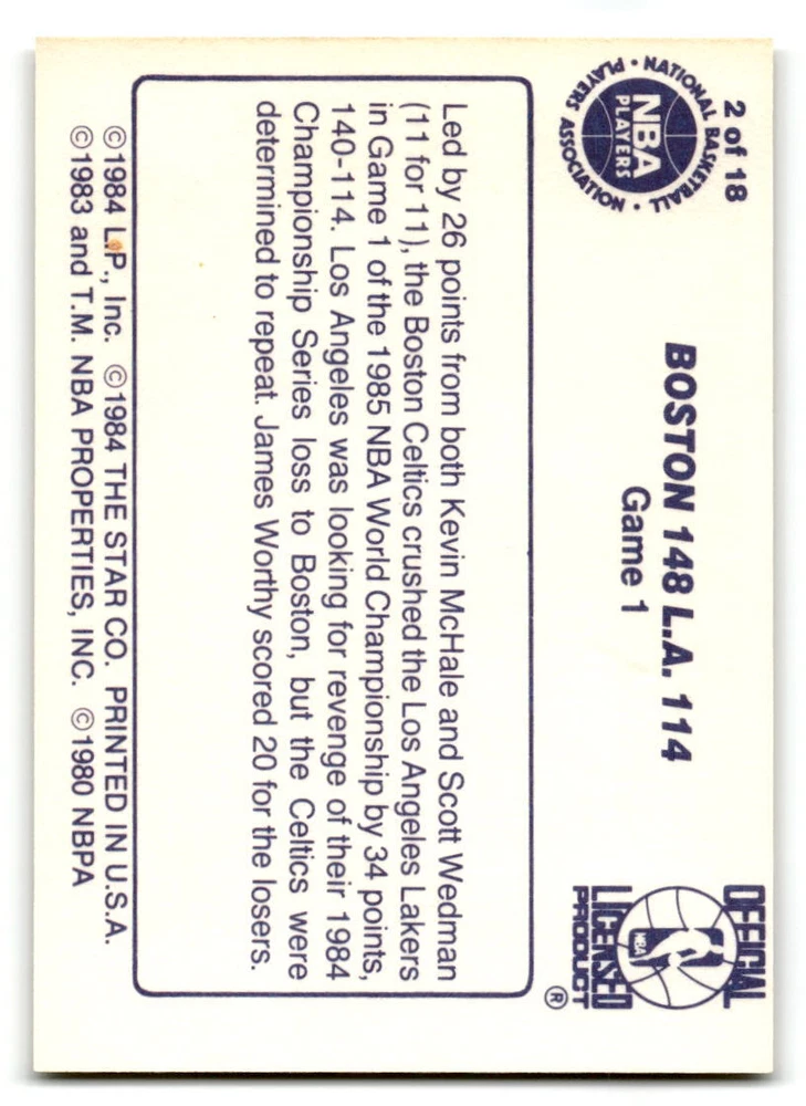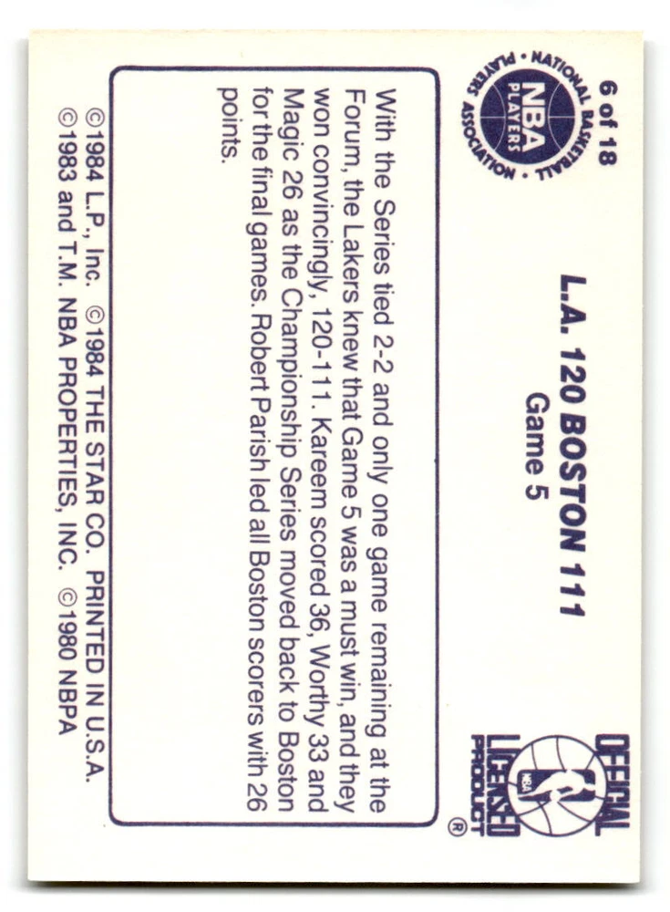Hello, This listing is for single cards from the 1985-86 Lakers Champions set. ALL cards are in at least NM to NM/MT condition. If you are not sure what NM to NM/MT means, that is a 7 or 8 out of 10. Some cards could be Mint or a 9 out of 10. I do not believe that any of these cards will be a PSA 10. The cards in the picture are the actual card you will receive. Please look at the card in the picture carefully to determine if you feel the card is in the condition I am stating in the listing. Shipping: 1st card costs $1.00 using eBay Standard Envelope and .50cents for each additional card. If you buy 7 cards or more, the shipping cost is $4 for Ground Advantage (just check the boxes for Ground Advantage in the check out and no matter how many cards you are buying the cost will be $4 max! When buying 7 cards, they will be shipped in a padded envelope or box. (Ground Advantage or Priority Mail for larger orders) The last thing I am trying to do is make a profit off of Shipping. When using eBay Standard Envelope, I will put up to 2 cards in 1 top loader to ship. Unfortunately that is the max I can put in a top loader because of the thickness of these top loaders. I can fit 3 top loaders in one started letter sized envelope. If you have any questions about shipping please don't hesitate to ask.