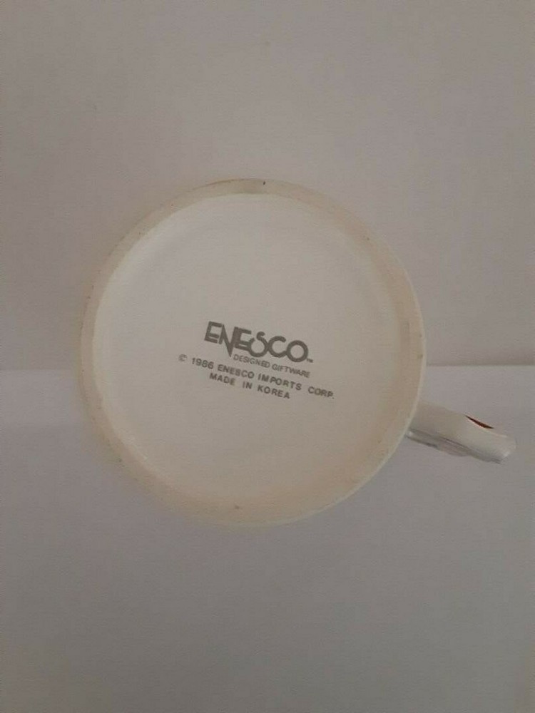 1986 Enesco Imports made in Korea Imported Design Giftware warmest wishes ceramic coffee cup. 3 3/4". Condition is "Used". Shipped with USPS Priority Mail.