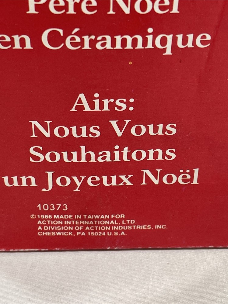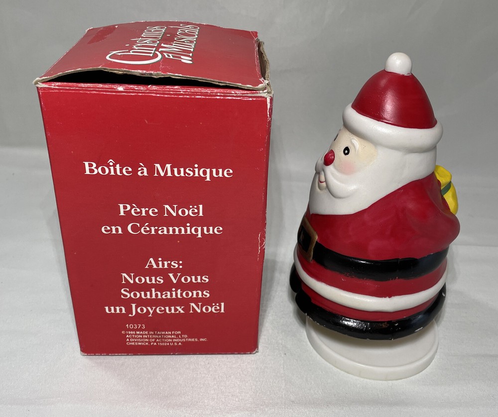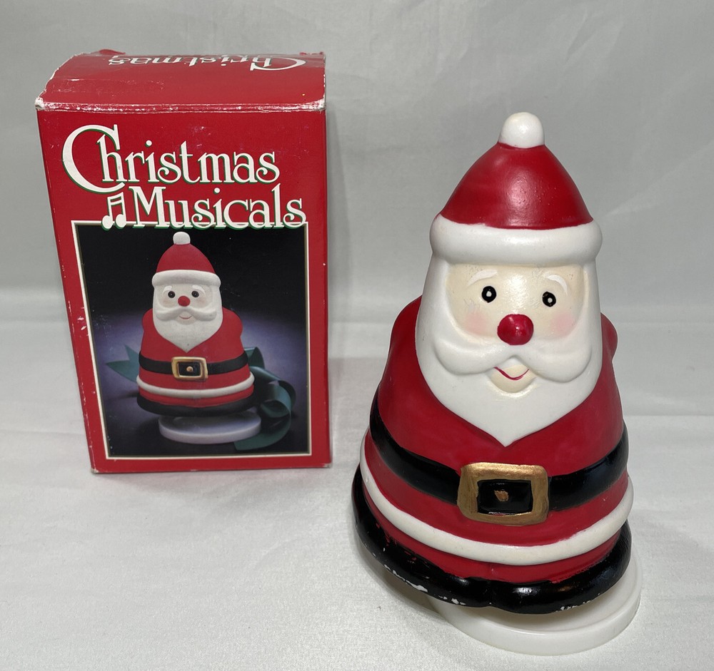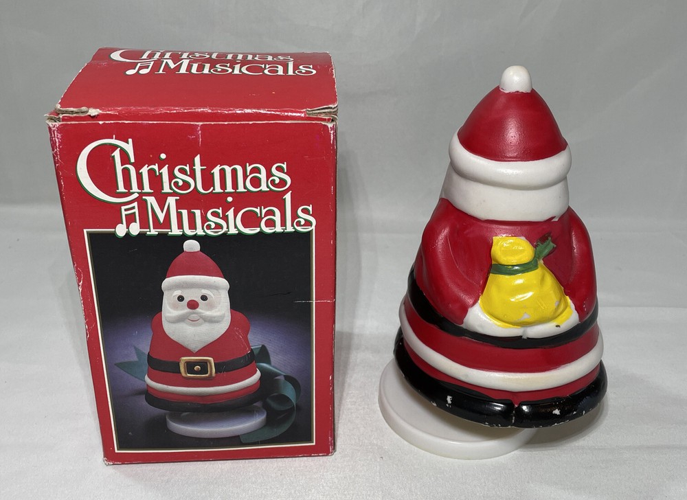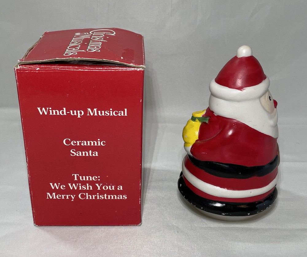 1983 Vintage Christmas Musical Wind Up Ceramic Santa: Tune We Wish You A Merry. This is a Vintage 1986 wind up musical ceramic Santa. Please keep in mind that it is vintage and will show signs of normal usage in signs of time. The box shows some signs of time and the musical Santa shows some scuffs around the edge please refer to all pictures thank you. Allow 2 to 3 days handling of product, Shipped with USPS Parcel Select Ground Mail. Please review all pictures carefully and review all information before purchase. I appreciate your business and value every transaction. Please communicate any concerns or questions you have about the pictures or Item. Thank you for looking at my listing. PAYMENT POLICY • We Accept All Major Credit Cards Payments and PayPal. • Payment must be received within 3 days of auction closing time or purchase date. If the payment is not received by these terms, we reserve the right to file a Non bidder Alert with EBay. • Unpaid orders will be canceled , if payment not received buyers will receive a Unpaid Strikes! SHIPPING POLICY • We will ship to addresses in the continental United States And in some cases International with confirm address with PayPal. • We reserve the right to choose the Carriers • Most Orders will be shipped within 1 to 3 days after we received payment confirmation. • Standard shipping will take between 2 to 7 business days depending on your location. If you need your order sooner please choose the expedition flat rate shipping service. • After your order or orders are Shipped , a tracking number is created in the EBay Site and is provided to you. • California Residents must add sales Tax RETURNS POLICY • Due to Returns Abuse NO RETURNS ARE ALLOWED • Defective products must be reported within 7 days from the ship date. • In case of return or exchange you must contact us • If the item is shipped for free, all returns will incur a 9.95 restocking fee to cover the shipping and handling fees • Returns must be in the original shipping box, unopened If product is new, sealed and fully protected. • Any product not Shipped correctly and damaged will not be refunded. TERMS OF SALE • By Purchasing the Item or items, you Agree with all our Terms and conditions. • We reserve the right to cancel any bids or end actions earlier. • We reserve the right to change the terms and conditions.