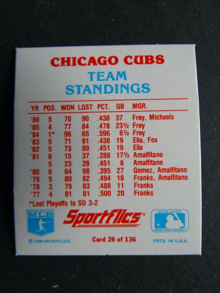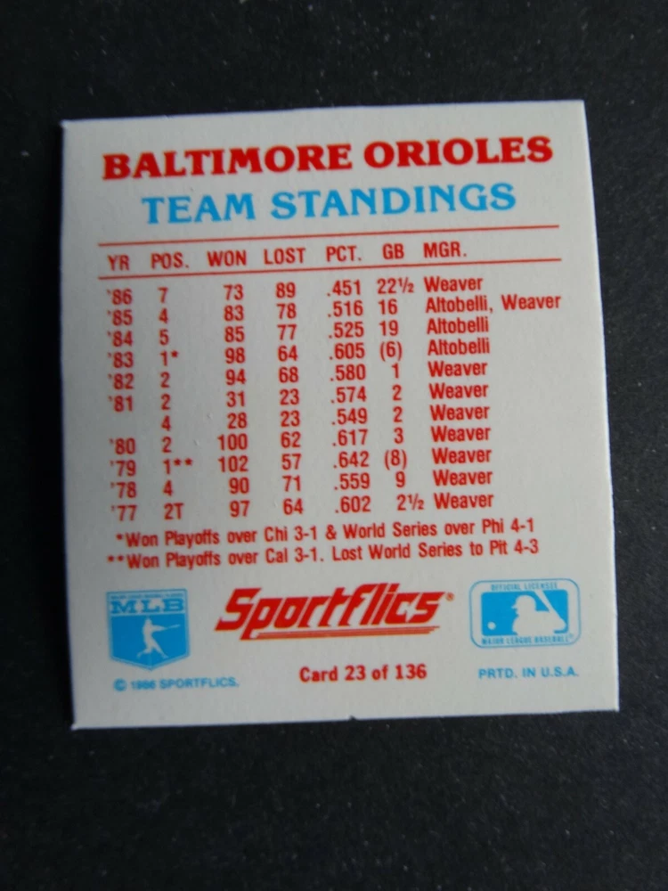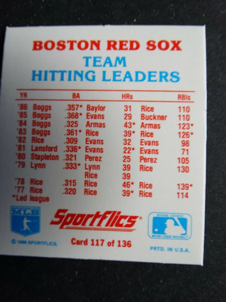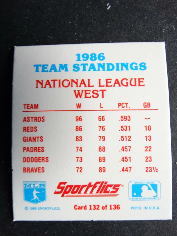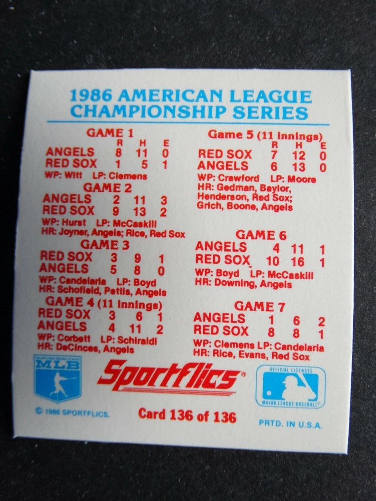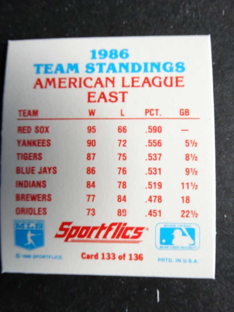 1987 Sportflics Team Logo Trivia Baseball Cards Complete Your Set U Pick 1-136 1 Team Season Records Houston Astros 2 Team Season Records Seattle Mariners 3 Team Standings Philadelphia Phillies 4 Team Season Records Milwaukee Brewers 5 1986 Team Leaders Houston Astros 6 Team Season Records Toronto Blue Jays 7 Team Standings St. Louis Cardinals 8 Team Season Records New York Mets 9 Team Standings San Diego Padres 10 Team Season Records New York Yankees 11 Team Season Records Chicago Cubs 12 1986 Team Leaders Los Angeles Dodgers 13 Team Season Records Pittsburgh Pirates 14 Team Season Records Los Angeles Dodgers 15 Team Season Records St. Louis Cardinals 16 Team Season Records San Diego Padres 17 Team Season Records California Angels 18 Team Season Records San Francisco Giants 19 Team Season Records Boston Red Sox 20 Team Season Records Baltimore Orioles 21 Team Standings Los Angeles Dodgers 22 Team Standings Detroit Tigers 23 Team Standings Baltimore Orioles 24 Team Standings Toronto Blue Jays 25 Team Standings Texas Rangers 26 Team Standings Chicago Cubs 27 Team Standings Milwaukee Brewers 28 Team Standings Oakland Athletics 29 Team Standings Kansas City Royals 30 Team Standings Cleveland Indians 31 Team Pitching Leaders Pittsburgh Pirates 32 Team Pitching Leaders St. Louis Cardinals 33 Team Pitching Leaders San Diego Padres 34 1986 Team Leaders Montreal Expos 35 Team Pitching Leaders Cincinnati Reds 36 Team Pitching Leaders Chicago Cubs 37 Team Pitching Leaders Houston Astros 38 Team Pitching Leaders New York Mets 39 Team Pitching Leaders Los Angeles Dodgers 40 Team Pitching Leaders Philadelphia Phillies 41 1986 Team Leaders Chicago Cubs 42 1986 Team Leaders Cincinnati Reds 43 Team Pitching Leaders San Francisco Giants 44 Team Pitching Leaders California Angels 45 Team Pitching Leaders Baltimore Orioles 46 Team Pitching Leaders Boston Red Sox 47 Team Pitching Leaders Chicago White Sox 48 Team Pitching Leaders Cleveland Indians 49 Team Pitching Leaders Kansas City Royals 50 Team Pitching Leaders Detroit Tigers 51 Team Hitting Leaders Houston Astros 52 Team Hitting Leaders Los Angeles Dodgers 53 Team Hitting Leaders New York Mets 54 Team Hitting Leaders Montreal Expos 55 Team Hitting Leaders Philadelphia Phillies 56 Team Hitting Leaders Pittsburgh Pirates 57 Team Hitting Leaders San Diego Padres 58 Team Hitting Leaders St. Louis Cardinals 59 Team Hitting Leaders San Francisco Giants 60 Team Hitting Leaders Baltimore Orioles 61 1986 Team Leaders Philadelphia Phillies 62 1986 Team Leaders San Diego Padres 63 1986 Team Leaders St. Louis Cardinals 64 1986 Team Leaders San Francisco Giants 65 1986 Team Leaders Pittsburgh Pirates 66 1986 Team Leaders Cleveland Indians 67 1986 Team Leaders Kansas City Royals 68 1986 Team Leaders Detroit Tigers 69 1986 Team Leaders Milwaukee Brewers 70 1986 Team Leaders Baltimore Orioles 71 Team Season Records Atlanta Braves 72 Team Hitting Leaders Atlanta Braves 73 Team Standings Atlanta Braves 74 1986 Team Leaders Atlanta Braves 75 Team Standings New York Mets 76 Team Standings Houston Astros 77 Team Standings Boston Red Sox 78 Team Standings California Angels 79 Team Pitching Leaders Atlanta Braves 80 1986 Team Leaders New York Yankees 81 Team Standings Pittsburgh Pirates 82 Team Season Records Philadelphia Phillies 83 Team Hitting Leaders Chicago Cubs 84 Team Hitting Leaders Cincinnati Reds 85 Team Season Records Montreal Expos 86 Team Standings San Francisco Giants 87 Team Season Records Texas Rangers 88 Team Season Records Cincinnati Reds 89 Team Season Records Minnesota Twins 90 Team Season Records Oakland Athletics 91 Team Season Records Kansas City Royals 92 Team Season Records Detroit Tigers 93 Team Season Records Chicago White Sox 94 Team Season Records Cleveland Indians 95 Team Standings New York Yankees 96 Team Standings Cincinnati Reds 97 1986 Team Leaders New York Mets 98 Team Standings Minnesota Twins 99 Team Standings Chicago White Sox 100 Team Standings Seattle Mariners 101 Team Standings Montreal Expos 102 Team Hitting Leaders Toronto Blue Jays 103 Team Hitting Leaders Texas Rangers 104 Team Hitting Leaders Seattle Mariners 105 Team Hitting Leaders New York Yankees 106 Team Hitting Leaders Oakland Athletics 107 Team Hitting Leaders Minnesota Twins 108 Team Pitching Leaders Montreal Expos 109 Team Pitching Leaders Milwaukee Brewers 110 Team Pitching Leaders Minnesota Twins 111 Team Pitching Leaders Oakland Athletics 112 Team Pitching Leaders New York Yankees 113 Team Pitching Leaders Seattle Mariners 114 Team Pitching Leaders Texas Rangers 115 Team Pitching Leaders Toronto Blue Jays 116 Team Hitting Leaders California Angels 117 Team Hitting Leaders Boston Red Sox 118 Team Hitting Leaders Chicago White Sox 119 Team Hitting Leaders Cleveland Indians 120 Team Hitting Leaders Kansas City Royals 121 Team Hitting Leaders Detroit Tigers 122 Team Hitting Leaders Milwaukee Brewers 123 1986 Team Leaders California Angels 124 1986 Team Leaders Boston Red Sox 125 1986 Team Leaders Chicago White Sox 126 1986 Team Leaders Texas Rangers 127 1986 Team Leaders Oakland Athletics 128 1986 Team Leaders Toronto Blue Jays 129 1986 Team Leaders Minnesota Twins 130 1986 Team Leaders Seattle Mariners 131 1986 National League East Standings New York Mets 132 1986 National League West Standings Houston Astros 133 1986 American League East Standings Boston Red Sox 134 1986 American League West Standings California Angels 135 1986 National League Championship Series New York Mets/Houston Astros 136 1986 American League Championship Series Boston Red Sox/California Angels IF YOU WIN MULTIPLE ITEMS AND ARE PAYING WITH PAYPAL SEND ONE PAYMENT. THANKS! Outside the U.S. Postage is Extra. International Shipping - items may be subject to customs processing depending on the item's declared value. Sellers set the item's declared value and must comply with customs declaration laws. As the buyer, you should be aware of possible: - delays from customs inspection. - import duties and t