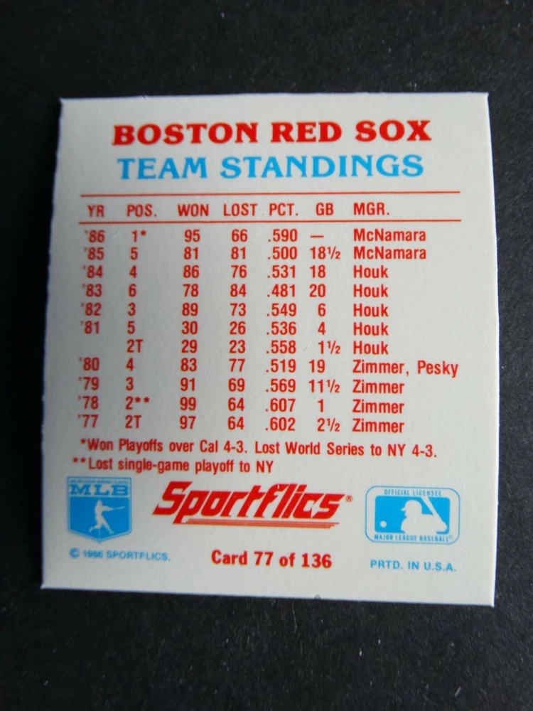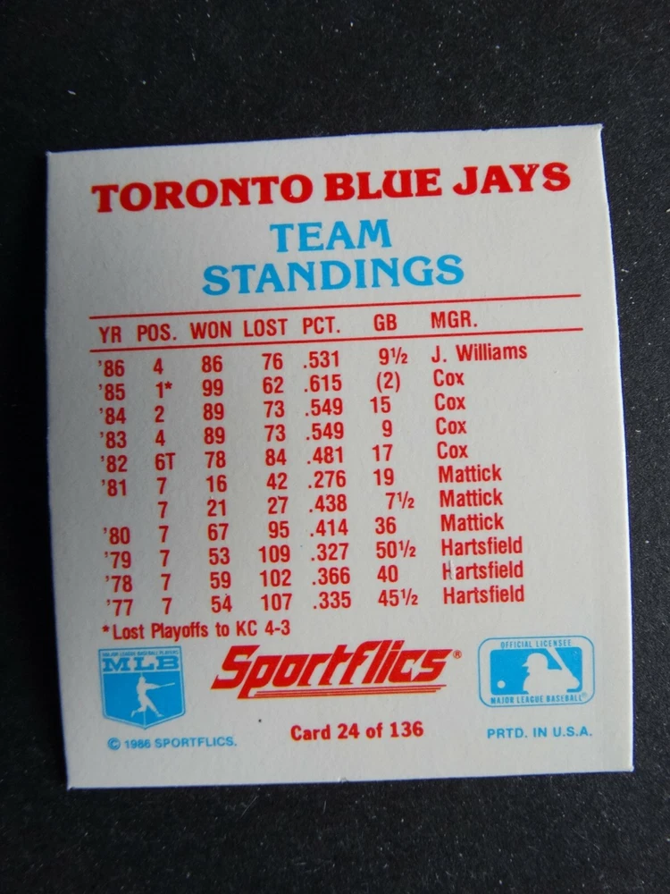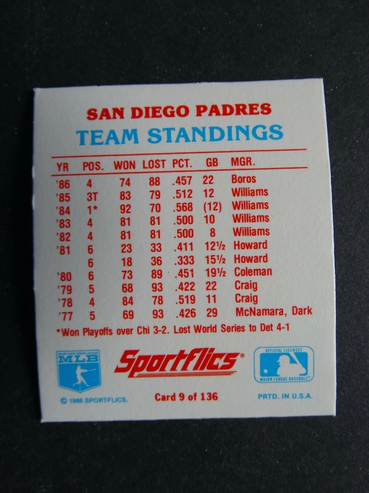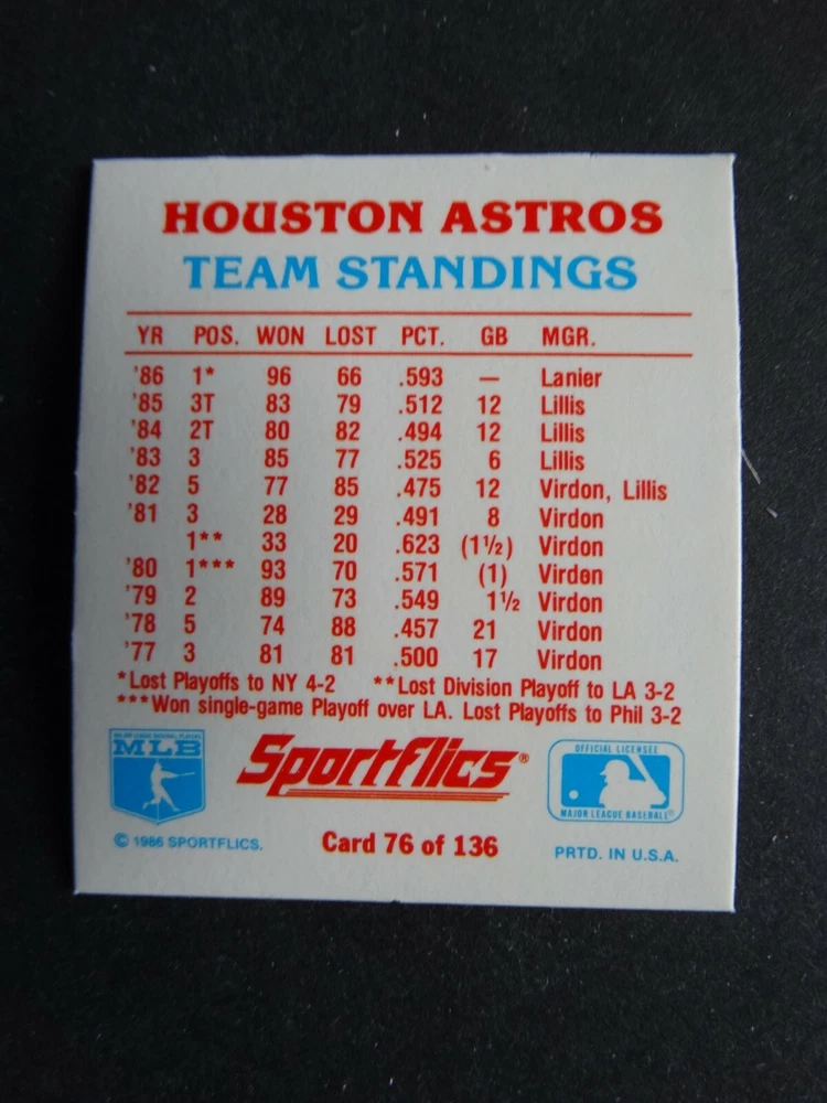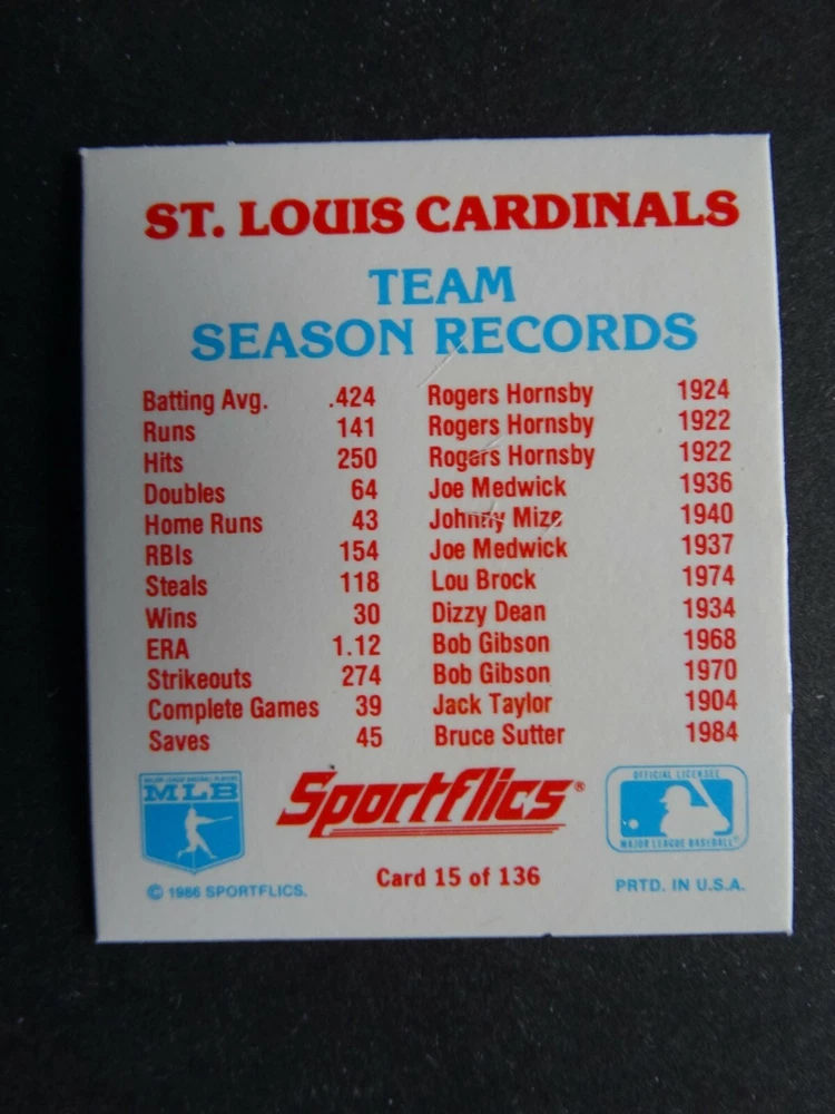 1987 Sportflics Team Logo Trivia Baseball Cards Complete Your Set U Pick 1-136 1 Team Season Records Houston Astros 2 Team Season Records Seattle Mariners 3 Team Standings Philadelphia Phillies 4 Team Season Records Milwaukee Brewers 5 1986 Team Leaders Houston Astros 6 Team Season Records Toronto Blue Jays 7 Team Standings St. Louis Cardinals 8 Team Season Records New York Mets 9 Team Standings San Diego Padres 10 Team Season Records New York Yankees 11 Team Season Records Chicago Cubs 12 1986 Team Leaders Los Angeles Dodgers 13 Team Season Records Pittsburgh Pirates 14 Team Season Records Los Angeles Dodgers 15 Team Season Records St. Louis Cardinals 16 Team Season Records San Diego Padres 17 Team Season Records California Angels 18 Team Season Records San Francisco Giants 19 Team Season Records Boston Red Sox 20 Team Season Records Baltimore Orioles 21 Team Standings Los Angeles Dodgers 22 Team Standings Detroit Tigers 23 Team Standings Baltimore Orioles 24 Team Standings Toronto Blue Jays 25 Team Standings Texas Rangers 26 Team Standings Chicago Cubs 27 Team Standings Milwaukee Brewers 28 Team Standings Oakland Athletics 29 Team Standings Kansas City Royals 30 Team Standings Cleveland Indians 31 Team Pitching Leaders Pittsburgh Pirates 32 Team Pitching Leaders St. Louis Cardinals 33 Team Pitching Leaders San Diego Padres 34 1986 Team Leaders Montreal Expos 35 Team Pitching Leaders Cincinnati Reds 36 Team Pitching Leaders Chicago Cubs 37 Team Pitching Leaders Houston Astros 38 Team Pitching Leaders New York Mets 39 Team Pitching Leaders Los Angeles Dodgers 40 Team Pitching Leaders Philadelphia Phillies 41 1986 Team Leaders Chicago Cubs 42 1986 Team Leaders Cincinnati Reds 43 Team Pitching Leaders San Francisco Giants 44 Team Pitching Leaders California Angels 45 Team Pitching Leaders Baltimore Orioles 46 Team Pitching Leaders Boston Red Sox 47 Team Pitching Leaders Chicago White Sox 48 Team Pitching Leaders Cleveland Indians 49 Team Pitching Leaders Kansas City Royals 50 Team Pitching Leaders Detroit Tigers 51 Team Hitting Leaders Houston Astros 52 Team Hitting Leaders Los Angeles Dodgers 53 Team Hitting Leaders New York Mets 54 Team Hitting Leaders Montreal Expos 55 Team Hitting Leaders Philadelphia Phillies 56 Team Hitting Leaders Pittsburgh Pirates 57 Team Hitting Leaders San Diego Padres 58 Team Hitting Leaders St. Louis Cardinals 59 Team Hitting Leaders San Francisco Giants 60 Team Hitting Leaders Baltimore Orioles 61 1986 Team Leaders Philadelphia Phillies 62 1986 Team Leaders San Diego Padres 63 1986 Team Leaders St. Louis Cardinals 64 1986 Team Leaders San Francisco Giants 65 1986 Team Leaders Pittsburgh Pirates 66 1986 Team Leaders Cleveland Indians 67 1986 Team Leaders Kansas City Royals 68 1986 Team Leaders Detroit Tigers 69 1986 Team Leaders Milwaukee Brewers 70 1986 Team Leaders Baltimore Orioles 71 Team Season Records Atlanta Braves 72 Team Hitting Leaders Atlanta Braves 73 Team Standings Atlanta Braves 74 1986 Team Leaders Atlanta Braves 75 Team Standings New York Mets 76 Team Standings Houston Astros 77 Team Standings Boston Red Sox 78 Team Standings California Angels 79 Team Pitching Leaders Atlanta Braves 80 1986 Team Leaders New York Yankees 81 Team Standings Pittsburgh Pirates 82 Team Season Records Philadelphia Phillies 83 Team Hitting Leaders Chicago Cubs 84 Team Hitting Leaders Cincinnati Reds 85 Team Season Records Montreal Expos 86 Team Standings San Francisco Giants 87 Team Season Records Texas Rangers 88 Team Season Records Cincinnati Reds 89 Team Season Records Minnesota Twins 90 Team Season Records Oakland Athletics 91 Team Season Records Kansas City Royals 92 Team Season Records Detroit Tigers 93 Team Season Records Chicago White Sox 94 Team Season Records Cleveland Indians 95 Team Standings New York Yankees 96 Team Standings Cincinnati Reds 97 1986 Team Leaders New York Mets 98 Team Standings Minnesota Twins 99 Team Standings Chicago White Sox 100 Team Standings Seattle Mariners 101 Team Standings Montreal Expos 102 Team Hitting Leaders Toronto Blue Jays 103 Team Hitting Leaders Texas Rangers 104 Team Hitting Leaders Seattle Mariners 105 Team Hitting Leaders New York Yankees 106 Team Hitting Leaders Oakland Athletics 107 Team Hitting Leaders Minnesota Twins 108 Team Pitching Leaders Montreal Expos 109 Team Pitching Leaders Milwaukee Brewers 110 Team Pitching Leaders Minnesota Twins 111 Team Pitching Leaders Oakland Athletics 112 Team Pitching Leaders New York Yankees 113 Team Pitching Leaders Seattle Mariners 114 Team Pitching Leaders Texas Rangers 115 Team Pitching Leaders Toronto Blue Jays 116 Team Hitting Leaders California Angels 117 Team Hitting Leaders Boston Red Sox 118 Team Hitting Leaders Chicago White Sox 119 Team Hitting Leaders Cleveland Indians 120 Team Hitting Leaders Kansas City Royals 121 Team Hitting Leaders Detroit Tigers 122 Team Hitting Leaders Milwaukee Brewers 123 1986 Team Leaders California Angels 124 1986 Team Leaders Boston Red Sox 125 1986 Team Leaders Chicago White Sox 126 1986 Team Leaders Texas Rangers 127 1986 Team Leaders Oakland Athletics 128 1986 Team Leaders Toronto Blue Jays 129 1986 Team Leaders Minnesota Twins 130 1986 Team Leaders Seattle Mariners 131 1986 National League East Standings New York Mets 132 1986 National League West Standings Houston Astros 133 1986 American League East Standings Boston Red Sox 134 1986 American League West Standings California Angels 135 1986 National League Championship Series New York Mets/Houston Astros 136 1986 American League Championship Series Boston Red Sox/California Angels IF YOU WIN MULTIPLE ITEMS AND ARE PAYING WITH PAYPAL SEND ONE PAYMENT. THANKS! Outside the U.S. Postage is Extra. International Shipping - items may be subject to customs processing depending on the item's declared value. Sellers set the item's declared value and must comply with customs declaration laws. As the buyer, you should be aware of possible: - delays from customs inspection. - import duties and t