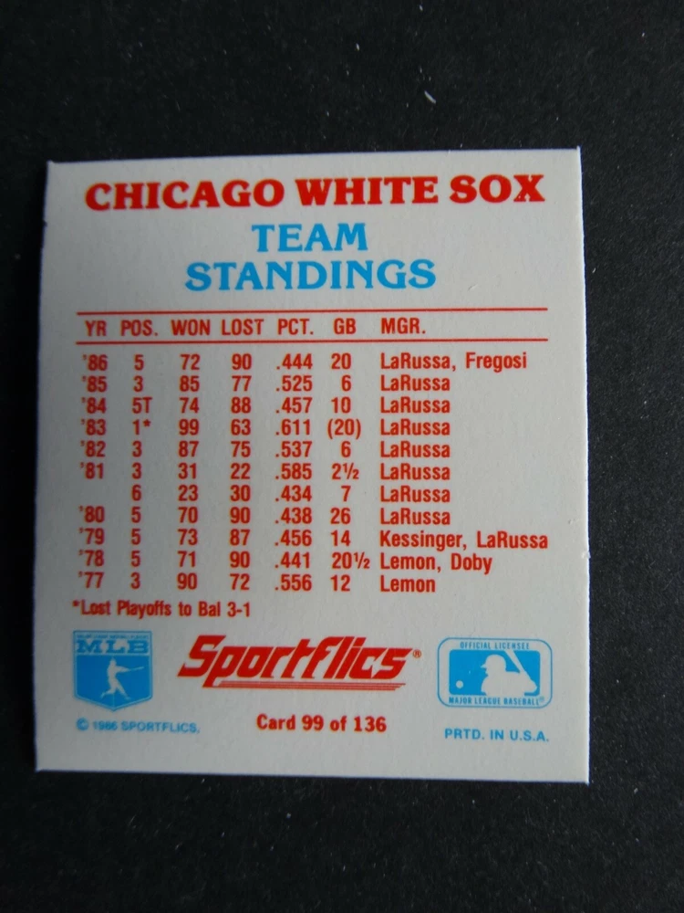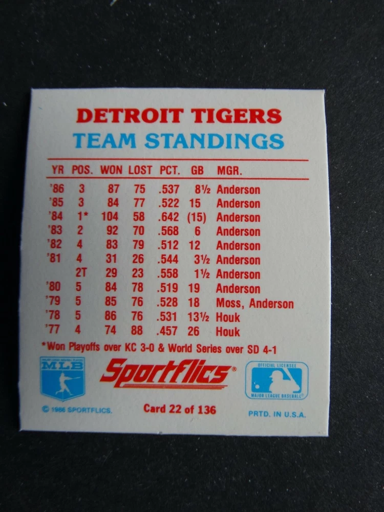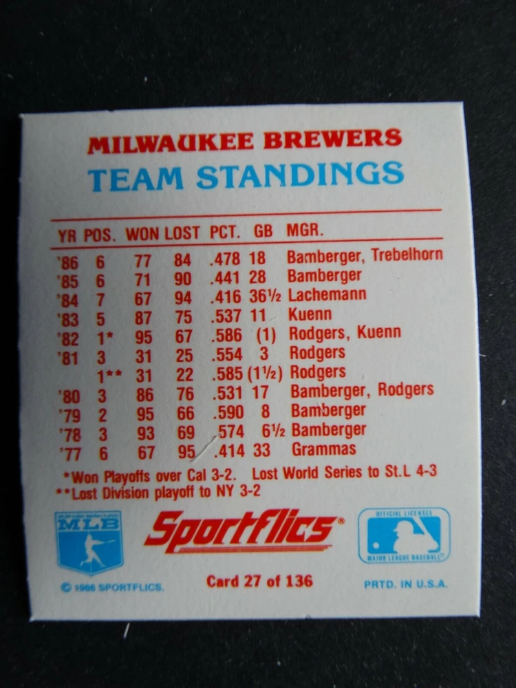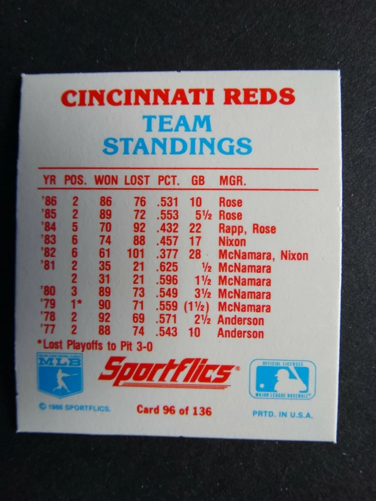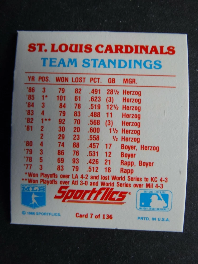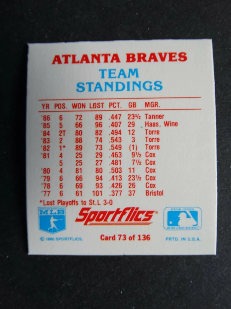 1987 Sportflics Team Logo Trivia Baseball Cards Complete Your Set U Pick 1-136 1 Team Season Records Houston Astros 2 Team Season Records Seattle Mariners 3 Team Standings Philadelphia Phillies 4 Team Season Records Milwaukee Brewers 5 1986 Team Leaders Houston Astros 6 Team Season Records Toronto Blue Jays 7 Team Standings St. Louis Cardinals 8 Team Season Records New York Mets 9 Team Standings San Diego Padres 10 Team Season Records New York Yankees 11 Team Season Records Chicago Cubs 12 1986 Team Leaders Los Angeles Dodgers 13 Team Season Records Pittsburgh Pirates 14 Team Season Records Los Angeles Dodgers 15 Team Season Records St. Louis Cardinals 16 Team Season Records San Diego Padres 17 Team Season Records California Angels 18 Team Season Records San Francisco Giants 19 Team Season Records Boston Red Sox 20 Team Season Records Baltimore Orioles 21 Team Standings Los Angeles Dodgers 22 Team Standings Detroit Tigers 23 Team Standings Baltimore Orioles 24 Team Standings Toronto Blue Jays 25 Team Standings Texas Rangers 26 Team Standings Chicago Cubs 27 Team Standings Milwaukee Brewers 28 Team Standings Oakland Athletics 29 Team Standings Kansas City Royals 30 Team Standings Cleveland Indians 31 Team Pitching Leaders Pittsburgh Pirates 32 Team Pitching Leaders St. Louis Cardinals 33 Team Pitching Leaders San Diego Padres 34 1986 Team Leaders Montreal Expos 35 Team Pitching Leaders Cincinnati Reds 36 Team Pitching Leaders Chicago Cubs 37 Team Pitching Leaders Houston Astros 38 Team Pitching Leaders New York Mets 39 Team Pitching Leaders Los Angeles Dodgers 40 Team Pitching Leaders Philadelphia Phillies 41 1986 Team Leaders Chicago Cubs 42 1986 Team Leaders Cincinnati Reds 43 Team Pitching Leaders San Francisco Giants 44 Team Pitching Leaders California Angels 45 Team Pitching Leaders Baltimore Orioles 46 Team Pitching Leaders Boston Red Sox 47 Team Pitching Leaders Chicago White Sox 48 Team Pitching Leaders Cleveland Indians 49 Team Pitching Leaders Kansas City Royals 50 Team Pitching Leaders Detroit Tigers 51 Team Hitting Leaders Houston Astros 52 Team Hitting Leaders Los Angeles Dodgers 53 Team Hitting Leaders New York Mets 54 Team Hitting Leaders Montreal Expos 55 Team Hitting Leaders Philadelphia Phillies 56 Team Hitting Leaders Pittsburgh Pirates 57 Team Hitting Leaders San Diego Padres 58 Team Hitting Leaders St. Louis Cardinals 59 Team Hitting Leaders San Francisco Giants 60 Team Hitting Leaders Baltimore Orioles 61 1986 Team Leaders Philadelphia Phillies 62 1986 Team Leaders San Diego Padres 63 1986 Team Leaders St. Louis Cardinals 64 1986 Team Leaders San Francisco Giants 65 1986 Team Leaders Pittsburgh Pirates 66 1986 Team Leaders Cleveland Indians 67 1986 Team Leaders Kansas City Royals 68 1986 Team Leaders Detroit Tigers 69 1986 Team Leaders Milwaukee Brewers 70 1986 Team Leaders Baltimore Orioles 71 Team Season Records Atlanta Braves 72 Team Hitting Leaders Atlanta Braves 73 Team Standings Atlanta Braves 74 1986 Team Leaders Atlanta Braves 75 Team Standings New York Mets 76 Team Standings Houston Astros 77 Team Standings Boston Red Sox 78 Team Standings California Angels 79 Team Pitching Leaders Atlanta Braves 80 1986 Team Leaders New York Yankees 81 Team Standings Pittsburgh Pirates 82 Team Season Records Philadelphia Phillies 83 Team Hitting Leaders Chicago Cubs 84 Team Hitting Leaders Cincinnati Reds 85 Team Season Records Montreal Expos 86 Team Standings San Francisco Giants 87 Team Season Records Texas Rangers 88 Team Season Records Cincinnati Reds 89 Team Season Records Minnesota Twins 90 Team Season Records Oakland Athletics 91 Team Season Records Kansas City Royals 92 Team Season Records Detroit Tigers 93 Team Season Records Chicago White Sox 94 Team Season Records Cleveland Indians 95 Team Standings New York Yankees 96 Team Standings Cincinnati Reds 97 1986 Team Leaders New York Mets 98 Team Standings Minnesota Twins 99 Team Standings Chicago White Sox 100 Team Standings Seattle Mariners 101 Team Standings Montreal Expos 102 Team Hitting Leaders Toronto Blue Jays 103 Team Hitting Leaders Texas Rangers 104 Team Hitting Leaders Seattle Mariners 105 Team Hitting Leaders New York Yankees 106 Team Hitting Leaders Oakland Athletics 107 Team Hitting Leaders Minnesota Twins 108 Team Pitching Leaders Montreal Expos 109 Team Pitching Leaders Milwaukee Brewers 110 Team Pitching Leaders Minnesota Twins 111 Team Pitching Leaders Oakland Athletics 112 Team Pitching Leaders New York Yankees 113 Team Pitching Leaders Seattle Mariners 114 Team Pitching Leaders Texas Rangers 115 Team Pitching Leaders Toronto Blue Jays 116 Team Hitting Leaders California Angels 117 Team Hitting Leaders Boston Red Sox 118 Team Hitting Leaders Chicago White Sox 119 Team Hitting Leaders Cleveland Indians 120 Team Hitting Leaders Kansas City Royals 121 Team Hitting Leaders Detroit Tigers 122 Team Hitting Leaders Milwaukee Brewers 123 1986 Team Leaders California Angels 124 1986 Team Leaders Boston Red Sox 125 1986 Team Leaders Chicago White Sox 126 1986 Team Leaders Texas Rangers 127 1986 Team Leaders Oakland Athletics 128 1986 Team Leaders Toronto Blue Jays 129 1986 Team Leaders Minnesota Twins 130 1986 Team Leaders Seattle Mariners 131 1986 National League East Standings New York Mets 132 1986 National League West Standings Houston Astros 133 1986 American League East Standings Boston Red Sox 134 1986 American League West Standings California Angels 135 1986 National League Championship Series New York Mets/Houston Astros 136 1986 American League Championship Series Boston Red Sox/California Angels IF YOU WIN MULTIPLE ITEMS AND ARE PAYING WITH PAYPAL SEND ONE PAYMENT. THANKS! Outside the U.S. Postage is Extra. International Shipping - items may be subject to customs processing depending on the item's declared value. Sellers set the item's declared value and must comply with customs declaration laws. As the buyer, you should be aware of possible: - delays from customs inspection. - import duties and t