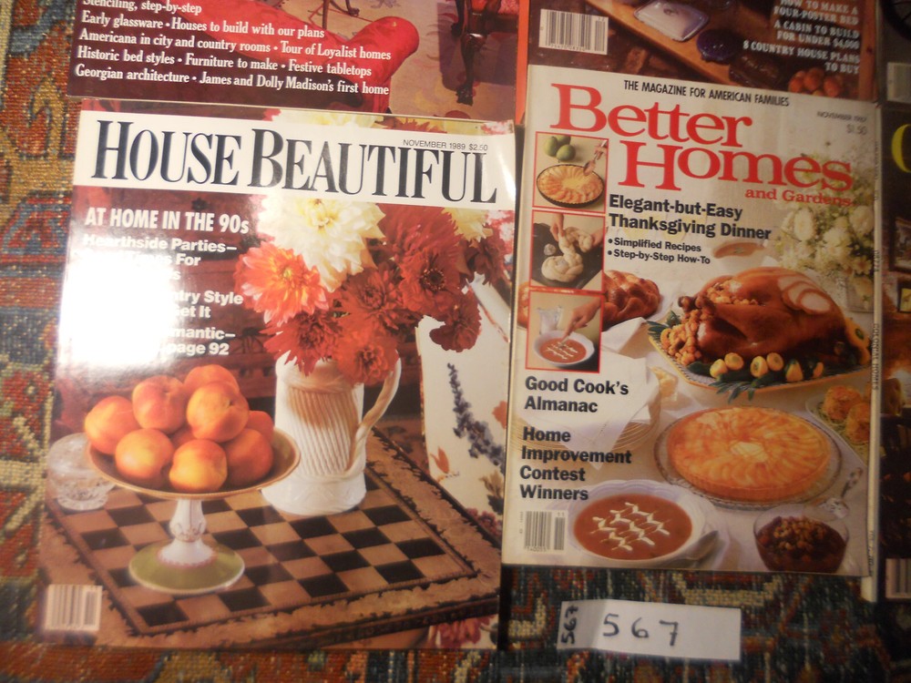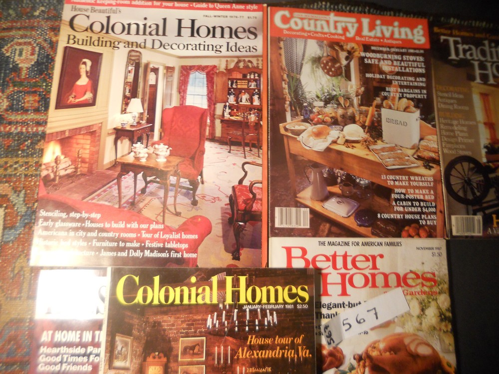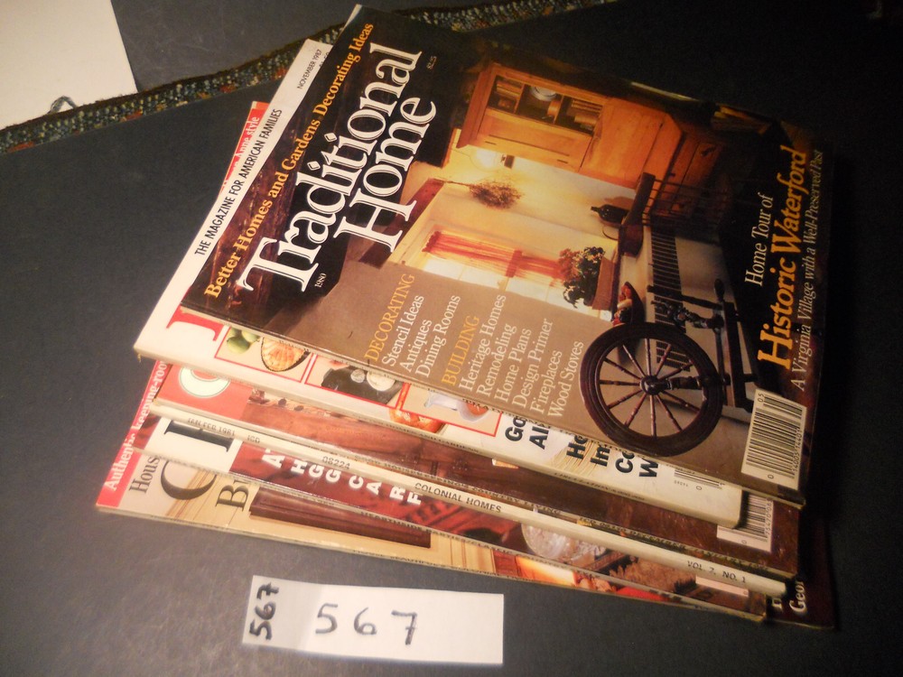 Lot 567, Great gift Idea !*Great additions to your collection,*Clean kept Magazines considering age, *INCLUDES::::*******BETTER HOMES AND GARDENS: ******NOVEMBER 1987, **BETTER HOMES& GARDENS DECORATING IDEAS TRADITIONAL HOME, TOUR OF HISTORIC WATERFORD, **GOOD HOUSEKEEPING'S COUNTRY LIVING DEC/JAN 1981, **COLONIAL HOMES JANUARY-FEBRUARY 1981, HOUSE TOUR OF ALEXANDRIA VA, flat and clean, glossy, ***HOUSE BEAUTIFUL: NOVEMBER 1989, clean issue, ***HOUSE BEAUTIFUL'S COLONIAL HOMES: BUILDING AND DECORATING IDEAS, FALL-WINTER 1976-1977, clean and flat, STenciling, Early Glassware, etc, flat, clean, glossy, , ** ***glossy flat, may be gently used but well kept without major spots or tears, may be a light wrinkle or crease normal to vintage magazines, , ****, **************FLAT AND GENERALLY WELL KEPT BY PREV. OWNER, well attached at staples, may be a light crease or wrinkle normal to vintage magazines, , NON SMOKING, nothing musty, * *I CAN COMBINE FOR SHIPPING SAVINGS, Easiest is to purchase, and let me refund all s/h differences back to the buyer, **I CAN ALSO SHIP IN A FLAT RATE BOX FOR MULTIPLE PURCHASES, if going a distance*** nothing musty, all from a non smoking estate, ********* I want you to be happy with your order, Plse see my feedback and bid with confidence- Please read the description in it's entirety- Per Paypal policy I can only ship to the address provided on the Paypal payment page sent to me- - I try to describe items to the best of my ability, but not an expert on all things- If any issues should arrive, Plse let me know and allow me to resolve any issues before leaving nuetral/negative feedback, as I'm always looking to improve ! Thanks and good luck !