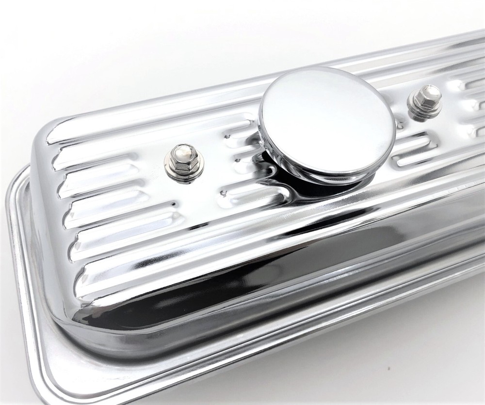 1987-00 SB Chevy Engine Dress Up Kit - Chrome Features: Finish: Chrome Steel. Application: 1987-2000 SB Chevy GMC 5.0 305 & 5.7 350 V8 Engines, Fits both single & dual-stud TB's. Height: Valve Covers height 2-3/8" (Stock OEM Height). Baffled: Yes. Breather: Yes Oil Filler Cap: Yes PCV Valve: Yes Mounting Hardware: Yes Kit Includes: 1 Pair - NEW Chrome Valve Covers! (Actual Valve Covers, Not Caps) 8 - HEX CAP Valve Cover Bolts 1 - Push-In Breather Cap & Grommet 1 - PCV Valve & Grommet 1 - Oil Filler Cap Fits Chevrolet C1500, Chevrolet C2500, Chevrolet C3500, Chevrolet C3500HD, Chevrolet Camaro, Chevrolet Caprice, Chevrolet Corvette, Chevrolet K1500, Chevrolet K2500, Chevrolet K3500, Chevrolet Monte Carlo, Chevrolet R20, Chevrolet R30, Chevrolet R3500, Chevrolet V30, Chevrolet V3500, GMC C1500, GMC C2500, GMC C3500, GMC K1500, GMC K2500, GMC K3500, GMC R2500, GMC R3500, and GMC V3500 models. *Take advantage of this super low price, only while supply lasts! Fast and Free Shipping You're already purchasing the item. Why pay additional for shipping, especially slow shipping? We get your order shipped out within 1-business day and delivered to your doorstep as quickly as possible. Competitive Pricing With our dynamic pricing model, our prices are always competitive. Our prices are some of the lowest that you will find on the internet. Rest assured that you're getting a good deal when purchasing with us. 30-day Money Back Guarantee We are committed to making sure that you leave this transaction satisfied. If you're unhappy with the product for any reason, you may return it back for your money-back or a replacement within 30 days. No questions asked!