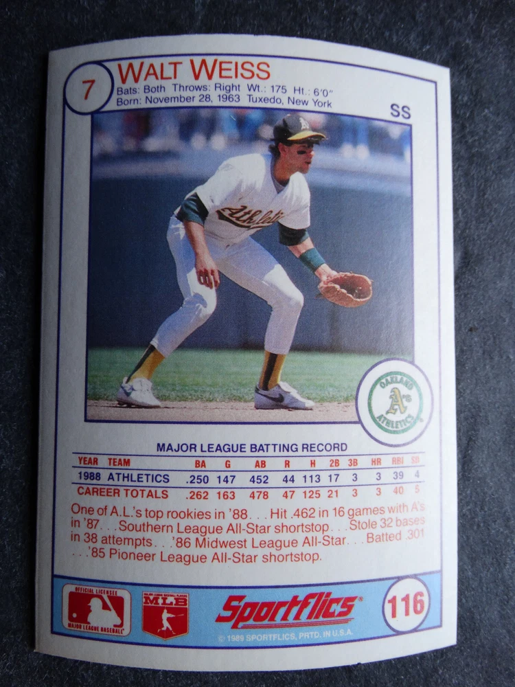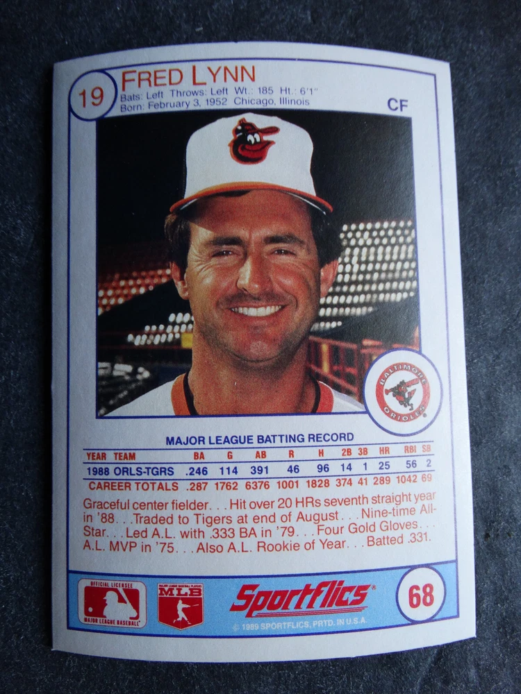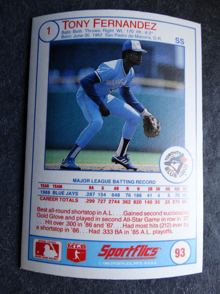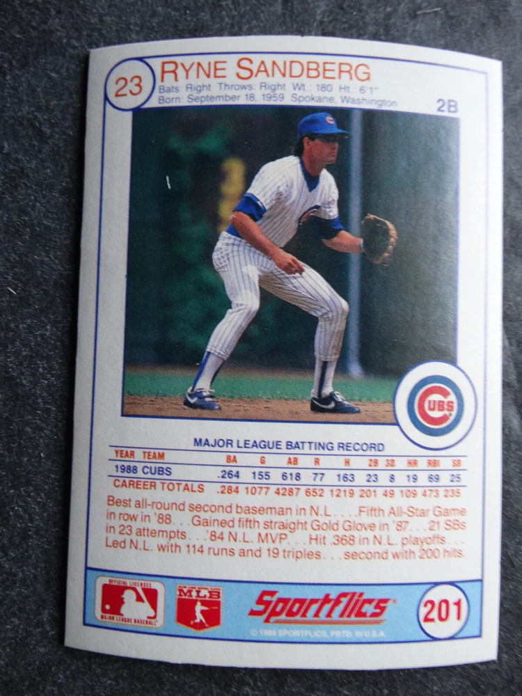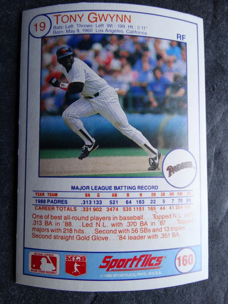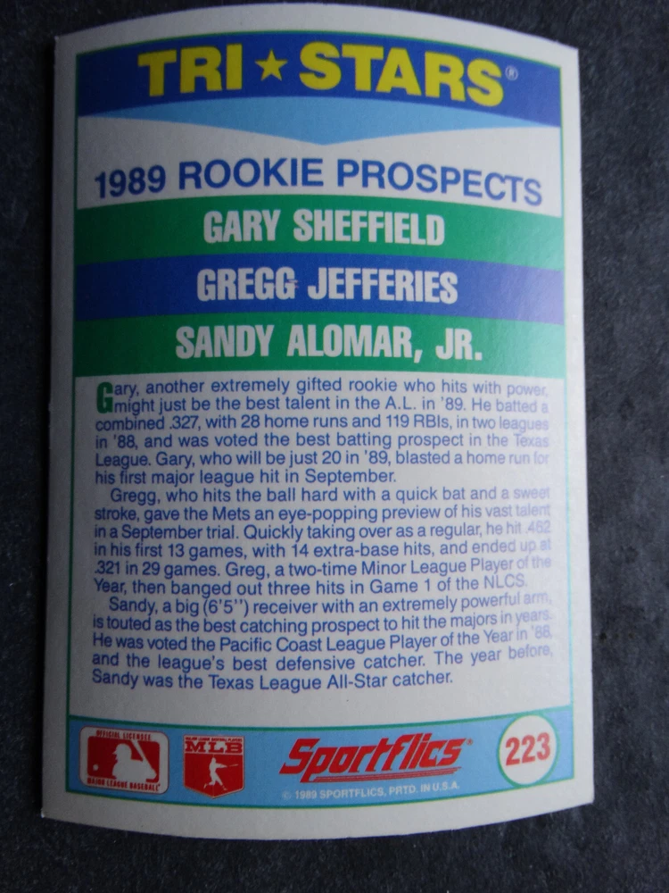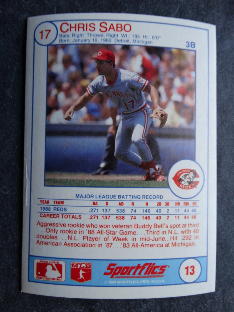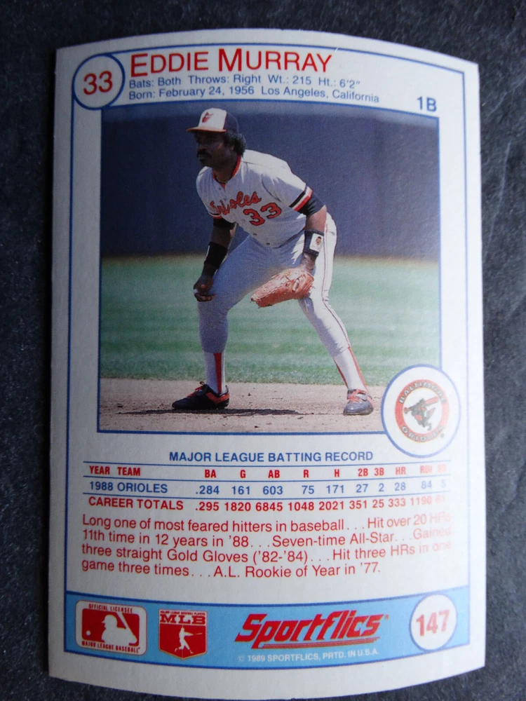 1989 Sportflics Baseball Cards Complete Your Set U Pick From List 1-225 *****The cards that don't show the front of the card have defects as shown in the pictures***** 1 Jose Canseco Oakland Athletics 2 Wally Joyner California Angels 3 Roger Clemens Boston Red Sox 4 Greg Swindell Cleveland Indians 5 Jack Morris Detroit Tigers 6 Mickey Brantley Seattle Mariners 7 Jim Presley Seattle Mariners 8 Pete O'Brien Texas Rangers 9 Jesse Barfield Toronto Blue Jays 10 Frank Viola Minnesota Twins 11 Kevin Bass Houston Astros 12 Glenn Wilson Seattle Mariners 13 Chris Sabo Cincinnati Reds 14 Fred McGriff Toronto Blue Jays 15 Mark Grace Chicago Cubs 16 Devon White California Angels 17 Juan Samuel Philadelphia Phillies 18 Lou Whitaker Detroit Tigers 19 Greg Walker Chicago White Sox 20 Roberto Alomar San Diego Padres 21 Mike Schmidt Philadelphia Phillies 22 Benny Santiago San Diego Padres 23 Dave Stewart Oakland Athletics 24 Dave Winfield New York Yankees 25 George Bell Toronto Blue Jays 26 Jack Clark New York Yankees 27 Doug Drabek Pittsburgh Pirates 28 Ron Gant Atlanta Braves 29 Glenn Braggs Milwaukee Brewers 30 Rafael Palmeiro Chicago Cubs 31 Brett Butler San Francisco Giants 32 Ron Darling New York Mets 33 Alvin Davis Seattle Mariners 34 Bob Walk Pittsburgh Pirates 35 Dave Stieb Toronto Blue Jays 36 Orel Hershiser Los Angeles Dodgers 37 John Farrell Cleveland Indians 38 Doug Jones Cleveland Indians 39 Kelly Downs San Francisco Giants 40 Bob Boone California Angels 41 Gary Sheffield Milwaukee Brewers 42 Doug Dascenzo Chicago Cubs 43 Chad Kreuter RC Texas Rangers 44 Ricky Jordan Philadelphia Phillies 45 Dave West New York Mets 46 Danny Tartabull Kansas City Royals 47 Teddy Higuera Milwaukee Brewers 48 Gary Gaetti Minnesota Twins 49 Dave Parker Oakland Athletics 50 Don Mattingly New York Yankees 51 David Cone New York Mets 52 Kal Daniels Cincinnati Reds 53 Carney Lansford Oakland Athletics 54 Mike Marshall Los Angeles Dodgers 55 Kevin Seitzer Kansas City Royals 56 Mike Henneman Detroit Tigers 57 Bill Doran Houston Astros 58 Steve Sax Los Angeles Dodgers 59 Lance Parrish Philadelphia Phillies 60 Keith Hernandez New York Mets 61 Jose Uribe San Francisco Giants 62 Jose Lind Pittsburgh Pirates 63 Steve Bedrosian Philadelphia Phillies 64 George Brett Kansas City Royals 65 Kirk Gibson Los Angeles Dodgers 66 Cal Ripken, Jr. Baltimore Orioles 67 Mitch Webster Chicago Cubs 68 Fred Lynn Baltimore Orioles 69 Eric Davis Cincinnati Reds 70 Bo Jackson Kansas City Royals 71 Kevin Elster New York Mets 72 Rick Reuschel San Francisco Giants 73 Tim Burke Montreal Expos 74 Mark Davis San Diego Padres 75 Claudell Washington New York Yankees 76 Lance McCullers San Diego Padres 77 Mike Moore Seattle Mariners 78 Robby Thompson San Francisco Giants 79 Roger McDowell New York Mets 80 Danny Jackson Cincinnati Reds 81 Tim Leary Los Angeles Dodgers 82 Bobby Witt Texas Rangers 83 Jim Gott Pittsburgh Pirates 84 Andy Hawkins San Diego Padres 85 Ozzie Guillen Chicago White Sox 86 John Tudor Los Angeles Dodgers 87 Todd Burns RC Oakland Athletics 88 Dave Gallagher Chicago White Sox 89 Jay Buhner Seattle Mariners 90 Gregg Jefferies New York Mets 91 Bob Welch Oakland Athletics 92 Charlie Hough Texas Rangers 93 Tony Fernandez Toronto Blue Jays 94 Ozzie Virgil Atlanta Braves 95 Andre Dawson Chicago Cubs 96 Hubie Brooks Montreal Expos 97 Kevin McReynolds New York Mets 98 Mike LaValliere Pittsburgh Pirates 99 Terry Pendleton St. Louis Cardinals 100 Wade Boggs Boston Red Sox 101 Dennis Eckersley Oakland Athletics 102 Mark Gubicza Kansas City Royals 103 Frank Tanana Detroit Tigers 104 Joe Carter Cleveland Indians 105 Ozzie Smith St. Louis Cardinals 106 Dennis Martinez Montreal Expos 107 Jeff Treadway Cincinnati Reds 108 Greg Maddux Chicago Cubs 109 Bret Saberhagen Kansas City Royals 110 Dale Murphy Atlanta Braves 111 Rob Deer Milwaukee Brewers 112 Pete Incaviglia Texas Rangers 113 Vince Coleman St. Louis Cardinals 114 Tim Wallach Montreal Expos 115 Nolan Ryan Houston Astros 116 Walt Weiss Oakland Athletics 117 Brian Downing California Angels 118 Melido Perez Chicago White Sox 119 Terry Steinbach Oakland Athletics 120 Mike Scott Houston Astros 121 Tim Belcher Los Angeles Dodgers 122 Mike Boddicker Boston Red Sox 123 Lenny Dykstra New York Mets 124 Fernando Valenzuela Los Angeles Dodgers 125 Gerald Young Houston Astros 126 Tom Henke Toronto Blue Jays 127 Dave Henderson Oakland Athletics 128 Dan Plesac Milwaukee Brewers 129 Chili Davis California Angels 130 Bryan Harvey California Angels 131 Don August Milwaukee Brewers 132 Mike Harkey Chicago Cubs 133 Luis Polonia Oakland Athletics 134 Craig Worthington RC Baltimore Orioles 135 Joey Meyer Milwaukee Brewers 136 Barry Larkin Cincinnati Reds 137 Glenn Davis Houston Astros 138 Mike Scioscia Los Angeles Dodgers 139 Andres Galarraga Montreal Expos 140 Dwight Gooden New York Mets 141 Keith Moreland San Diego Padres 142 Kevin Mitchell San Francisco Giants 143 Mike Greenwell Boston Red Sox 144 Mel Hall Cleveland Indians 145 Rickey Henderson New York Yankees 146 Barry Bonds Pittsburgh Pirates 147 Eddie Murray Baltimore Orioles 148 Lee Smith Boston Red Sox 149 Julio Franco Cleveland Indians 150 Tim Raines Montreal Expos 151 Mitch Williams Texas Rangers 152 Tim Laudner Minnesota Twins 153 Mike Pagliarulo New York Yankees 154 Floyd Bannister Kansas City Royals 155 Gary Carter New York Mets 156 Kirby Puckett Minnesota Twins 157 Harold Baines Chicago White Sox 158 Dave Righetti New York Yankees 159 Mark Langston Seattle Mariners 160 Tony Gwynn San Diego Padres 161 Tom Brunansky St. Louis Cardinals 162 Vance Law Chicago Cubs 163 Kelly Gruber Toronto Blue Jays 164 Gerald Perry Atlanta Braves 165 Harold Reynolds Seattle Mariners 166 Andy Van Slyke Pittsburgh Pirates 167 Jimmy Key Toronto Blue Jays 168 Jeff Reardon Minnesota Twins 169 Milt Thompson Philadelphia Phillies 170 Will Clark San Francisco Giants 171 Chet Lemon Detroit Tigers 172 Pat Tabler Kansas City Royals 173 Jim Rice Boston Red Sox 174 Billy Hatcher Hou