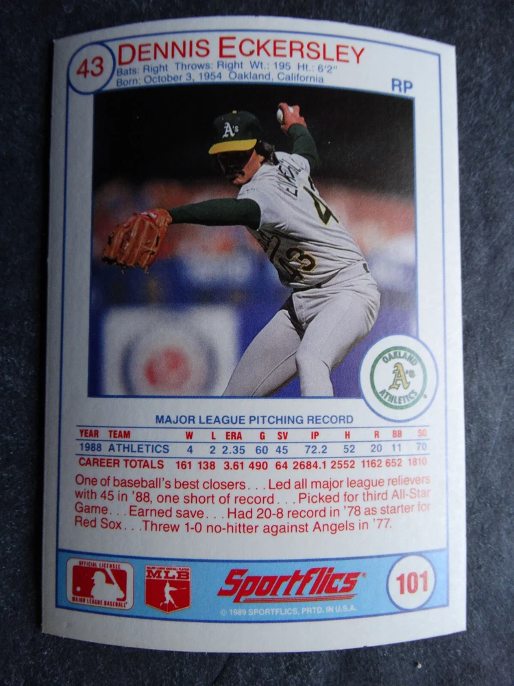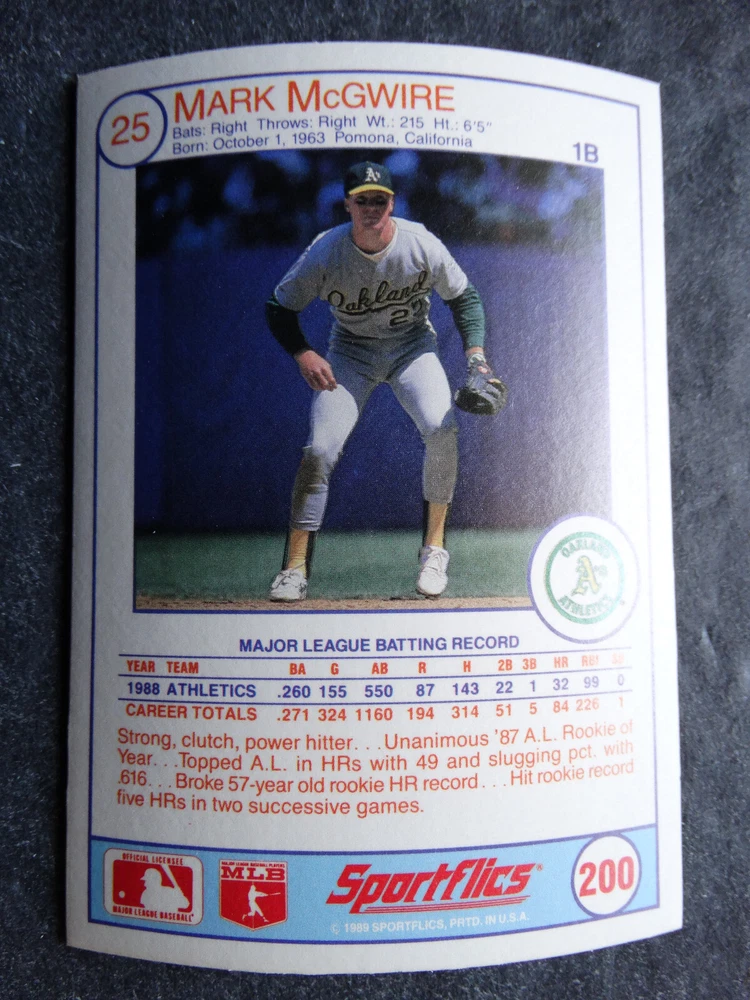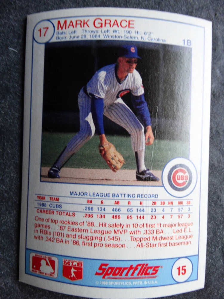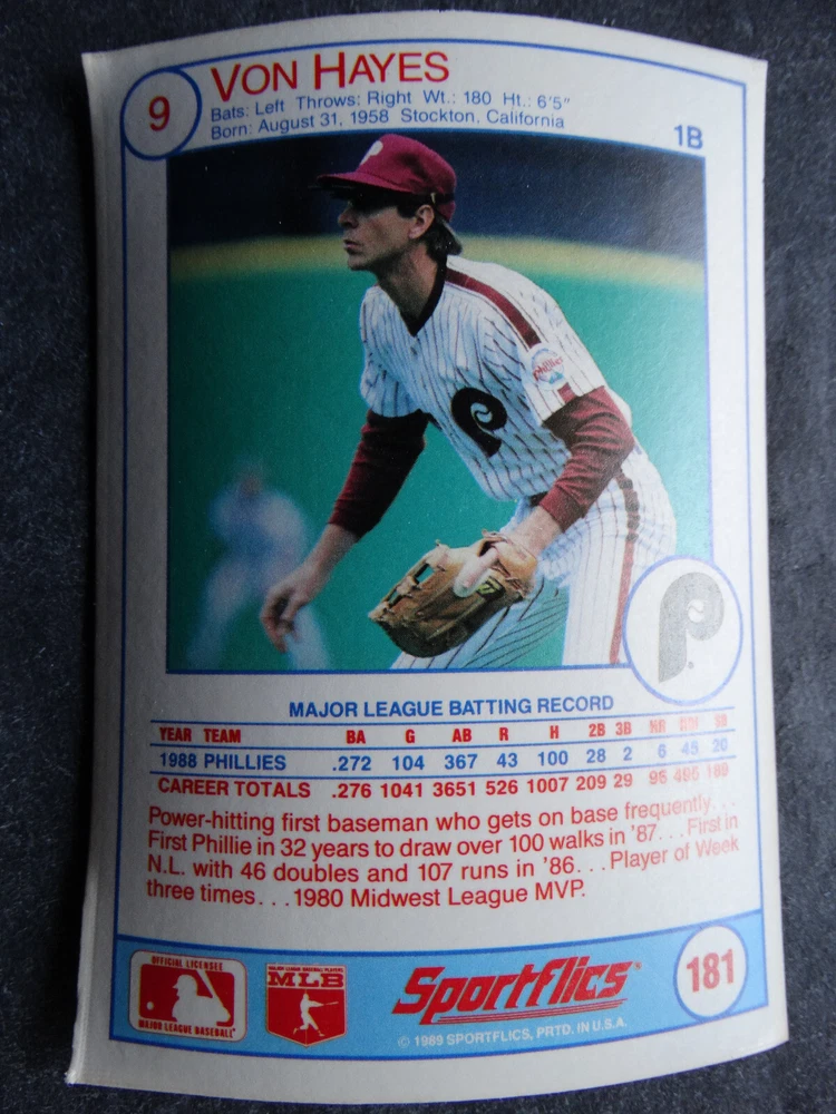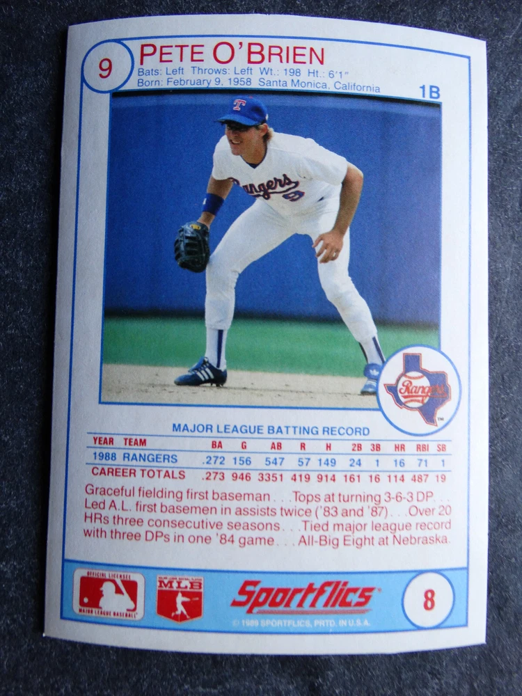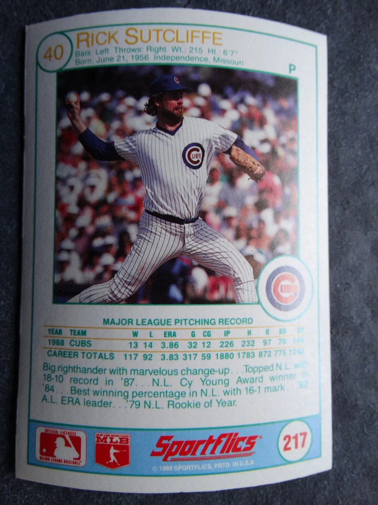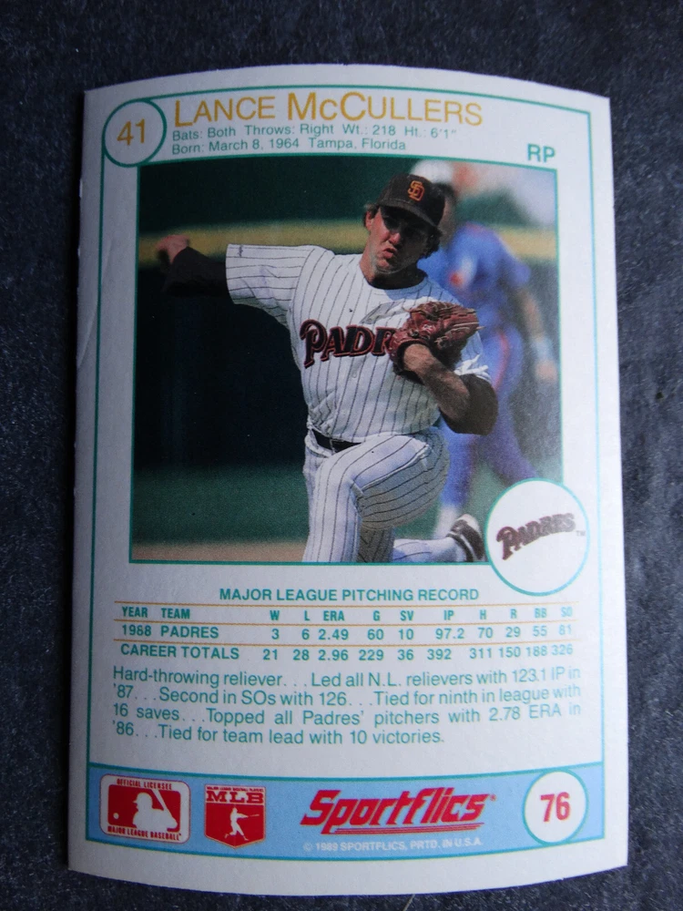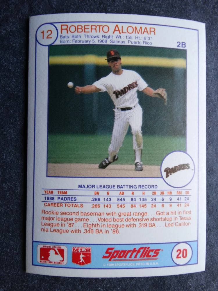1989 Sportflics Baseball Cards Complete Your Set U Pick From List 1-225 *****The cards that don't show the front of the card have defects as shown in the pictures***** 1 Jose Canseco Oakland Athletics 2 Wally Joyner California Angels 3 Roger Clemens Boston Red Sox 4 Greg Swindell Cleveland Indians 5 Jack Morris Detroit Tigers 6 Mickey Brantley Seattle Mariners 7 Jim Presley Seattle Mariners 8 Pete O'Brien Texas Rangers 9 Jesse Barfield Toronto Blue Jays 10 Frank Viola Minnesota Twins 11 Kevin Bass Houston Astros 12 Glenn Wilson Seattle Mariners 13 Chris Sabo Cincinnati Reds 14 Fred McGriff Toronto Blue Jays 15 Mark Grace Chicago Cubs 16 Devon White California Angels 17 Juan Samuel Philadelphia Phillies 18 Lou Whitaker Detroit Tigers 19 Greg Walker Chicago White Sox 20 Roberto Alomar San Diego Padres 21 Mike Schmidt Philadelphia Phillies 22 Benny Santiago San Diego Padres 23 Dave Stewart Oakland Athletics 24 Dave Winfield New York Yankees 25 George Bell Toronto Blue Jays 26 Jack Clark New York Yankees 27 Doug Drabek Pittsburgh Pirates 28 Ron Gant Atlanta Braves 29 Glenn Braggs Milwaukee Brewers 30 Rafael Palmeiro Chicago Cubs 31 Brett Butler San Francisco Giants 32 Ron Darling New York Mets 33 Alvin Davis Seattle Mariners 34 Bob Walk Pittsburgh Pirates 35 Dave Stieb Toronto Blue Jays 36 Orel Hershiser Los Angeles Dodgers 37 John Farrell Cleveland Indians 38 Doug Jones Cleveland Indians 39 Kelly Downs San Francisco Giants 40 Bob Boone California Angels 41 Gary Sheffield Milwaukee Brewers 42 Doug Dascenzo Chicago Cubs 43 Chad Kreuter RC Texas Rangers 44 Ricky Jordan Philadelphia Phillies 45 Dave West New York Mets 46 Danny Tartabull Kansas City Royals 47 Teddy Higuera Milwaukee Brewers 48 Gary Gaetti Minnesota Twins 49 Dave Parker Oakland Athletics 50 Don Mattingly New York Yankees 51 David Cone New York Mets 52 Kal Daniels Cincinnati Reds 53 Carney Lansford Oakland Athletics 54 Mike Marshall Los Angeles Dodgers 55 Kevin Seitzer Kansas City Royals 56 Mike Henneman Detroit Tigers 57 Bill Doran Houston Astros 58 Steve Sax Los Angeles Dodgers 59 Lance Parrish Philadelphia Phillies 60 Keith Hernandez New York Mets 61 Jose Uribe San Francisco Giants 62 Jose Lind Pittsburgh Pirates 63 Steve Bedrosian Philadelphia Phillies 64 George Brett Kansas City Royals 65 Kirk Gibson Los Angeles Dodgers 66 Cal Ripken, Jr. Baltimore Orioles 67 Mitch Webster Chicago Cubs 68 Fred Lynn Baltimore Orioles 69 Eric Davis Cincinnati Reds 70 Bo Jackson Kansas City Royals 71 Kevin Elster New York Mets 72 Rick Reuschel San Francisco Giants 73 Tim Burke Montreal Expos 74 Mark Davis San Diego Padres 75 Claudell Washington New York Yankees 76 Lance McCullers San Diego Padres 77 Mike Moore Seattle Mariners 78 Robby Thompson San Francisco Giants 79 Roger McDowell New York Mets 80 Danny Jackson Cincinnati Reds 81 Tim Leary Los Angeles Dodgers 82 Bobby Witt Texas Rangers 83 Jim Gott Pittsburgh Pirates 84 Andy Hawkins San Diego Padres 85 Ozzie Guillen Chicago White Sox 86 John Tudor Los Angeles Dodgers 87 Todd Burns RC Oakland Athletics 88 Dave Gallagher Chicago White Sox 89 Jay Buhner Seattle Mariners 90 Gregg Jefferies New York Mets 91 Bob Welch Oakland Athletics 92 Charlie Hough Texas Rangers 93 Tony Fernandez Toronto Blue Jays 94 Ozzie Virgil Atlanta Braves 95 Andre Dawson Chicago Cubs 96 Hubie Brooks Montreal Expos 97 Kevin McReynolds New York Mets 98 Mike LaValliere Pittsburgh Pirates 99 Terry Pendleton St. Louis Cardinals 100 Wade Boggs Boston Red Sox 101 Dennis Eckersley Oakland Athletics 102 Mark Gubicza Kansas City Royals 103 Frank Tanana Detroit Tigers 104 Joe Carter Cleveland Indians 105 Ozzie Smith St. Louis Cardinals 106 Dennis Martinez Montreal Expos 107 Jeff Treadway Cincinnati Reds 108 Greg Maddux Chicago Cubs 109 Bret Saberhagen Kansas City Royals 110 Dale Murphy Atlanta Braves 111 Rob Deer Milwaukee Brewers 112 Pete Incaviglia Texas Rangers 113 Vince Coleman St. Louis Cardinals 114 Tim Wallach Montreal Expos 115 Nolan Ryan Houston Astros 116 Walt Weiss Oakland Athletics 117 Brian Downing California Angels 118 Melido Perez Chicago White Sox 119 Terry Steinbach Oakland Athletics 120 Mike Scott Houston Astros 121 Tim Belcher Los Angeles Dodgers 122 Mike Boddicker Boston Red Sox 123 Lenny Dykstra New York Mets 124 Fernando Valenzuela Los Angeles Dodgers 125 Gerald Young Houston Astros 126 Tom Henke Toronto Blue Jays 127 Dave Henderson Oakland Athletics 128 Dan Plesac Milwaukee Brewers 129 Chili Davis California Angels 130 Bryan Harvey California Angels 131 Don August Milwaukee Brewers 132 Mike Harkey Chicago Cubs 133 Luis Polonia Oakland Athletics 134 Craig Worthington RC Baltimore Orioles 135 Joey Meyer Milwaukee Brewers 136 Barry Larkin Cincinnati Reds 137 Glenn Davis Houston Astros 138 Mike Scioscia Los Angeles Dodgers 139 Andres Galarraga Montreal Expos 140 Dwight Gooden New York Mets 141 Keith Moreland San Diego Padres 142 Kevin Mitchell San Francisco Giants 143 Mike Greenwell Boston Red Sox 144 Mel Hall Cleveland Indians 145 Rickey Henderson New York Yankees 146 Barry Bonds Pittsburgh Pirates 147 Eddie Murray Baltimore Orioles 148 Lee Smith Boston Red Sox 149 Julio Franco Cleveland Indians 150 Tim Raines Montreal Expos 151 Mitch Williams Texas Rangers 152 Tim Laudner Minnesota Twins 153 Mike Pagliarulo New York Yankees 154 Floyd Bannister Kansas City Royals 155 Gary Carter New York Mets 156 Kirby Puckett Minnesota Twins 157 Harold Baines Chicago White Sox 158 Dave Righetti New York Yankees 159 Mark Langston Seattle Mariners 160 Tony Gwynn San Diego Padres 161 Tom Brunansky St. Louis Cardinals 162 Vance Law Chicago Cubs 163 Kelly Gruber Toronto Blue Jays 164 Gerald Perry Atlanta Braves 165 Harold Reynolds Seattle Mariners 166 Andy Van Slyke Pittsburgh Pirates 167 Jimmy Key Toronto Blue Jays 168 Jeff Reardon Minnesota Twins 169 Milt Thompson Philadelphia Phillies 170 Will Clark San Francisco Giants 171 Chet Lemon Detroit Tigers 172 Pat Tabler Kansas City Royals 173 Jim Rice Boston Red Sox 174 Billy Hatcher Hou