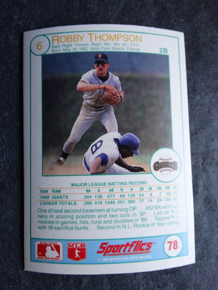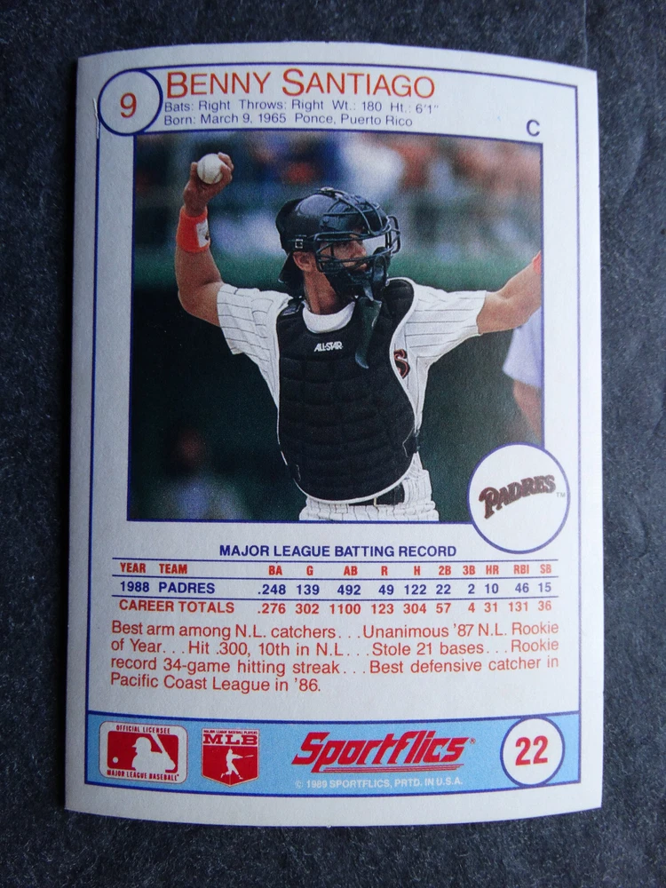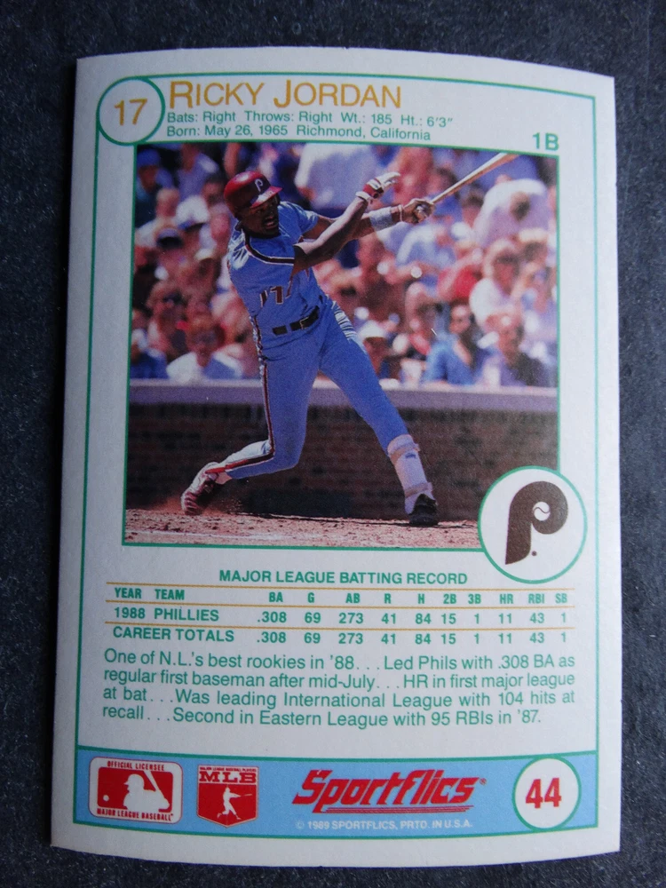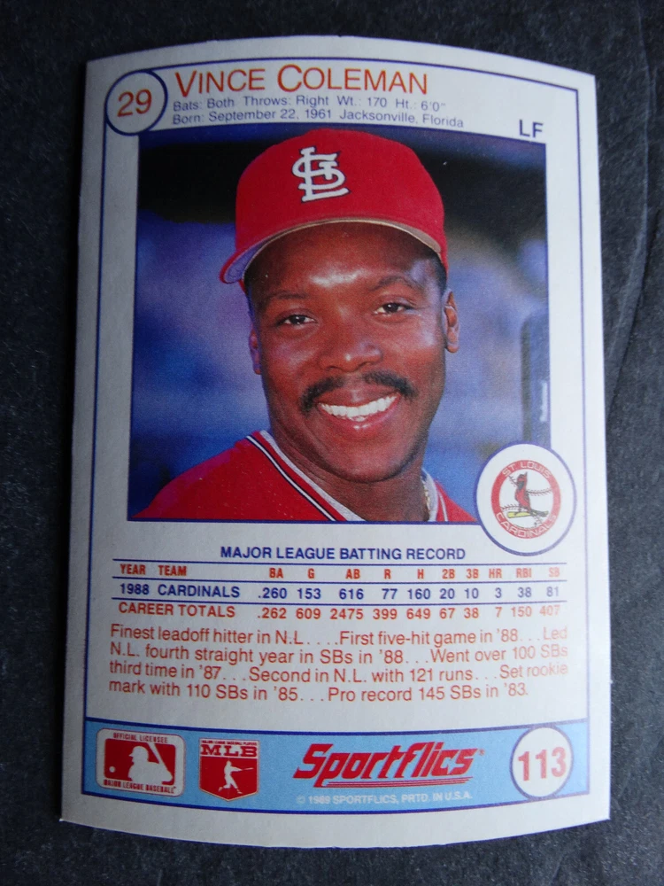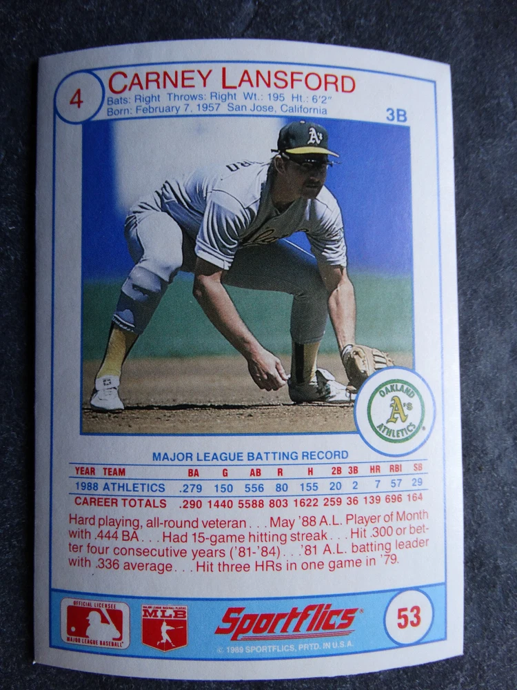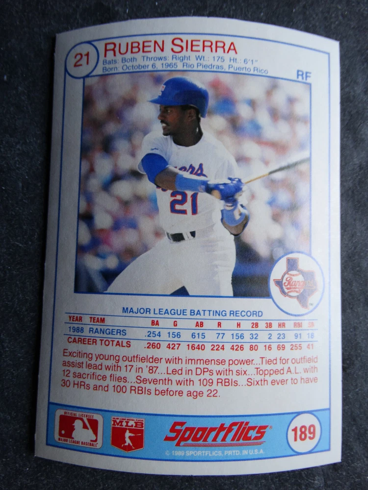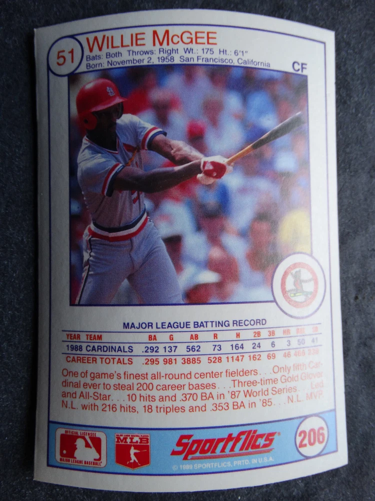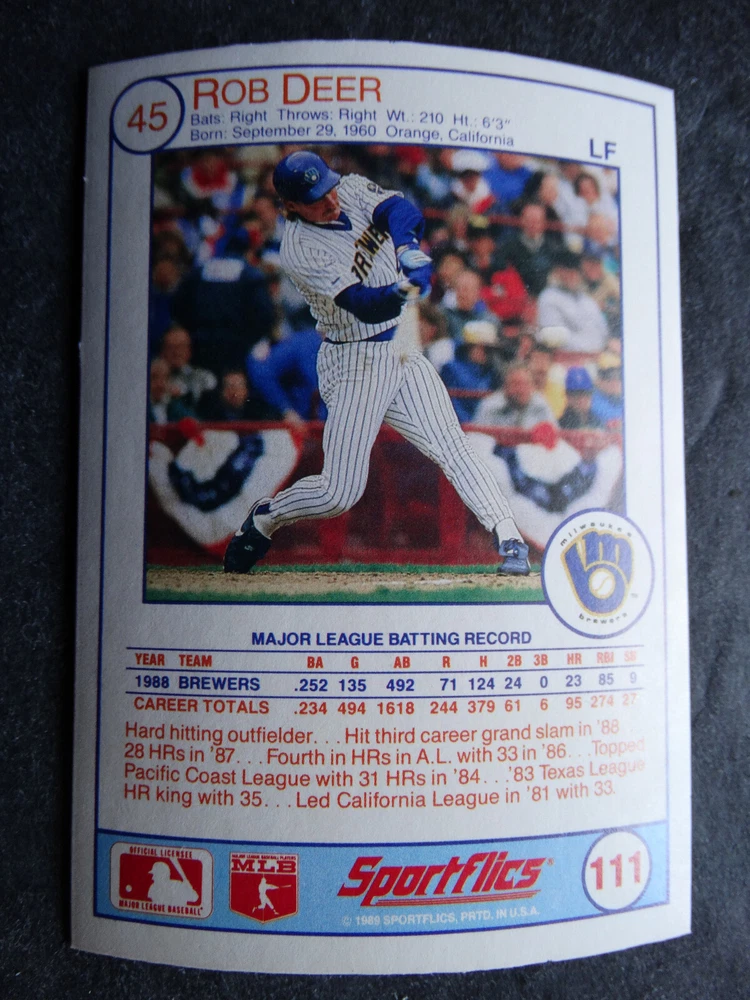 1989 Sportflics Baseball Cards Complete Your Set U Pick From List 1-225 *****The cards that don't show the front of the card have defects as shown in the pictures***** 1 Jose Canseco Oakland Athletics 2 Wally Joyner California Angels 3 Roger Clemens Boston Red Sox 4 Greg Swindell Cleveland Indians 5 Jack Morris Detroit Tigers 6 Mickey Brantley Seattle Mariners 7 Jim Presley Seattle Mariners 8 Pete O'Brien Texas Rangers 9 Jesse Barfield Toronto Blue Jays 10 Frank Viola Minnesota Twins 11 Kevin Bass Houston Astros 12 Glenn Wilson Seattle Mariners 13 Chris Sabo Cincinnati Reds 14 Fred McGriff Toronto Blue Jays 15 Mark Grace Chicago Cubs 16 Devon White California Angels 17 Juan Samuel Philadelphia Phillies 18 Lou Whitaker Detroit Tigers 19 Greg Walker Chicago White Sox 20 Roberto Alomar San Diego Padres 21 Mike Schmidt Philadelphia Phillies 22 Benny Santiago San Diego Padres 23 Dave Stewart Oakland Athletics 24 Dave Winfield New York Yankees 25 George Bell Toronto Blue Jays 26 Jack Clark New York Yankees 27 Doug Drabek Pittsburgh Pirates 28 Ron Gant Atlanta Braves 29 Glenn Braggs Milwaukee Brewers 30 Rafael Palmeiro Chicago Cubs 31 Brett Butler San Francisco Giants 32 Ron Darling New York Mets 33 Alvin Davis Seattle Mariners 34 Bob Walk Pittsburgh Pirates 35 Dave Stieb Toronto Blue Jays 36 Orel Hershiser Los Angeles Dodgers 37 John Farrell Cleveland Indians 38 Doug Jones Cleveland Indians 39 Kelly Downs San Francisco Giants 40 Bob Boone California Angels 41 Gary Sheffield Milwaukee Brewers 42 Doug Dascenzo Chicago Cubs 43 Chad Kreuter RC Texas Rangers 44 Ricky Jordan Philadelphia Phillies 45 Dave West New York Mets 46 Danny Tartabull Kansas City Royals 47 Teddy Higuera Milwaukee Brewers 48 Gary Gaetti Minnesota Twins 49 Dave Parker Oakland Athletics 50 Don Mattingly New York Yankees 51 David Cone New York Mets 52 Kal Daniels Cincinnati Reds 53 Carney Lansford Oakland Athletics 54 Mike Marshall Los Angeles Dodgers 55 Kevin Seitzer Kansas City Royals 56 Mike Henneman Detroit Tigers 57 Bill Doran Houston Astros 58 Steve Sax Los Angeles Dodgers 59 Lance Parrish Philadelphia Phillies 60 Keith Hernandez New York Mets 61 Jose Uribe San Francisco Giants 62 Jose Lind Pittsburgh Pirates 63 Steve Bedrosian Philadelphia Phillies 64 George Brett Kansas City Royals 65 Kirk Gibson Los Angeles Dodgers 66 Cal Ripken, Jr. Baltimore Orioles 67 Mitch Webster Chicago Cubs 68 Fred Lynn Baltimore Orioles 69 Eric Davis Cincinnati Reds 70 Bo Jackson Kansas City Royals 71 Kevin Elster New York Mets 72 Rick Reuschel San Francisco Giants 73 Tim Burke Montreal Expos 74 Mark Davis San Diego Padres 75 Claudell Washington New York Yankees 76 Lance McCullers San Diego Padres 77 Mike Moore Seattle Mariners 78 Robby Thompson San Francisco Giants 79 Roger McDowell New York Mets 80 Danny Jackson Cincinnati Reds 81 Tim Leary Los Angeles Dodgers 82 Bobby Witt Texas Rangers 83 Jim Gott Pittsburgh Pirates 84 Andy Hawkins San Diego Padres 85 Ozzie Guillen Chicago White Sox 86 John Tudor Los Angeles Dodgers 87 Todd Burns RC Oakland Athletics 88 Dave Gallagher Chicago White Sox 89 Jay Buhner Seattle Mariners 90 Gregg Jefferies New York Mets 91 Bob Welch Oakland Athletics 92 Charlie Hough Texas Rangers 93 Tony Fernandez Toronto Blue Jays 94 Ozzie Virgil Atlanta Braves 95 Andre Dawson Chicago Cubs 96 Hubie Brooks Montreal Expos 97 Kevin McReynolds New York Mets 98 Mike LaValliere Pittsburgh Pirates 99 Terry Pendleton St. Louis Cardinals 100 Wade Boggs Boston Red Sox 101 Dennis Eckersley Oakland Athletics 102 Mark Gubicza Kansas City Royals 103 Frank Tanana Detroit Tigers 104 Joe Carter Cleveland Indians 105 Ozzie Smith St. Louis Cardinals 106 Dennis Martinez Montreal Expos 107 Jeff Treadway Cincinnati Reds 108 Greg Maddux Chicago Cubs 109 Bret Saberhagen Kansas City Royals 110 Dale Murphy Atlanta Braves 111 Rob Deer Milwaukee Brewers 112 Pete Incaviglia Texas Rangers 113 Vince Coleman St. Louis Cardinals 114 Tim Wallach Montreal Expos 115 Nolan Ryan Houston Astros 116 Walt Weiss Oakland Athletics 117 Brian Downing California Angels 118 Melido Perez Chicago White Sox 119 Terry Steinbach Oakland Athletics 120 Mike Scott Houston Astros 121 Tim Belcher Los Angeles Dodgers 122 Mike Boddicker Boston Red Sox 123 Lenny Dykstra New York Mets 124 Fernando Valenzuela Los Angeles Dodgers 125 Gerald Young Houston Astros 126 Tom Henke Toronto Blue Jays 127 Dave Henderson Oakland Athletics 128 Dan Plesac Milwaukee Brewers 129 Chili Davis California Angels 130 Bryan Harvey California Angels 131 Don August Milwaukee Brewers 132 Mike Harkey Chicago Cubs 133 Luis Polonia Oakland Athletics 134 Craig Worthington RC Baltimore Orioles 135 Joey Meyer Milwaukee Brewers 136 Barry Larkin Cincinnati Reds 137 Glenn Davis Houston Astros 138 Mike Scioscia Los Angeles Dodgers 139 Andres Galarraga Montreal Expos 140 Dwight Gooden New York Mets 141 Keith Moreland San Diego Padres 142 Kevin Mitchell San Francisco Giants 143 Mike Greenwell Boston Red Sox 144 Mel Hall Cleveland Indians 145 Rickey Henderson New York Yankees 146 Barry Bonds Pittsburgh Pirates 147 Eddie Murray Baltimore Orioles 148 Lee Smith Boston Red Sox 149 Julio Franco Cleveland Indians 150 Tim Raines Montreal Expos 151 Mitch Williams Texas Rangers 152 Tim Laudner Minnesota Twins 153 Mike Pagliarulo New York Yankees 154 Floyd Bannister Kansas City Royals 155 Gary Carter New York Mets 156 Kirby Puckett Minnesota Twins 157 Harold Baines Chicago White Sox 158 Dave Righetti New York Yankees 159 Mark Langston Seattle Mariners 160 Tony Gwynn San Diego Padres 161 Tom Brunansky St. Louis Cardinals 162 Vance Law Chicago Cubs 163 Kelly Gruber Toronto Blue Jays 164 Gerald Perry Atlanta Braves 165 Harold Reynolds Seattle Mariners 166 Andy Van Slyke Pittsburgh Pirates 167 Jimmy Key Toronto Blue Jays 168 Jeff Reardon Minnesota Twins 169 Milt Thompson Philadelphia Phillies 170 Will Clark San Francisco Giants 171 Chet Lemon Detroit Tigers 172 Pat Tabler Kansas City Royals 173 Jim Rice Boston Red Sox 174 Billy Hatcher Hou