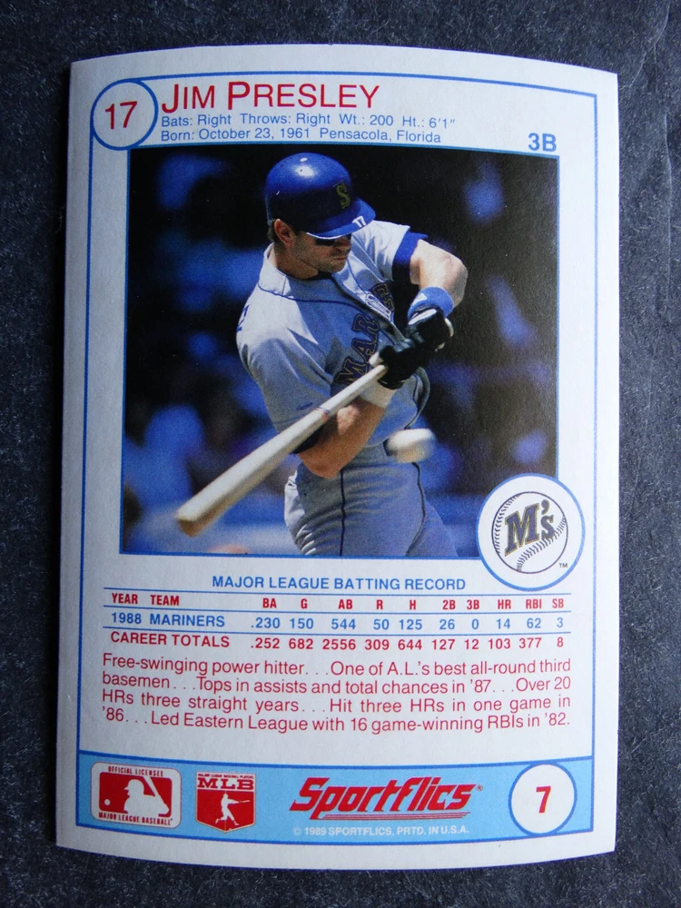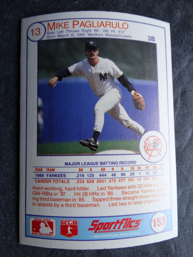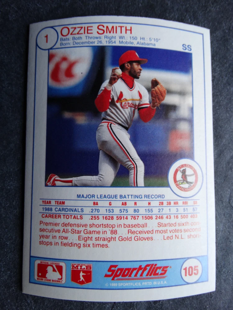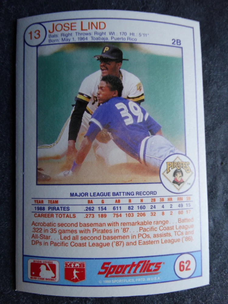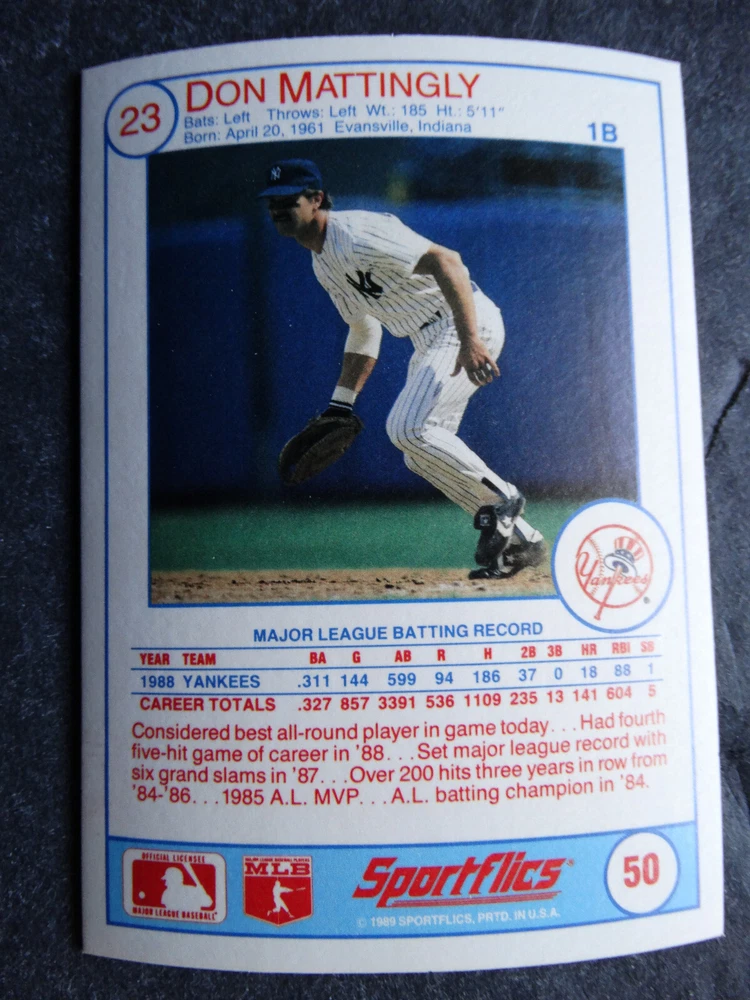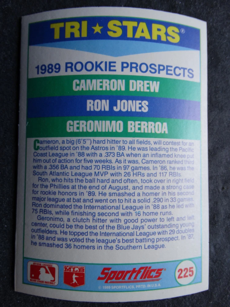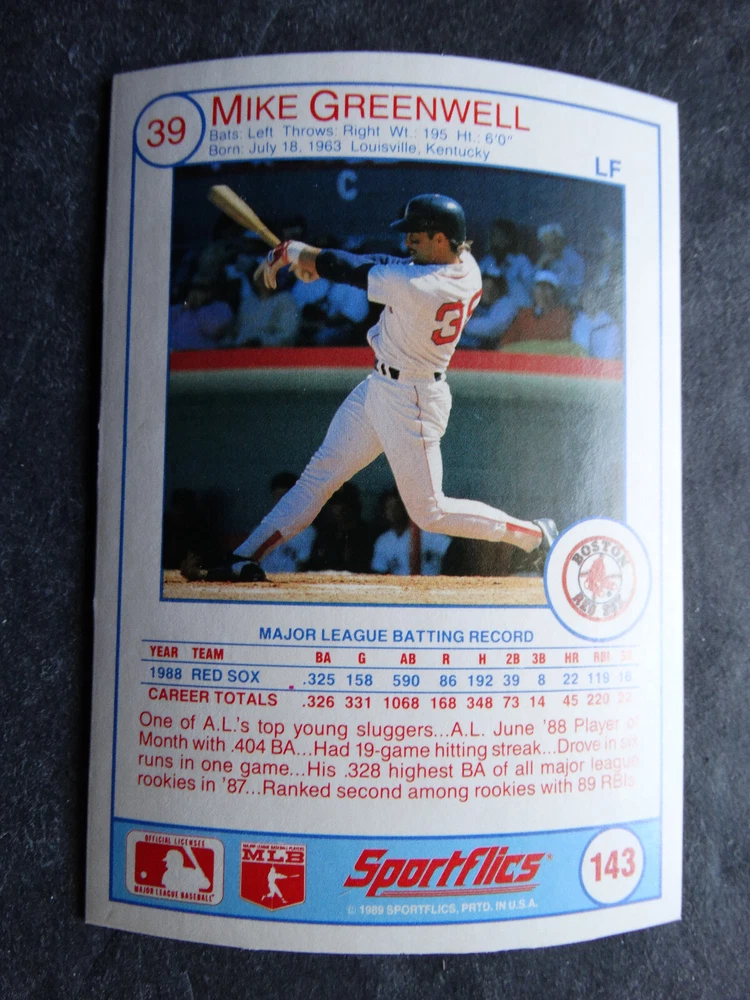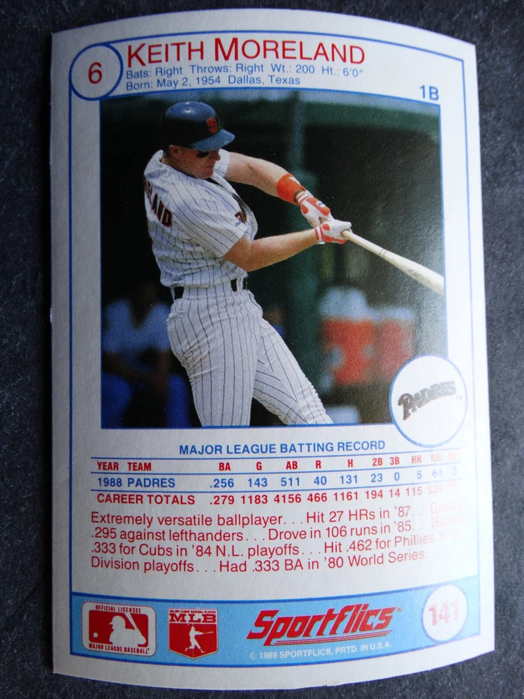 1989 Sportflics Baseball Cards Complete Your Set U Pick From List 1-225 *****The cards that don't show the front of the card have defects as shown in the pictures***** 1 Jose Canseco Oakland Athletics 2 Wally Joyner California Angels 3 Roger Clemens Boston Red Sox 4 Greg Swindell Cleveland Indians 5 Jack Morris Detroit Tigers 6 Mickey Brantley Seattle Mariners 7 Jim Presley Seattle Mariners 8 Pete O'Brien Texas Rangers 9 Jesse Barfield Toronto Blue Jays 10 Frank Viola Minnesota Twins 11 Kevin Bass Houston Astros 12 Glenn Wilson Seattle Mariners 13 Chris Sabo Cincinnati Reds 14 Fred McGriff Toronto Blue Jays 15 Mark Grace Chicago Cubs 16 Devon White California Angels 17 Juan Samuel Philadelphia Phillies 18 Lou Whitaker Detroit Tigers 19 Greg Walker Chicago White Sox 20 Roberto Alomar San Diego Padres 21 Mike Schmidt Philadelphia Phillies 22 Benny Santiago San Diego Padres 23 Dave Stewart Oakland Athletics 24 Dave Winfield New York Yankees 25 George Bell Toronto Blue Jays 26 Jack Clark New York Yankees 27 Doug Drabek Pittsburgh Pirates 28 Ron Gant Atlanta Braves 29 Glenn Braggs Milwaukee Brewers 30 Rafael Palmeiro Chicago Cubs 31 Brett Butler San Francisco Giants 32 Ron Darling New York Mets 33 Alvin Davis Seattle Mariners 34 Bob Walk Pittsburgh Pirates 35 Dave Stieb Toronto Blue Jays 36 Orel Hershiser Los Angeles Dodgers 37 John Farrell Cleveland Indians 38 Doug Jones Cleveland Indians 39 Kelly Downs San Francisco Giants 40 Bob Boone California Angels 41 Gary Sheffield Milwaukee Brewers 42 Doug Dascenzo Chicago Cubs 43 Chad Kreuter RC Texas Rangers 44 Ricky Jordan Philadelphia Phillies 45 Dave West New York Mets 46 Danny Tartabull Kansas City Royals 47 Teddy Higuera Milwaukee Brewers 48 Gary Gaetti Minnesota Twins 49 Dave Parker Oakland Athletics 50 Don Mattingly New York Yankees 51 David Cone New York Mets 52 Kal Daniels Cincinnati Reds 53 Carney Lansford Oakland Athletics 54 Mike Marshall Los Angeles Dodgers 55 Kevin Seitzer Kansas City Royals 56 Mike Henneman Detroit Tigers 57 Bill Doran Houston Astros 58 Steve Sax Los Angeles Dodgers 59 Lance Parrish Philadelphia Phillies 60 Keith Hernandez New York Mets 61 Jose Uribe San Francisco Giants 62 Jose Lind Pittsburgh Pirates 63 Steve Bedrosian Philadelphia Phillies 64 George Brett Kansas City Royals 65 Kirk Gibson Los Angeles Dodgers 66 Cal Ripken, Jr. Baltimore Orioles 67 Mitch Webster Chicago Cubs 68 Fred Lynn Baltimore Orioles 69 Eric Davis Cincinnati Reds 70 Bo Jackson Kansas City Royals 71 Kevin Elster New York Mets 72 Rick Reuschel San Francisco Giants 73 Tim Burke Montreal Expos 74 Mark Davis San Diego Padres 75 Claudell Washington New York Yankees 76 Lance McCullers San Diego Padres 77 Mike Moore Seattle Mariners 78 Robby Thompson San Francisco Giants 79 Roger McDowell New York Mets 80 Danny Jackson Cincinnati Reds 81 Tim Leary Los Angeles Dodgers 82 Bobby Witt Texas Rangers 83 Jim Gott Pittsburgh Pirates 84 Andy Hawkins San Diego Padres 85 Ozzie Guillen Chicago White Sox 86 John Tudor Los Angeles Dodgers 87 Todd Burns RC Oakland Athletics 88 Dave Gallagher Chicago White Sox 89 Jay Buhner Seattle Mariners 90 Gregg Jefferies New York Mets 91 Bob Welch Oakland Athletics 92 Charlie Hough Texas Rangers 93 Tony Fernandez Toronto Blue Jays 94 Ozzie Virgil Atlanta Braves 95 Andre Dawson Chicago Cubs 96 Hubie Brooks Montreal Expos 97 Kevin McReynolds New York Mets 98 Mike LaValliere Pittsburgh Pirates 99 Terry Pendleton St. Louis Cardinals 100 Wade Boggs Boston Red Sox 101 Dennis Eckersley Oakland Athletics 102 Mark Gubicza Kansas City Royals 103 Frank Tanana Detroit Tigers 104 Joe Carter Cleveland Indians 105 Ozzie Smith St. Louis Cardinals 106 Dennis Martinez Montreal Expos 107 Jeff Treadway Cincinnati Reds 108 Greg Maddux Chicago Cubs 109 Bret Saberhagen Kansas City Royals 110 Dale Murphy Atlanta Braves 111 Rob Deer Milwaukee Brewers 112 Pete Incaviglia Texas Rangers 113 Vince Coleman St. Louis Cardinals 114 Tim Wallach Montreal Expos 115 Nolan Ryan Houston Astros 116 Walt Weiss Oakland Athletics 117 Brian Downing California Angels 118 Melido Perez Chicago White Sox 119 Terry Steinbach Oakland Athletics 120 Mike Scott Houston Astros 121 Tim Belcher Los Angeles Dodgers 122 Mike Boddicker Boston Red Sox 123 Lenny Dykstra New York Mets 124 Fernando Valenzuela Los Angeles Dodgers 125 Gerald Young Houston Astros 126 Tom Henke Toronto Blue Jays 127 Dave Henderson Oakland Athletics 128 Dan Plesac Milwaukee Brewers 129 Chili Davis California Angels 130 Bryan Harvey California Angels 131 Don August Milwaukee Brewers 132 Mike Harkey Chicago Cubs 133 Luis Polonia Oakland Athletics 134 Craig Worthington RC Baltimore Orioles 135 Joey Meyer Milwaukee Brewers 136 Barry Larkin Cincinnati Reds 137 Glenn Davis Houston Astros 138 Mike Scioscia Los Angeles Dodgers 139 Andres Galarraga Montreal Expos 140 Dwight Gooden New York Mets 141 Keith Moreland San Diego Padres 142 Kevin Mitchell San Francisco Giants 143 Mike Greenwell Boston Red Sox 144 Mel Hall Cleveland Indians 145 Rickey Henderson New York Yankees 146 Barry Bonds Pittsburgh Pirates 147 Eddie Murray Baltimore Orioles 148 Lee Smith Boston Red Sox 149 Julio Franco Cleveland Indians 150 Tim Raines Montreal Expos 151 Mitch Williams Texas Rangers 152 Tim Laudner Minnesota Twins 153 Mike Pagliarulo New York Yankees 154 Floyd Bannister Kansas City Royals 155 Gary Carter New York Mets 156 Kirby Puckett Minnesota Twins 157 Harold Baines Chicago White Sox 158 Dave Righetti New York Yankees 159 Mark Langston Seattle Mariners 160 Tony Gwynn San Diego Padres 161 Tom Brunansky St. Louis Cardinals 162 Vance Law Chicago Cubs 163 Kelly Gruber Toronto Blue Jays 164 Gerald Perry Atlanta Braves 165 Harold Reynolds Seattle Mariners 166 Andy Van Slyke Pittsburgh Pirates 167 Jimmy Key Toronto Blue Jays 168 Jeff Reardon Minnesota Twins 169 Milt Thompson Philadelphia Phillies 170 Will Clark San Francisco Giants 171 Chet Lemon Detroit Tigers 172 Pat Tabler Kansas City Royals 173 Jim Rice Boston Red Sox 174 Billy Hatcher Hou