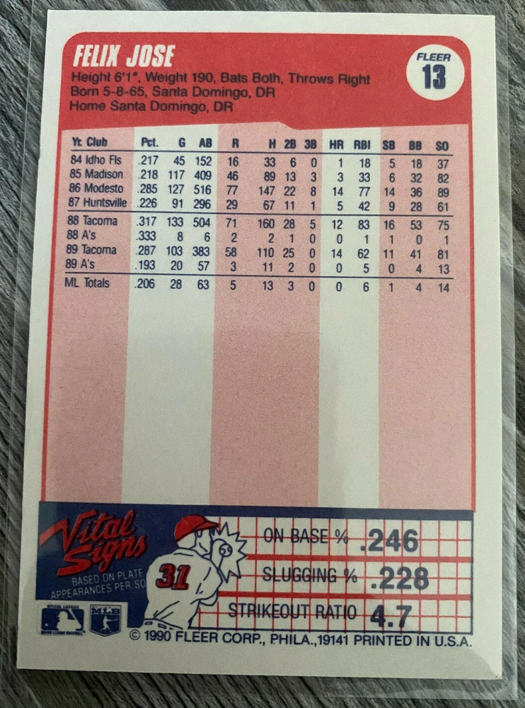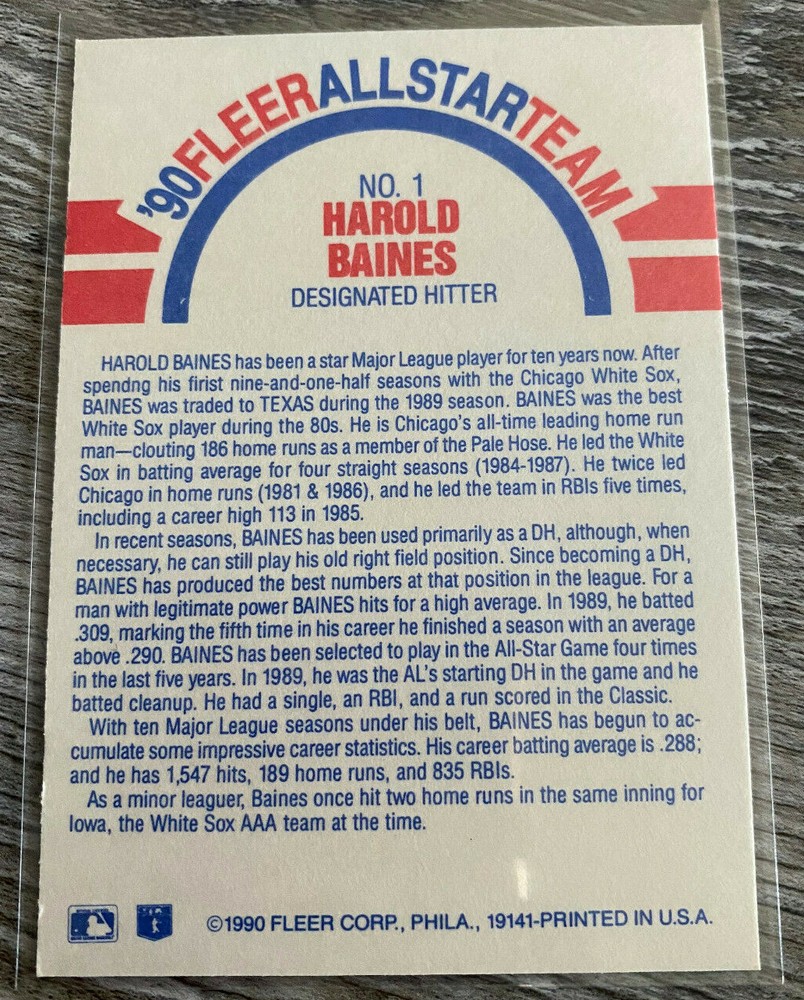 1990 Fleer Baseball Cards MLB Sports Trading Cards PLEASE READ BEFORE BUYING Pack fresh pulls. $2 MINIMUM PURCHASE FOR FREE SHIPPING within the USA. If you are purchasing multiples, add to cart prior to purchasing for multi-card discount. Can be combined with my other card listings with the same offer. Please check out the rest of my eBay store if you want to combine cards from other sets. All Star Team 1 Harold Baines Base 1 Lance Blankenship 5 Storm Davis 6 Dennis Eckersley 13 Felix Jose 22 Walt Weiss 29 Andre Dawson 32 Mark Grace 33 Mike Harkey 49 Steve Wilson 60 Craig Lefferts 62 Candy Maldonado 64 Randy McCament 87 Nelson Liriano 98 Frank Wills 106 Jim Eisenreich 117 Kevin Seitzer 120 Danny Tartabull 123 Willie Wilson 134 Bryan Harvey 143 Johnny Ray 148 Mike Witt 157 Tony Gwynn 161 Chris James 165 Dennis Rasmussen 175 Mike Devereaux 215 Juan Samuel 216 Mackey Sasser 222 Eric Anthony 237 Mike Scott 243 Cris Carpenter 264 Todd Worrell 271 Roger Clemens 272 John Dopson 280 Dennis Lamp 281 Rob Murphy 283 Carlos Quintana 287 Lee Smith 293 Scott Coolbaugh 297 Juan Gonzalez 306 Fred Manrique 308 Rafael Palmeiro 311 Kenny Rogers 317 Glenn Braggs 320 Rob Deer 327 Mark Knudson 340 Robin Yount 343 Mike Fitzgerald 345 Andres Galarraga 358 Pascual Perez 376 German Gonzalez 378 Kent Hrbek 381 John Moses 390 Tim Crews 392 Rick Dempsey 420 Ken Griffey 428 Luis Quinones 442 Bob Geren 476 Gary Redus 482 Bob Walk 490 Dave Clark 491 John Farrell 507 Greg Briley 508 Jay Buhner 509 Darnell Coles 518 Randy Johnson 520 Edgar Martinez 531 Scott Fletcher 546 Melido Perez 556 Lenny Dykstra 557 Curt Ford 558 Charlie Hayes 591 Dale Murphy 596 Mike Stanton 603 Mike Heath 605 Guillermo Hernandez 611 Matt Nokes 619 Lou Whitaker 626 Don Mattingly - Players of the Decade 627 Roger Clemens - Players of the Decade 635 Kirby Puckett & Bo Jackson - Human Dynamos 645 Mike Roesler & Derrick May 654 Checklist Refer to the pictures for condition specifics. Authentic. Choose your card. Complete your set. This items will be shipped with packaging protection to prevent the items from getting damaged during transit. There are no returns, cancellations, and/or refunds unless I am unable to fulfill your order. I will only ship to your verified address for the protection of both parties. This means no changing your address after ordering. If you are an international buyer, you are responsible for the international shipping cost and any import charges, if applicable. Feedback will be left as soon as one is received. Free local pickup. Items will be shipped within 1 business day after receiving cleared payment. Will take to carrier the same day if purchased before 11AM EST Monday-Friday. If you have any questions, do not hesitate to reach out. I usually reply very quickly. Buy with confidence. Thank you and have a great day.