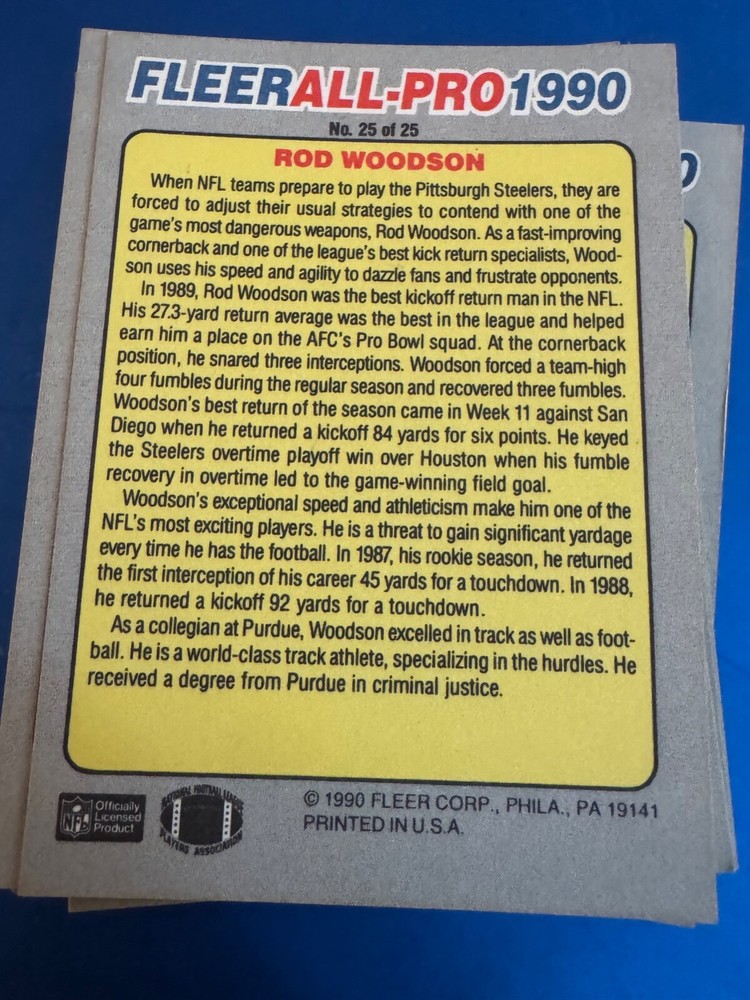 1990 Fleer All Pro Insert Cards - You pick from the list of the 25 card set. Cards are generally nm or better with no major defects. $1 envelope shipping for as many cards as you purchase.