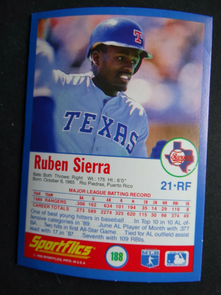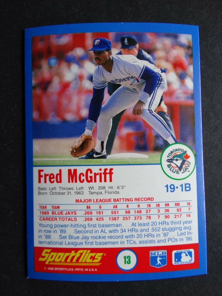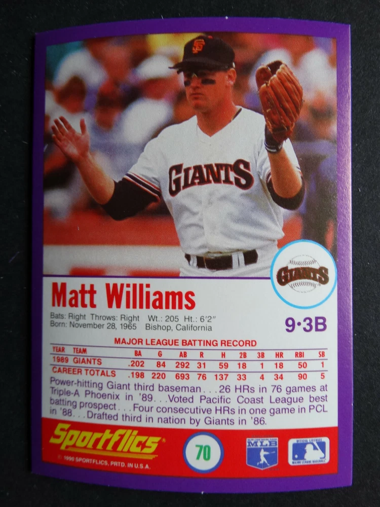 1990 Sportflics Baseball Cards Complete Your Set U Pick From List 1-225 1 Kevin Mitchell San Francisco Giants 2 Wade Boggs Boston Red Sox 3 Cory Snyder Cleveland Indians 4 Paul O'Neill Cincinnati Reds 5 Will Clark San Francisco Giants 6 Tony Fernandez Toronto Blue Jays 7 Ken Griffey Jr. Seattle Mariners 8 Nolan Ryan Texas Rangers 9 Rafael Palmeiro Texas Rangers 10 Jesse Barfield New York Yankees 11 Kirby Puckett Minnesota Twins 12 Steve Sax New York Yankees 13 Fred McGriff Toronto Blue Jays 14 Gregg Jefferies New York Mets 15 Mark Grace Chicago Cubs 16 Ozzie Smith St. Louis Cardinals 17 George Bell Toronto Blue Jays 18 Robin Yount Milwaukee Brewers 19 Glenn Davis Houston Astros 20 Jeffrey Leonard Seattle Mariners 21 Chili Davis California Angels 22 Craig Biggio Houston Astros 23 Jose Canseco Oakland Athletics 24 Derek Lilliquist Atlanta Braves 25 Chris Bosio Milwaukee Brewers 26 Dave Stieb Toronto Blue Jays 27 Bobby Thigpen Chicago White Sox 28 Jack Clark San Diego Padres 29 Kevin Ritz Detroit Tigers 30 Tom Gordon Kansas City Royals 31 Bryan Harvey California Angels 32 Jim Deshaies Houston Astros 33 Terry Steinbach Oakland Athletics 34 Tom Glavine Atlanta Braves 35 Bob Welch Oakland Athletics 36 Charlie Hayes Philadelphia Phillies 37 Jeff Reardon Minnesota Twins 38 Joe Orsulak Baltimore Orioles 39 Scott Garrelts San Francisco Giants 40 Bob Boone Kansas City Royals 41 Scott Bankhead Seattle Mariners 42 Tom Henke Toronto Blue Jays 43 Greg Briley Seattle Mariners 44 Teddy Higuera Milwaukee Brewers 45 Pat Borders Toronto Blue Jays 46 Kevin Seitzer Kansas City Royals 47 Bruce Hurst San Diego Padres 48 Ozzie Guillen Chicago White Sox 49 Wally Joyner California Angels 50 Mike Greenwell Boston Red Sox 51 Gary Gaetti Minnesota Twins 52 Gary Sheffield Milwaukee Brewers 53 Dennis Martinez Montreal Expos 54 Ryne Sandberg Chicago Cubs 55 Mike Scott Houston Astros 56 Todd Benzinger Cincinnati Reds 57 Kelly Gruber Toronto Blue Jays 58 Jose Lind Pittsburgh Pirates 59 Allan Anderson Minnesota Twins 60 Robby Thompson San Francisco Giants 61 John Smoltz Atlanta Braves 62 Mark Davis San Diego Padres 63 Tom Herr Philadelphia Phillies 64 Randy Johnson Seattle Mariners 65 Lonnie Smith Atlanta Braves 66 Pedro Guerrero St. Louis Cardinals 67 Jerome Walton Chicago Cubs 68 Ramon Martinez Los Angeles Dodgers 69 Tim Raines Montreal Expos 70 Matt Williams San Francisco Giants 71 Joe Oliver Cincinnati Reds 72 Nick Esasky Boston Red Sox 73 Kevin Brown Texas Rangers 74 Walt Weiss Oakland Athletics 75 Roger McDowell Philadelphia Phillies 76 Jose DeLeon St. Louis Cardinals 77 Brian Downing California Angels 78 Jay Howell Los Angeles Dodgers 79 Jose Uribe San Francisco Giants 80 Ellis Burks Boston Red Sox 81 Sammy Sosa Chicago White Sox 82 Johnny Ray California Angels 83 Danny Darwin Houston Astros 84 Carney Lansford Oakland Athletics 85 Jose Oquendo St. Louis Cardinals 86 John Cerutti Toronto Blue Jays 87 Dave Winfield New York Yankees 88 Dave Righetti New York Yankees 89 Danny Jackson Cincinnati Reds 90 Andy Benes San Diego Padres 91 Tom Browning Cincinnati Reds 92 Pete O'Brien Cleveland Indians 93 Roberto Alomar San Diego Padres 94 Bret Saberhagen Kansas City Royals 95 Phil Bradley Baltimore Orioles 96 Doug Jones Cleveland Indians 97 Eric Davis Cincinnati Reds 98 Tony Gwynn San Diego Padres 99 Jim Abbott California Angels 100 Cal Ripken Jr. Baltimore Orioles 101 Andy Van Slyke Pittsburgh Pirates 102 Dan Plesac Milwaukee Brewers 103 Lou Whitaker Detroit Tigers 104 Steve Bedrosian San Francisco Giants 105 Dave Gallagher Chicago White Sox 106 Keith Hernandez New York Mets 107 Duane Ward Toronto Blue Jays 108 Andre Dawson Chicago Cubs 109 Howard Johnson New York Mets 110 Mark Langston Montreal Expos 111 Jerry Browne Cleveland Indians 112 Alvin Davis Seattle Mariners 113 Sid Fernandez New York Mets 114 Mike Devereaux Baltimore Orioles 115 Benito Santiago San Diego Padres 116 Bip Roberts San Diego Padres 117 Craig Worthington Baltimore Orioles 118 Kevin Elster New York Mets 119 Harold Reynolds Seattle Mariners 120 Joe Carter Cleveland Indians 121 Brian Harper Minnesota Twins 122 Frank Viola New York Mets 123 Jeff Ballard Baltimore Orioles 124 John Kruk Philadelphia Phillies 125 Harold Baines Texas Rangers 126 Tom Candiotti Cleveland Indians 127 Kevin McReynolds New York Mets 128 Mookie Wilson Toronto Blue Jays 129 Danny Tartabull Kansas City Royals 130 Craig Lefferts San Francisco Giants 131 Jose DeJesus Kansas City Royals 132 John Orton California Angels 133 Curt Schilling Baltimore Orioles 134 Marquis Grissom Montreal Expos 135 Greg Vaughn Milwaukee Brewers 136 Brett Butler San Francisco Giants 137 Rob Deer Milwaukee Brewers 138 John Franco Cincinnati Reds 139 Keith Moreland Baltimore Orioles 140 Dave Smith Houston Astros 141 Mark McGwire Oakland Athletics 142 Vince Coleman St. Louis Cardinals 143 Barry Bonds Pittsburgh Pirates 144 Mike Henneman Detroit Tigers 145 Dwight Gooden New York Mets 146 Darryl Strawberry New York Mets 147 Von Hayes Philadelphia Phillies 148 Andres Galarraga Montreal Expos 149 Roger Clemens Boston Red Sox 150 Don Mattingly New York Yankees 151 Joe Magrane St. Louis Cardinals 152 Dwight Smith Chicago Cubs 153 Ricky Jordan Philadelphia Phillies 154 Alan Trammell Detroit Tigers 155 Brook Jacoby Cleveland Indians 156 Lenny Dykstra Philadelphia Phillies 157 Mike LaValliere Pittsburgh Pirates 158 Julio Franco Texas Rangers 159 Joey Belle Cleveland Indians 160 Barry Larkin Cincinnati Reds 161 Rick Reuschel San Francisco Giants 162 Nelson Santovenia Montreal Expos 163 Mike Scioscia Los Angeles Dodgers 164 Damon Berryhill Chicago Cubs 165 Todd Worrell St. Louis Cardinals 166 Jim Eisenreich Kansas City Royals 167 Ivan Calderon Chicago White Sox 168 Mauro Gozzo Toronto Blue Jays 169 Kirk McCaskill California Angels 170 Dennis Eckersley Oakland Athletics 171 Mickey Tettleton Baltimore Orioles 172 Chuck Finley California Angels 173 Dave Magadan New York Mets 174 Terry Pendleton St. Louis Cardinals 175 Willie Ran