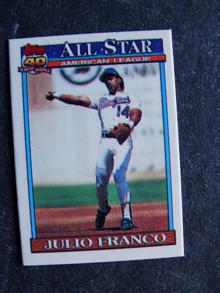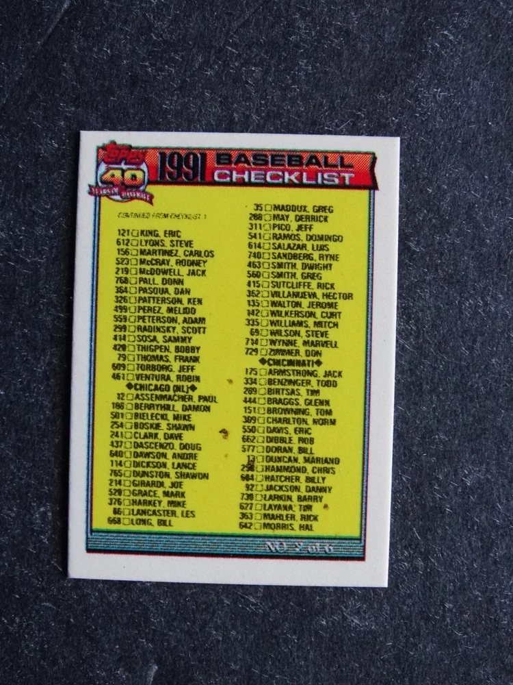 1991 Topps Micro Mini Baseball Cards Complete your Set You U Pick From List 201-400 *********Measures 1" Wide by 1 3/8" Tall. The 2nd Picture shows the size In Relation to a Quarter******* 201 Tom Kelly MGR Minnesota Twins 202 Jim Leyritz New York Yankees 203 Gene Harris Seattle Mariners 204 Herm Winningham Cincinnati Reds 205 Mike Perez RC St. Louis Cardinals 206 Carlos Quintana Boston Red Sox 207 Gary Wayne Minnesota Twins 208 Willie Wilson Kansas City Royals 209 Ken Howell Philadelphia Phillies 210 Lance Parrish California Angels 211 Brian Barnes RC, FS Montreal Expos 212 Steve Finley Baltimore Orioles 213 Frank Wills Toronto Blue Jays 214 Joe Girardi Chicago Cubs 215 Dave Smith Houston Astros 216 Greg Gagne Minnesota Twins 217 Chris Bosio Milwaukee Brewers 218 Rick Parker San Francisco Giants 219 Jack McDowell Chicago White Sox 220 Tim Wallach Montreal Expos 221 Don Slaught Pittsburgh Pirates 222 Brian McRae RC Kansas City Royals 223 Allan Anderson Minnesota Twins 224 Juan Gonzalez Texas Rangers 225 Randy Johnson Seattle Mariners 226 Alfredo Griffin Los Angeles Dodgers 227 Steve Avery Atlanta Braves 228 Rex Hudler St. Louis Cardinals 229 Rance Mulliniks Toronto Blue Jays 230 Sid Fernandez New York Mets 231 Doug Rader MGR California Angels 232 Jose DeJesus Philadelphia Phillies 233 Al Leiter Toronto Blue Jays 234 Scott Erickson Minnesota Twins 235 Dave Parker Milwaukee Brewers 236 Frank Tanana Detroit Tigers 237 Rick Cerone New York Yankees 238 Mike Dunne San Diego Padres 239 Darren Lewis Oakland Athletics 240 Mike Scott Houston Astros 241 Dave Clark Chicago Cubs 242 Mike LaCoss San Francisco Giants 243 Lance Johnson Chicago White Sox 244 Mike Jeffcoat Texas Rangers 245 Kal Daniels Los Angeles Dodgers 246 Kevin Wickander Cleveland Indians 247 Jody Reed Boston Red Sox 248 Tom Gordon Kansas City Royals 249 Bob Melvin Baltimore Orioles 250 Dennis Eckersley Oakland Athletics 251 Mark Lemke Atlanta Braves 252 Mel Rojas Montreal Expos 253 Garry Templeton San Diego Padres 254 Shawn Boskie Chicago Cubs 255 Brian Downing California Angels 256 Greg Hibbard Chicago White Sox 257 Tom O'Malley New York Mets 258 Chris Hammond Cincinnati Reds 259 Hensley Meulens New York Yankees 260 Harold Reynolds Seattle Mariners 261 Bud Harrelson MGR New York Mets 262 Tim Jones St. Louis Cardinals 263 Checklist #2 264 Dave Hollins Philadelphia Phillies 265 Mark Gubicza Kansas City Royals 266 Carmen Castillo Minnesota Twins 267 Mark Knudson Milwaukee Brewers 268 Tom Brookens Cleveland Indians 269 Joe Hesketh Boston Red Sox 270 Mark McGwire Oakland Athletics 271 Omar Olivares RC St. Louis Cardinals 272 Jeff King Pittsburgh Pirates 273 Johnny Ray California Angels 274 Kenny Williams Toronto Blue Jays 275 Alan Trammell Detroit Tigers 276 Bill Swift Seattle Mariners 277 Scott Coolbaugh Texas Rangers 278 Alex Fernandez Chicago White Sox 279 Jose Gonzalez Los Angeles Dodgers 280 Bret Saberhagen Kansas City Royals 281 Larry Sheets Detroit Tigers 282 Don Carman Philadelphia Phillies 283 Marquis Grissom Montreal Expos 284 Bill Spiers Milwaukee Brewers 285 Jim Abbott California Angels 286 Ken Oberkfell Houston Astros 287 Mark Grant Atlanta Braves 288 Derrick May Chicago Cubs 289 Tim Birtsas Cincinnati Reds 290 Steve Sax New York Yankees 291 John Wathan MGR Kansas City Royals 292 Bud Black Toronto Blue Jays 293 Jay Bell Pittsburgh Pirates 294 Mike Moore Oakland Athletics 295 Rafael Palmeiro Texas Rangers 296 Mark Williamson Baltimore Orioles 297 Manny Lee Toronto Blue Jays 298 Omar Vizquel Seattle Mariners 299 Scott Radinsky ASR Chicago White Sox 300 Kirby Puckett Minnesota Twins 301 Steve Farr Kansas City Royals 302 Tim Teufel New York Mets 303 Mike Boddicker Boston Red Sox 304 Kevin Reimer Texas Rangers 305 Mike Scioscia Los Angeles Dodgers 306 Lonnie Smith Atlanta Braves 307 Andy Benes San Diego Padres 308 Tom Pagnozzi St. Louis Cardinals 309 Norm Charlton Cincinnati Reds 310 Gary Carter San Francisco Giants 311 Jeff Pico Chicago Cubs 312 Charlie Hayes Philadelphia Phillies 313 Ron Robinson Milwaukee Brewers 314 Gary Pettis Texas Rangers 315 Roberto Alomar San Diego Padres 316 Gene Nelson Oakland Athletics 317 Mike Fitzgerald Montreal Expos 318 Rick Aguilera Minnesota Twins 319 Jeff McKnight Baltimore Orioles 320 Tony Fernandez Toronto Blue Jays 321 Bob Rodgers MGR Montreal Expos 322 Terry Shumpert Kansas City Royals 323 Cory Snyder Cleveland Indians 324 Ron Kittle Baltimore Orioles 325 Brett Butler San Francisco Giants 326 Ken Patterson Chicago White Sox 327 Ron Hassey Oakland Athletics 328 Walt Terrell Detroit Tigers 329 David Justice ASR Atlanta Braves 330 Doc Gooden New York Mets 331 Eric Anthony Houston Astros 332 Kenny Rogers Texas Rangers 333 Chipper Jones RC Atlanta Braves 334 Todd Benzinger Cincinnati Reds 335 Mitch Williams Chicago Cubs 336 Matt Nokes New York Yankees 337 Keith Comstock Seattle Mariners 338 Luis Rivera Boston Red Sox 339 Larry Walker ASR Montreal Expos 340 Ramon Martinez Los Angeles Dodgers 341 John Moses Minnesota Twins 342 Mickey Morandini Philadelphia Phillies 343 Jose Oquendo St. Louis Cardinals 344 Jeff Russell Texas Rangers 345 Lenny Dykstra Philadelphia Phillies 346 Jesse Orosco Cleveland Indians 347 Greg Vaughn Milwaukee Brewers 348 Todd Stottlemyre Toronto Blue Jays 349 Dave Gallagher Baltimore Orioles 350 Glenn Davis Houston Astros 351 Joe Torre MGR St. Louis Cardinals 352 Frank White Kansas City Royals 353 Tony Castillo Atlanta Braves 354 Sid Bream Pittsburgh Pirates 355 Chili Davis California Angels 356 Mike A. Marshall Boston Red Sox 357 Jack Savage Minnesota Twins 358 Mark Parent San Diego Padres 359 Chuck Cary New York Yankees 360 Rock Raines Montreal Expos 361 Scott Garrelts San Francisco Giants 362 Hector Villanueva Chicago Cubs 363 Rick Mahler Cincinnati Reds 364 Dan Pasqua Chicago White Sox 365 Mike Schooler Seattle Mariners 366 Checklist #3 367 Dave Walsh RC Los Angeles Dodgers 368 Felix Jose ASR St. Louis Cardinals 369 Steve Searcy Detroit Tigers 370 Kelly Gruber Toronto Blu