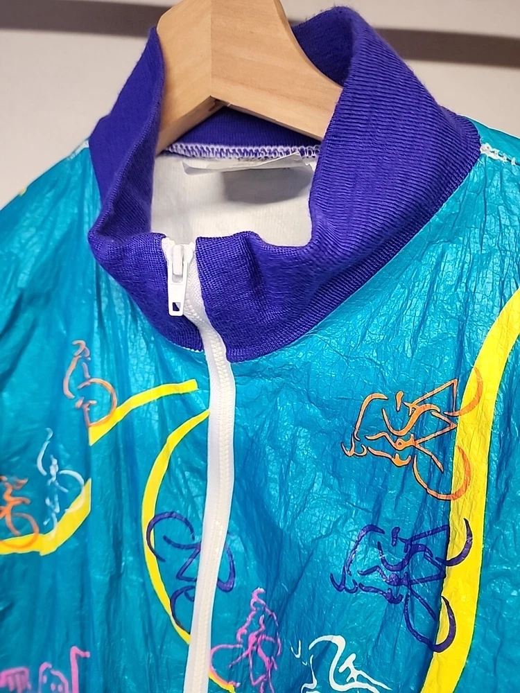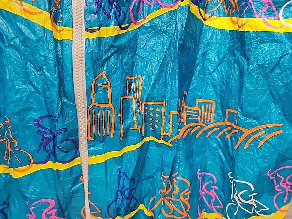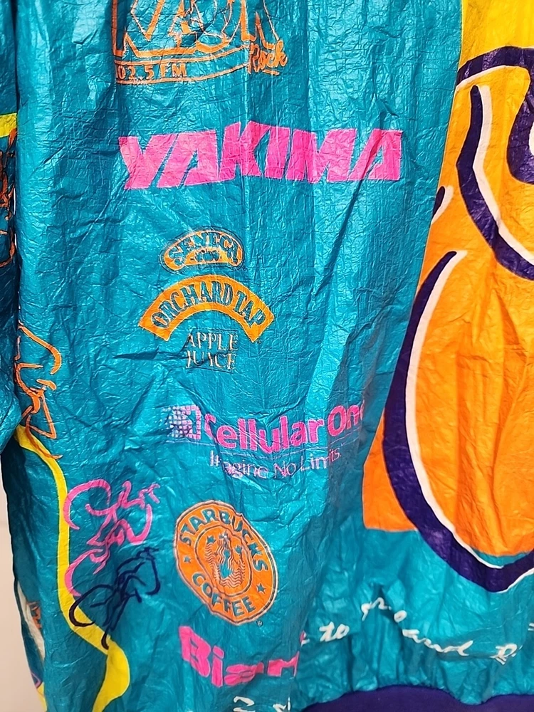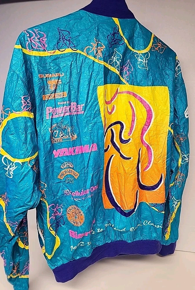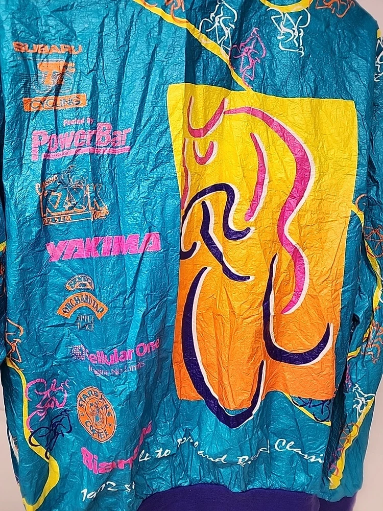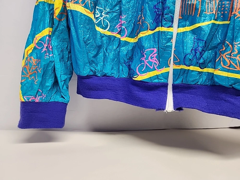Good clean conditon, fully functional, nice cycling jacket, works good, nice vintage early 90s style, featuring the seattle and portland slyline and cool 90s cycling graphocs, as seen see photos!