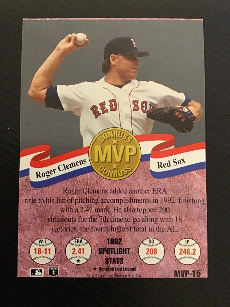 1993 Donruss - MVP’s #MVP-15 Roger Clemens - Boston Red Sox Inserted one per jumbo pack.