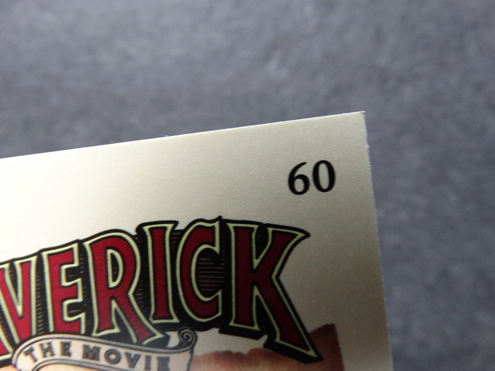 1994 Cardz Maverick Movie Trading Card Complete Your Set You U Pick 1-60 1 Bret Maverick 2 Zane Cooper 3 Annabelle Bransford 4 Joseph 5 Angel 6 With the sound of thunder 7 Mavericks' problems started 8 After living up to his promise 9 Before Angel can clobber 10 After single-handedly beating 11 In his never-ending attempt 12 Some days, nothing goes 13 After losing his thousand 14 While the argument over the 15 After two days of irritating 16 With "Coop" and Annabelle 17 The runawsay stage has 18 After the stage ride of his 19 Just what they DIDN"T NEED 20 In spite of what the wagon 21 Just as he thought. 22 With "six-to-one" odds 23 Using every bullet he has 24 With the robbers positively 25 Just like I told you. 26 The fierce leader of this band 27 In spite of what everyone else 28 With Maverick still short 29 Meanwhile....back in Crystal 30 On his way to the big poker 31 This is where our story began 32 Escaping the Angel again 33 With Annabelle, Maverick 34 Having Zane Cooper as 35 The man responsible for this 36 As the hours go by on the 37 With Annabelle out of the 38 Coop is too fast for the 39 With the (up until now) honest 40 Somewhere, deep in the woods 41 With Maverick in control 42 Mel Gibson - Bret Maverick 43 James Garner - Zane Cooper 44 Jodie Foster - Annabelle Bransford 45 Richard Donner - Producer/Director 46 Since Mel Gibson spent several 47 Getting Maverick to "sound" like 48 Making movies can be a "dirty" 49 In an adventure/comedy such as 50 Maverick - The Movie Checklist 51 What actor played in BOTH SP 52 On his way to the big poker SP 53 Upon meeting Zane Cooper SP 54 When Coop makes his unexpected SP 55 Bret Maverick's Indian friend SP 56 In the big, "All River" poker SP 57 What well-known country singer SP 58 What article of Maverick's clothing SP 59 How much does it cost each SP 60 What makes Annabelle think SP International Shipping - items may be subject to customs processing depending on the item's declared value. Sellers set the item's declared value and must comply with customs declaration laws. As the buyer, you should be aware of possible: - delays from customs inspection. - import duties and taxes which buyers must pay. - brokerage fees payable at the point of delivery. Your country's customs office can offer more details, or visit eBay's page on international trade .