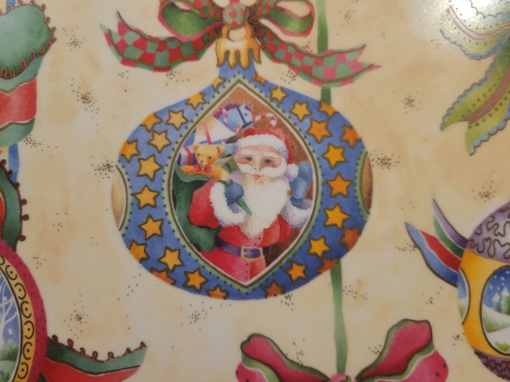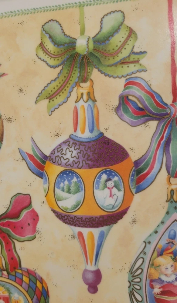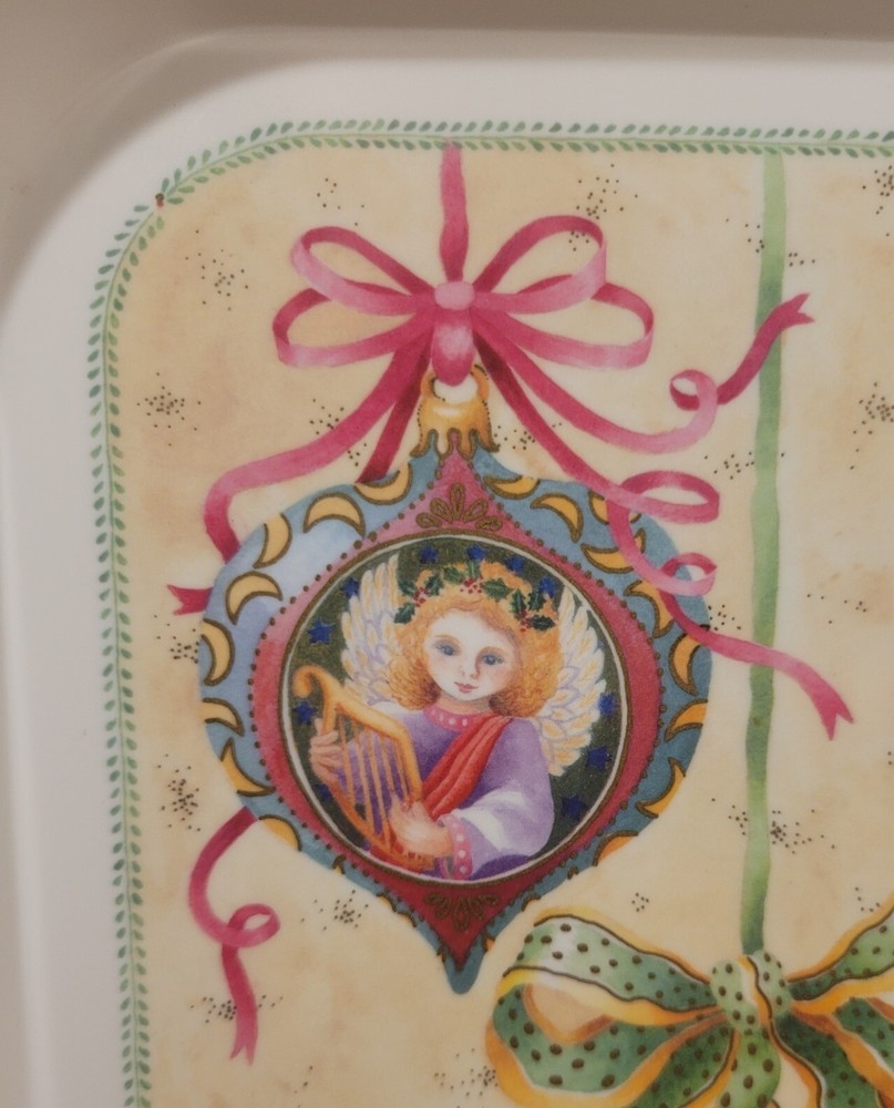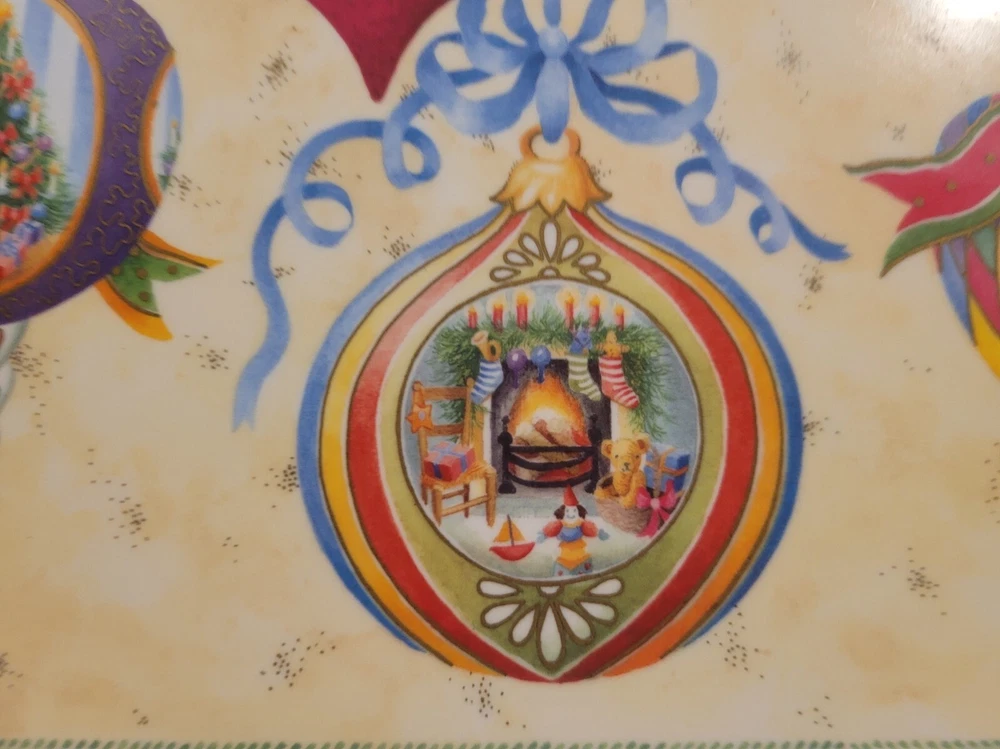 1995 Melamine Serving Tray Vintage Christmas Ornaments design Italy -17-in x11-in Add a touch of vintage charm to your kitchen this Christmas Holiday with this stunning melamine serving tray featuring beautifully colored, vintage Christmas ornament art designs. An original Design Imports serving tray made in Italy, the rectangular shape is ideal for easy storage and the sturdy melamine material ensures durability. Marked on front: “B copyright 1995 DIL” Marked on back: "Design Imports LTD Providence R.I. - Made in Italy” Measurements approximately: 17.5” L x 11.75” W x 0.75” H. Pre-owned, very good vintage condition - minor scuffs from normal usage - See photos for complete condition details. International buyers please check shipping costs before purchasing. Combined shipping is available, just request a combined invoice before paying. Feedback is greatly appreciated and always reciprocated. If you have any issues with this purchase please contact me, we will make every effort to make sure you are satisfied. #christmasornaments #christmasservingtray #vintagechristmas