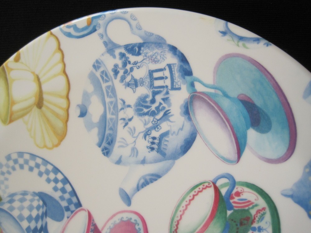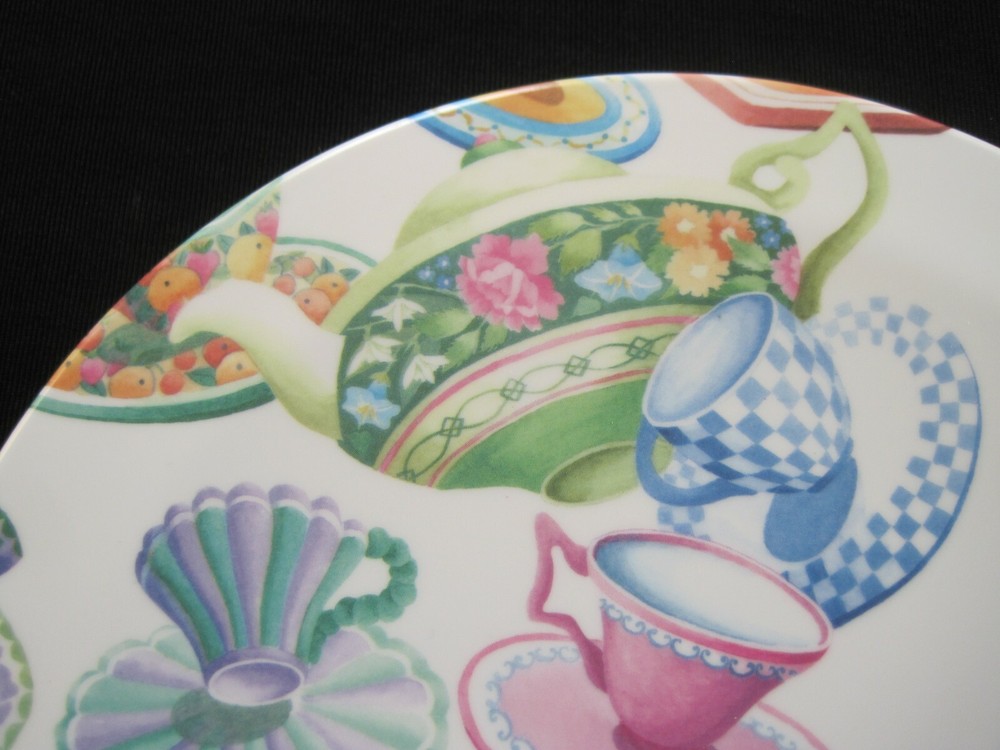Note: Colors are Brighter than Photos Show Lovely and Fun Melamine Trivet Raised Up on Three "Feet" Decorated with Colorful Collection of Teacups and Teapots 1995 Vintage; Signed JB By Design Imports Made in Italy Very good condition; no chips, cracks or scratches Size: 7-7/8" diameter, and 11/16" high Weight: 5.2 oz Shipping Weight, and Size: 13 oz , and 10" x 10" x 4" NOTE: Look carefully at photos since they are important part of description Please contact me with any questions. Since most of my items are from estate sales, I can't guarantee that an item has not been exposed to smoke, pets, perfume etc. previously. My own home is free of smoke, perfume and pets (love animals, but travel too much). Seller will pay return shipping only if item received is different from listing. PayPal is ONLY method of payment that is accepted. Payment expected within 3 days of purchase, please. Feedback : I would appreciate your leaving positive feedback if you are satisfied with my service. If there is anything that could be improved on, please contact me directly. I will of course leave feedback after I have received feedback from you. Thank You!