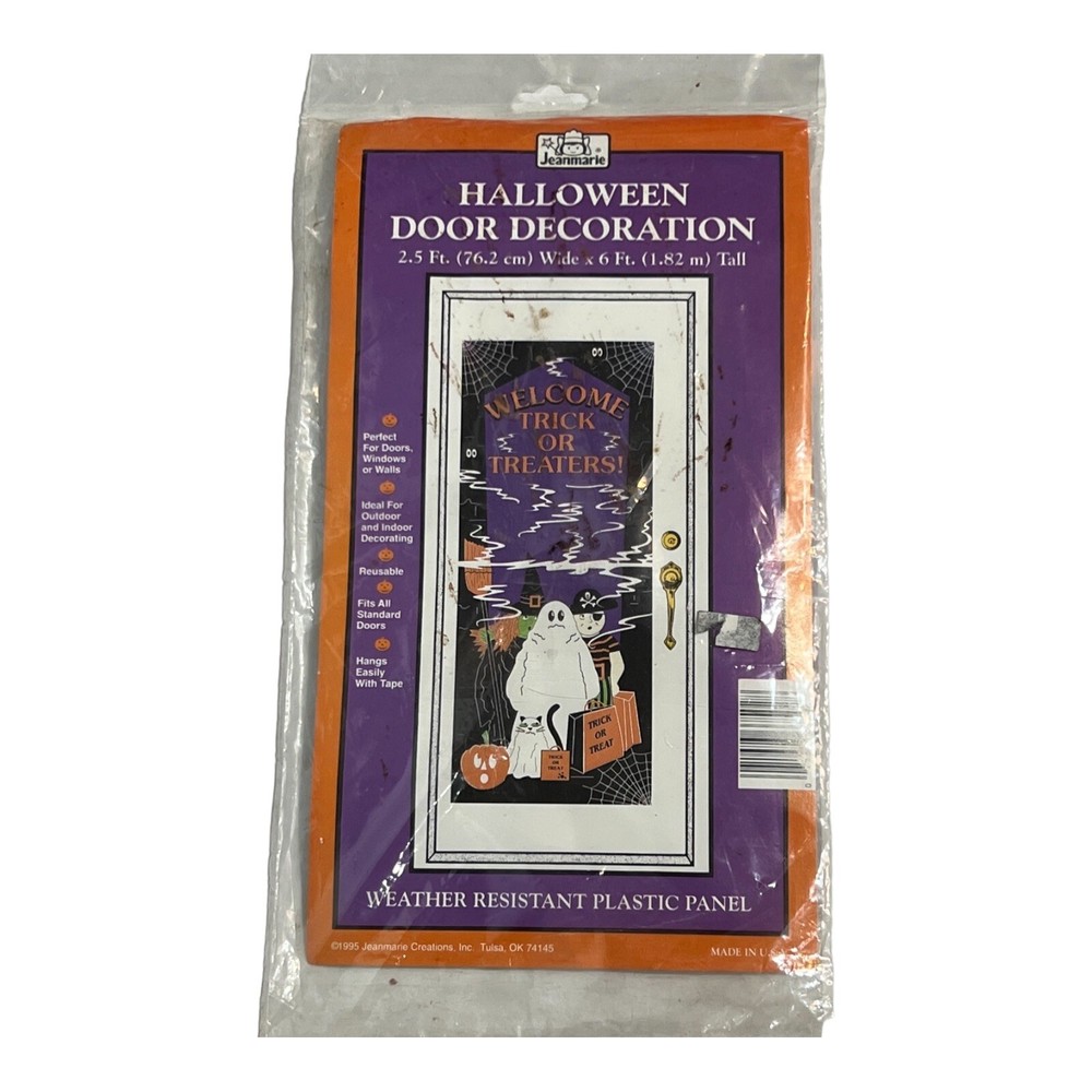1995 Vintage Jeanmarie Halloween Door Decoration 6’ x2.5’ Witch + 2 Wind Socks...