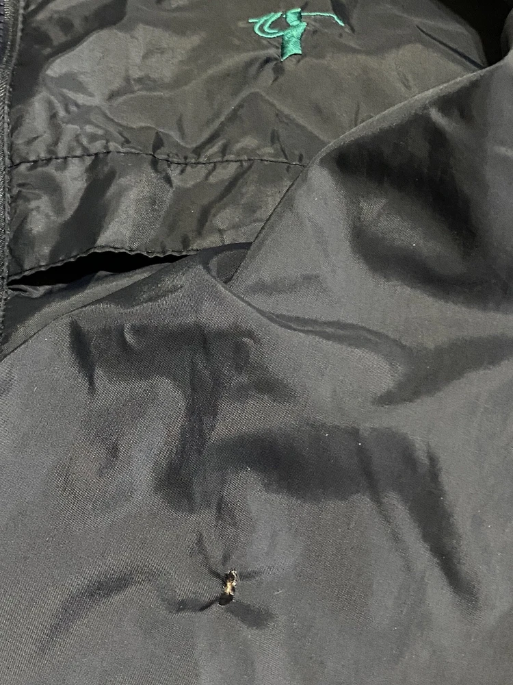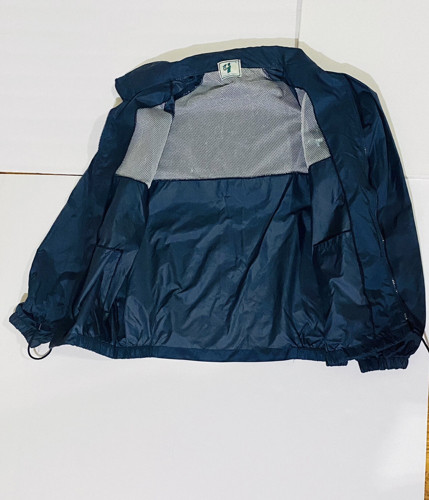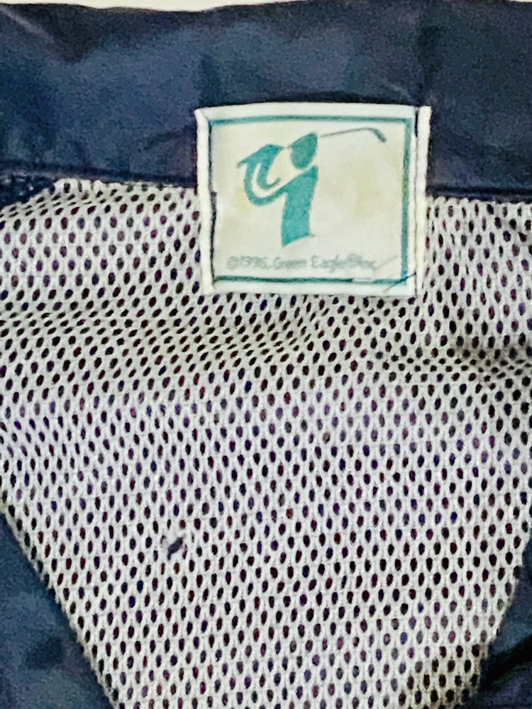 1996 Green Eagle Golf Wind Rain Jacket Mens 27 1/2”(L)x25 1/2(w) Vtg. Features drawstrings at the hem There is an imperfection to mesh below in side collet label. Imperfection to left mid-sleeve Discoloration to inside label Please review all pictures.