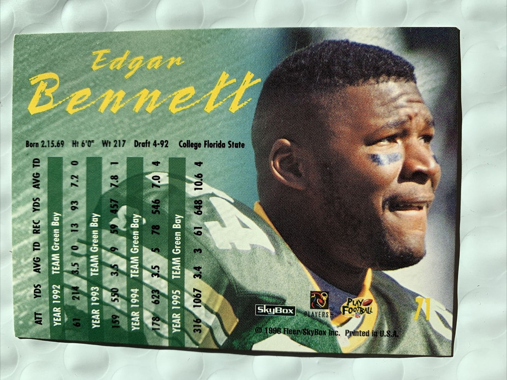 1996 SkyBox Impact Rookies Football Card #71 Edgar Bennett AIR. Condition is "Like New". Shipped with USPS First Class....