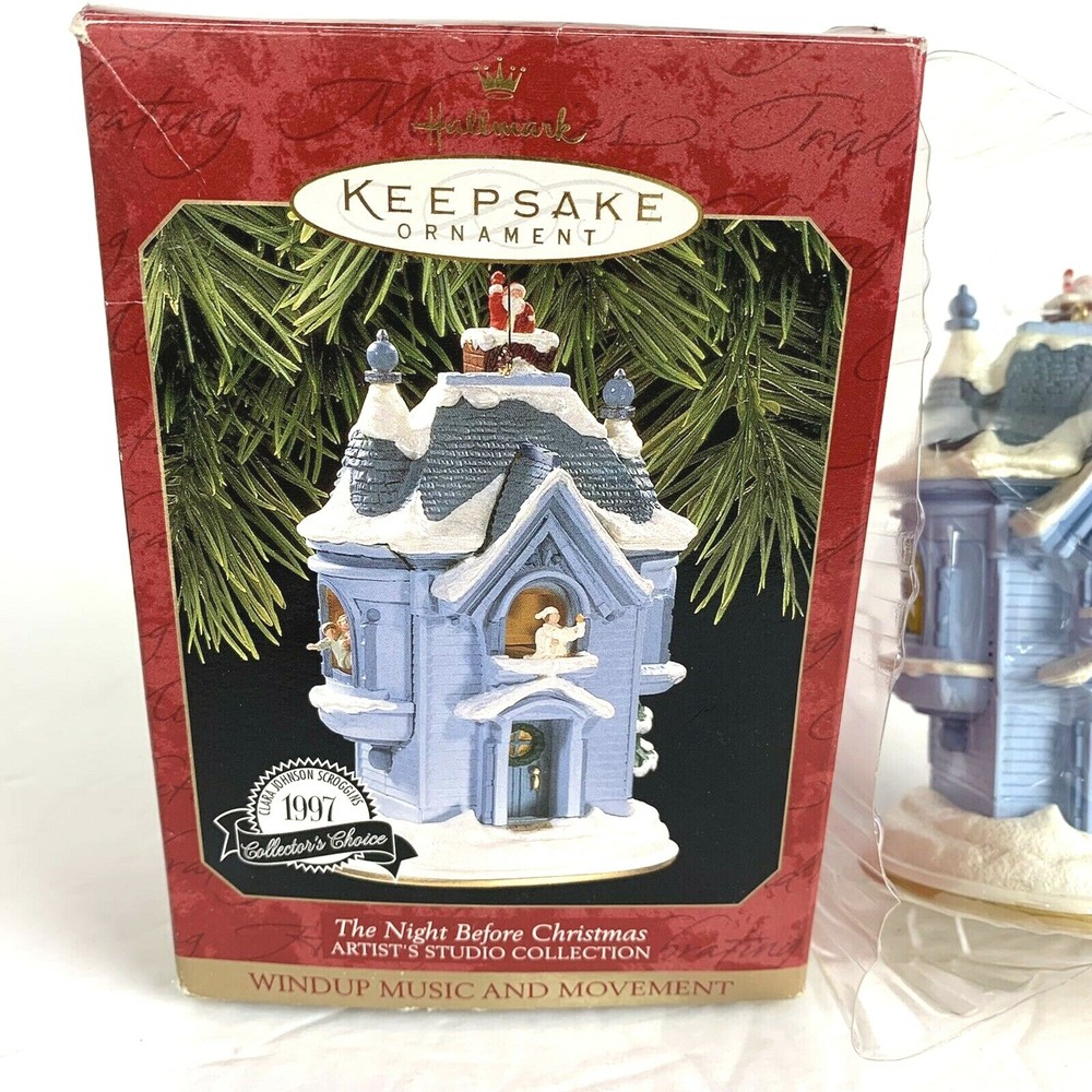 1997 Hallmark Keepsake Ornament The Night Before Christmas Wind Music Movement Box has some light wear ...see photos
