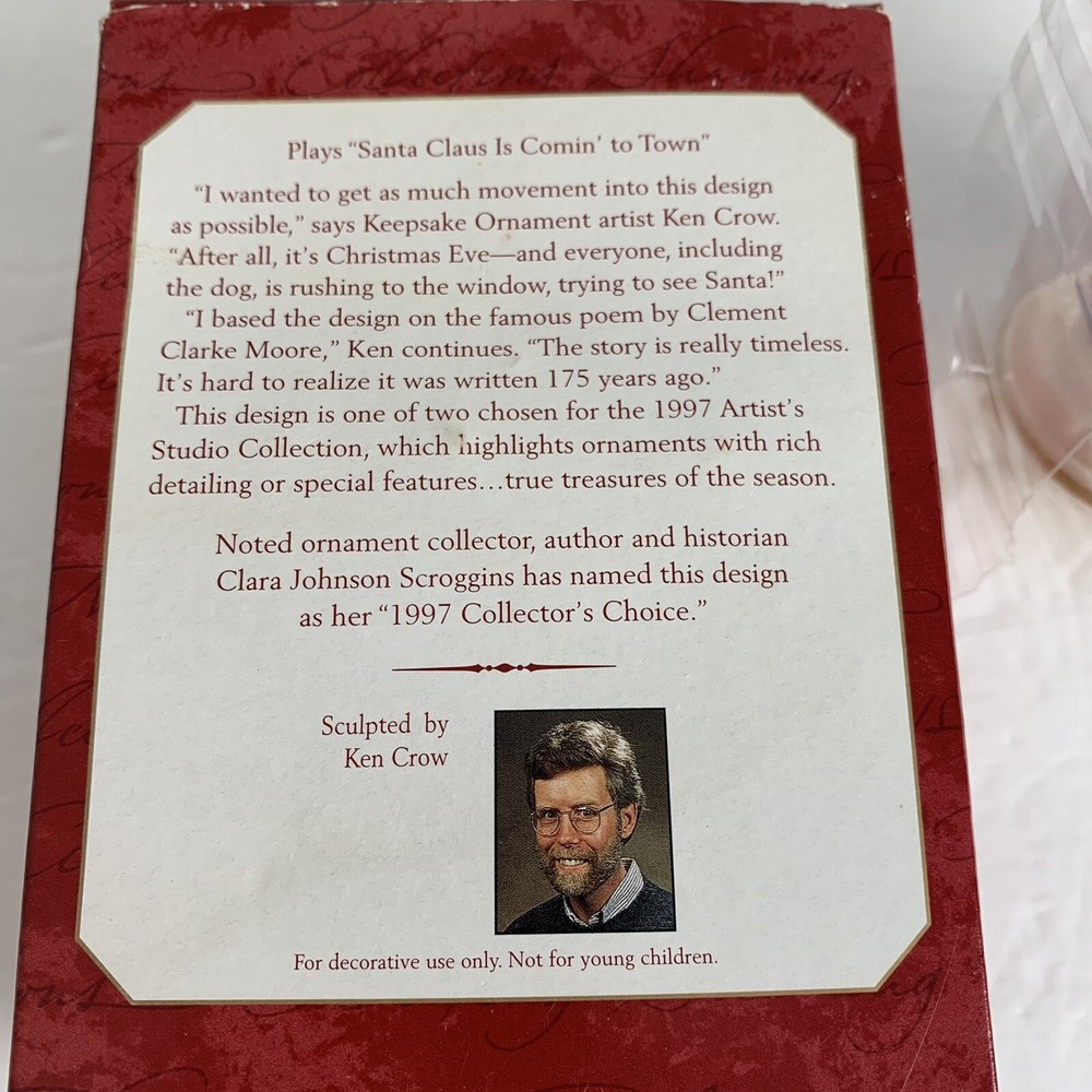 1997 Hallmark Keepsake Ornament The Night Before Christmas Wind Music Movement Box has some light wear ...see photos...
