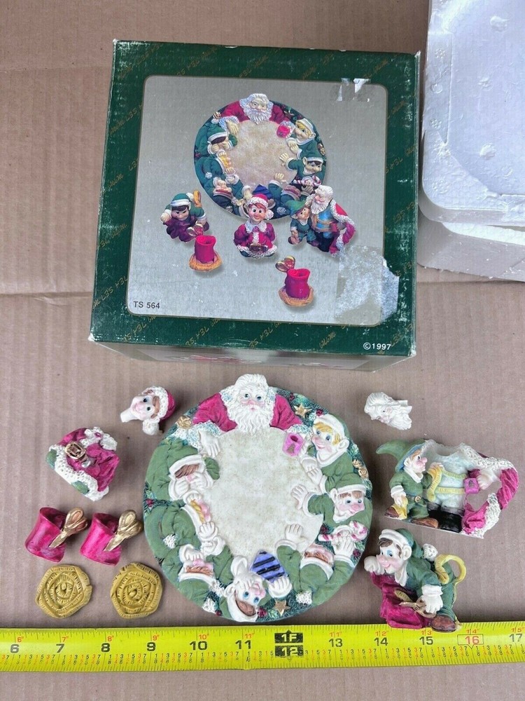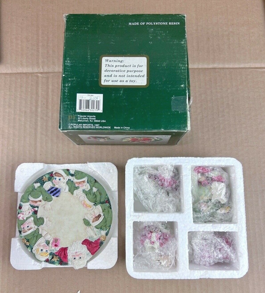1997 Popular Imports Christmas Miniature Tea Set Santa Claus & Elf Elves Design 10 Piece with Original Box as pictured. Good Condition.
