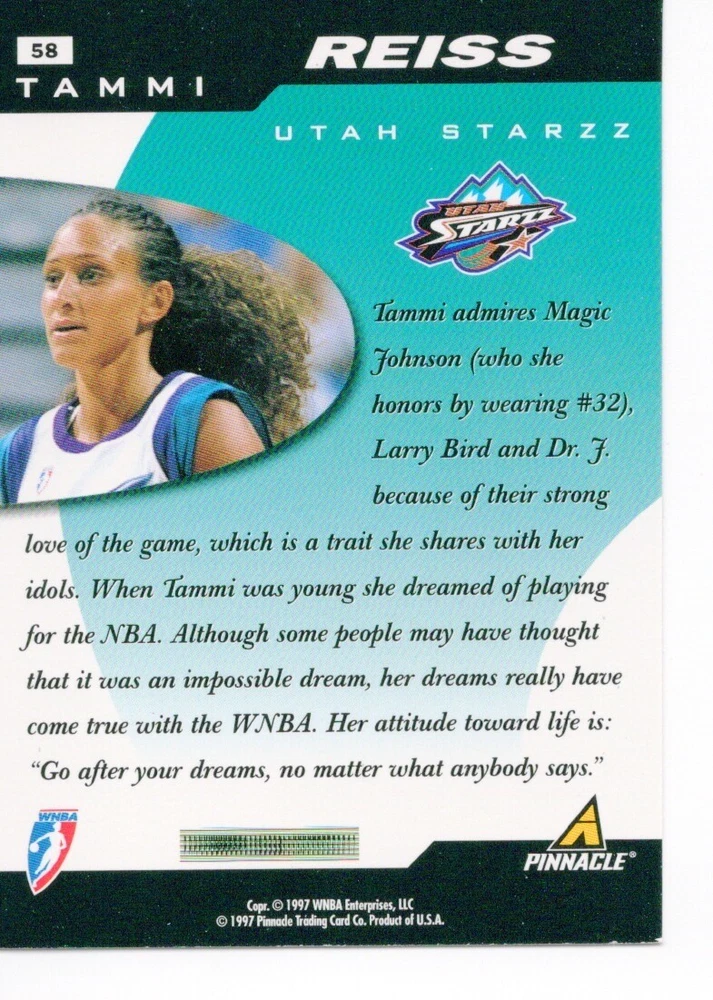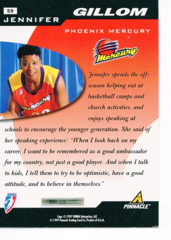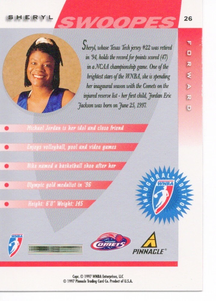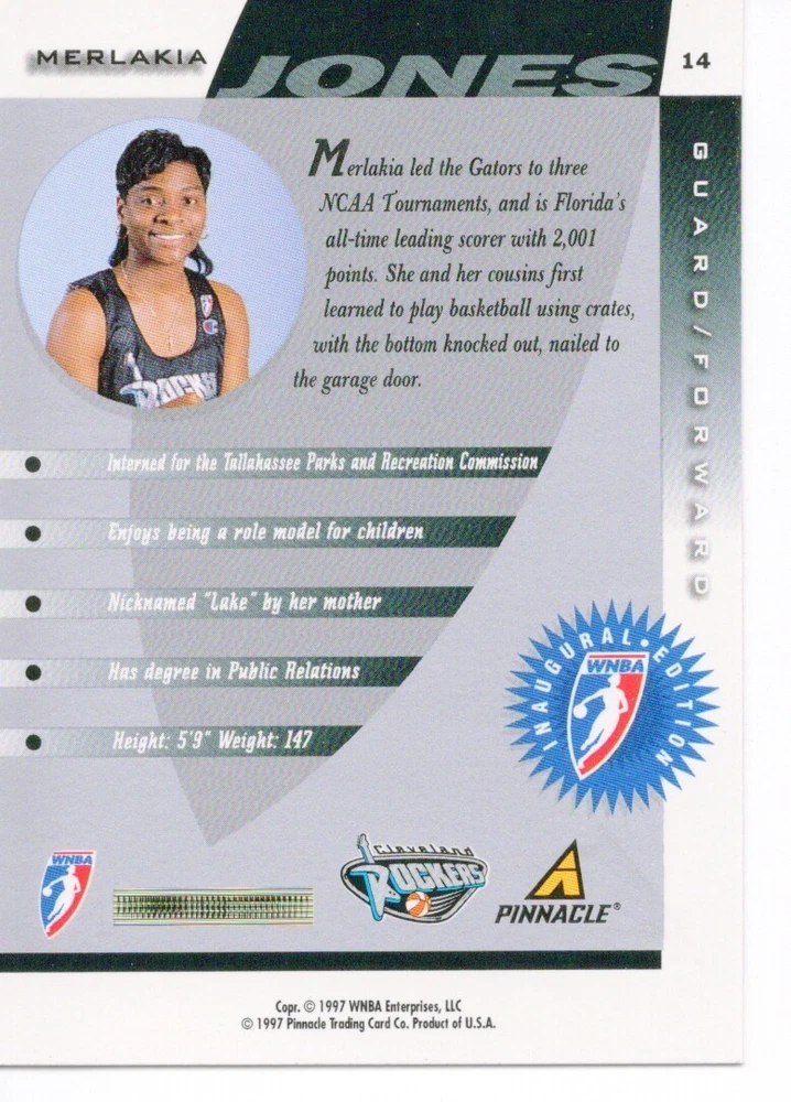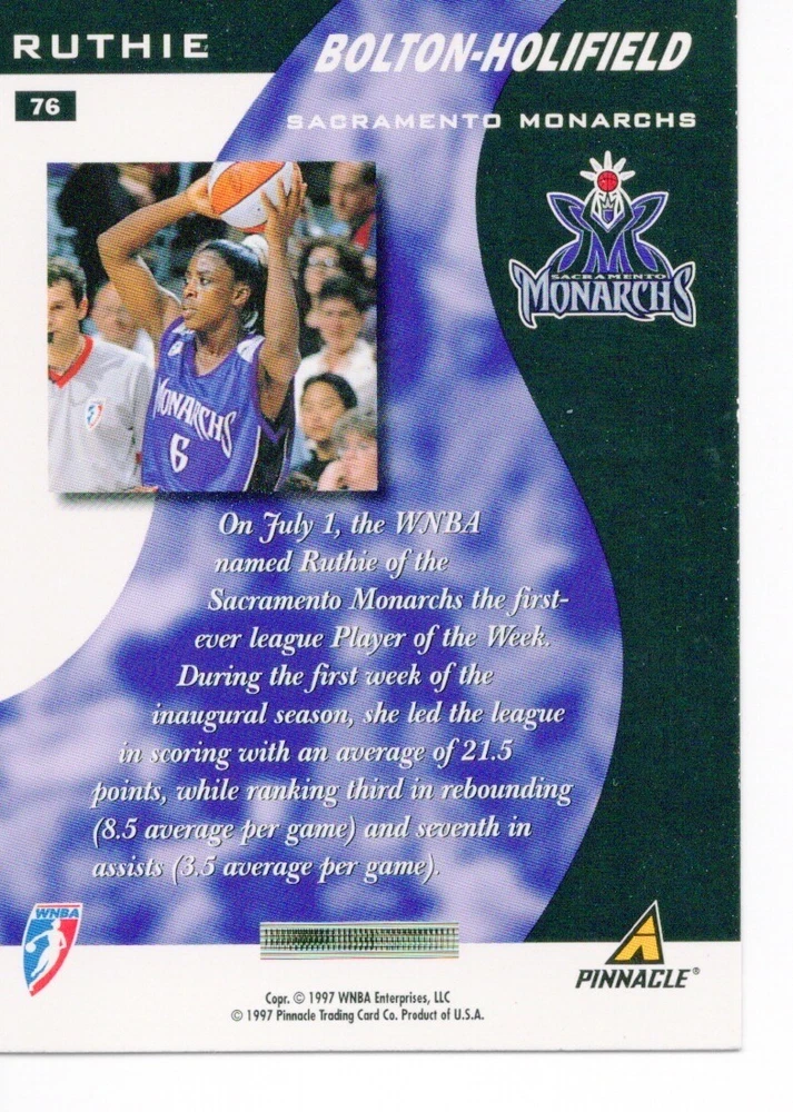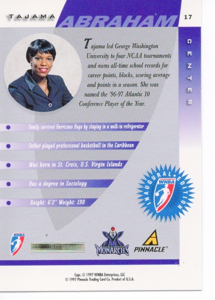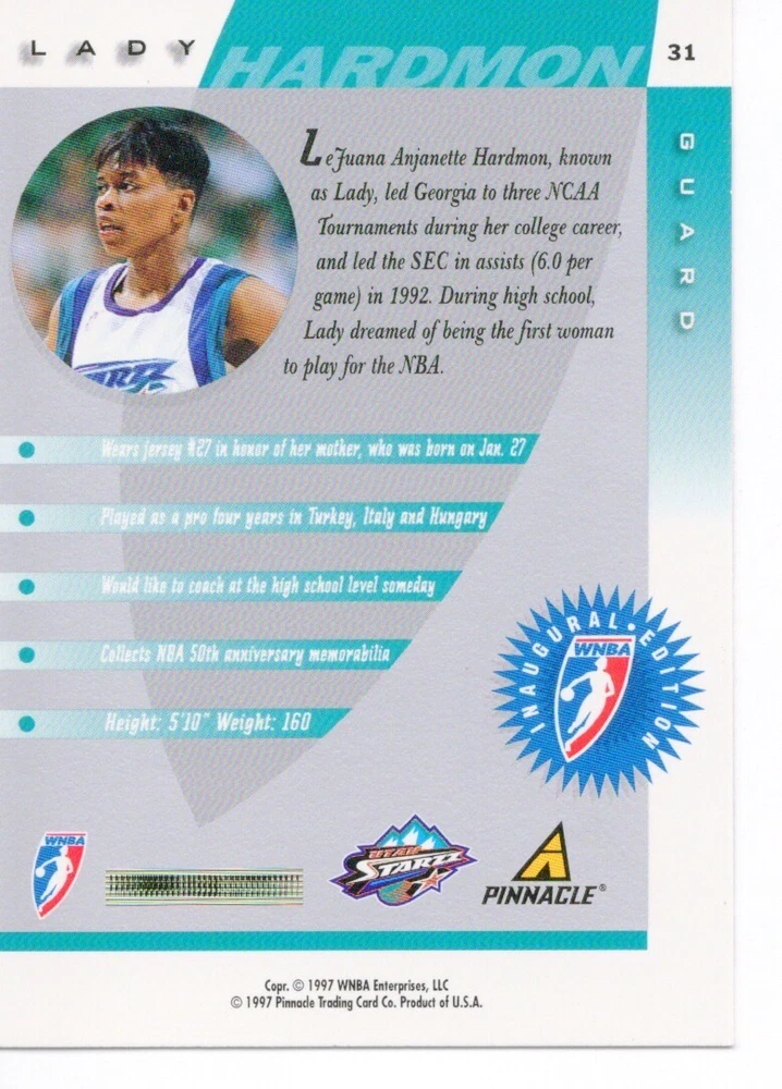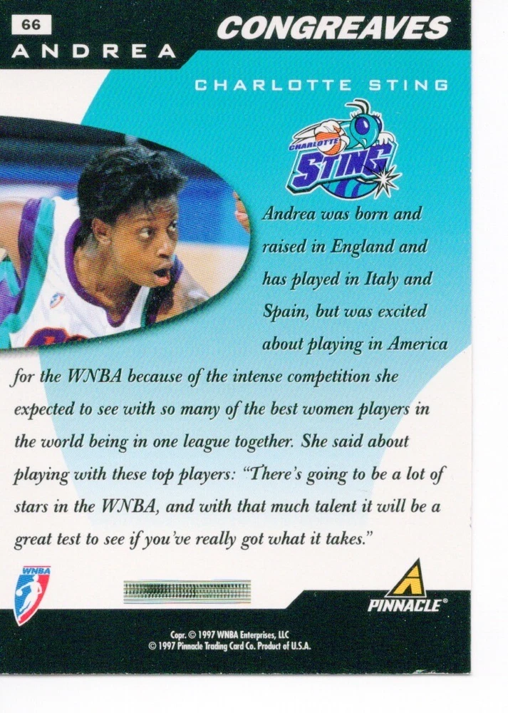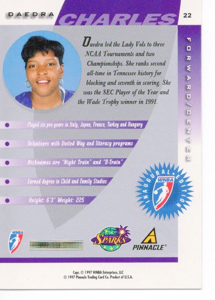 1997 WNBA Pinnacle Inside Inaugural RC's - Pick from List - Complete Your Set 🔥 Please pick the item(s) you wish to purchase from the list and add to your shopping cart. If you purchase each item separately, we will not be able to combine your purchases. Please go to your cart and complete the checkout once you are done with your purchases. Shipping and handling Payment Methods Shipped in plastic sleeve and a top loader eBay standard envelope $1.20 and $1.00 for each additional eligible item you buy from carberry. Pay a maximum of $4.75 shipping on all eligible items from carberry. Offering combined shipping discounts