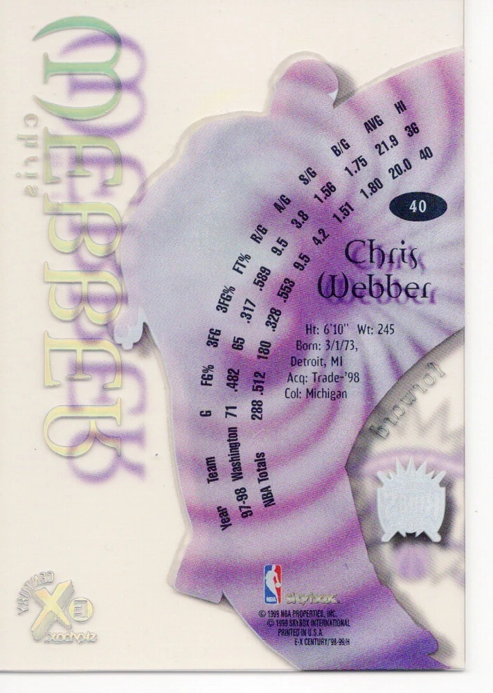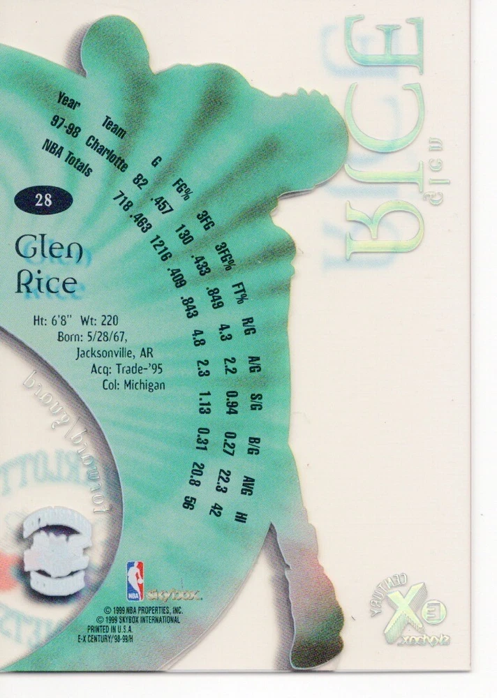 1998-99 SKYBOX E-X CENTURY BASKETBALL - Pick From List Please pick the item(s) you wish to purchase from the list and add to your shopping cart. If you purchase each item separately, we will not be able to combine your purchases. Please go to your cart and complete the checkout once you are done with your purchases. Shipping and handling Payment Methods Shipped in plastic sleeve and a top loader eBay standard envelope $1.20 and $1.00 for each additional eligible item you buy from carberry. Offering combined shipping discounts