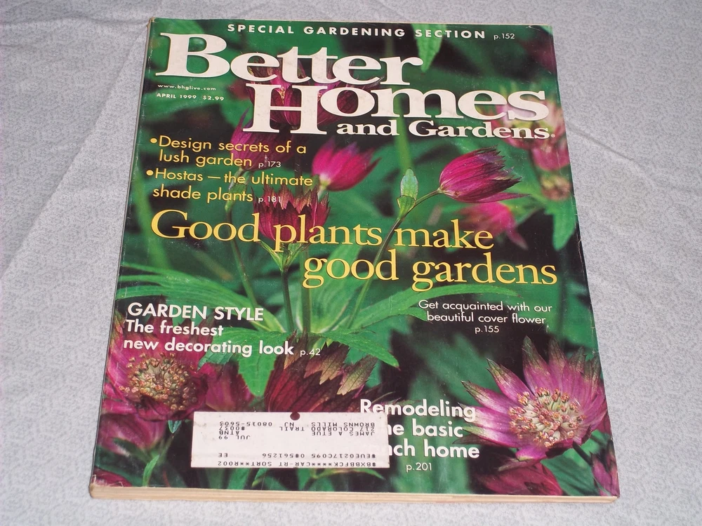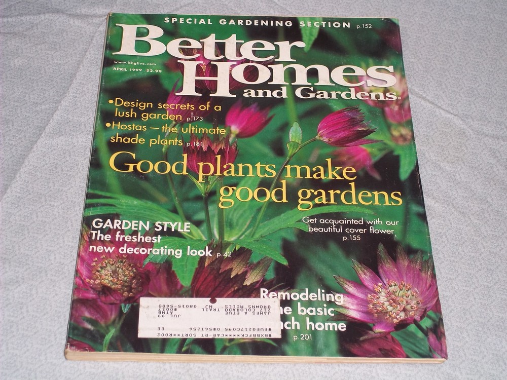 I have an extensive collection of vintage collectibles that I will be offering over the next several weeks and months on eBay. It includes magazines, movie posters, autographs and other paper items. I have a true passion for buying and selling vintage ephemera and hope that you enjoy my listings!!! I have sold on eBay for the past 10 + years. Up for sale is a Better Homes & Gardens magazine from April, 1999 featuring a very nice cover of Good Plants & Gardens that would look great framed as a piece of art!! This issue is in overall very good condition showing some minor wear due to age and storage. Please look at the pictures and feel free to ask any questions you might have, as I am happy to answer them. I have many more items to list and if you have further interest in other issues or in large purchases of magazines, please contact me. Happy Bidding!!! I do combine on shipping to make it as cheap as possible if you are buying multiple items. If you are interested in bulk purchases of magazines or movie posters, please contact me and I will be happy to work with you. Also, if you have a large collection of paper collectibles to sell, please contact me and I would be happy to listen to what you have!