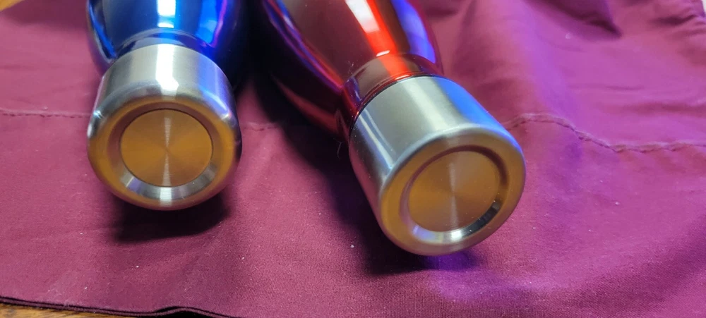 2 -18 oz Stainless Steel bottles, one blue and one red. They're being sold as one item. Both Water Bottles are slightly used with some minor imperfections/ blemishes. This Lot of 2 slightly used bottles are being sold together. Please note there are some imperfections due to being slightly used. Those have not affected the performance- at all! They do keep cold drinks cold for a long time due to the double insulated vacuum sealed walls. I have not tried hot drinks but they should keep drinks hot hot due to the double sealed walls. If you have any questions or desire more pictures please let me know. Free shipping!!!! Items typically ship within 24 hours from receipt of payment.