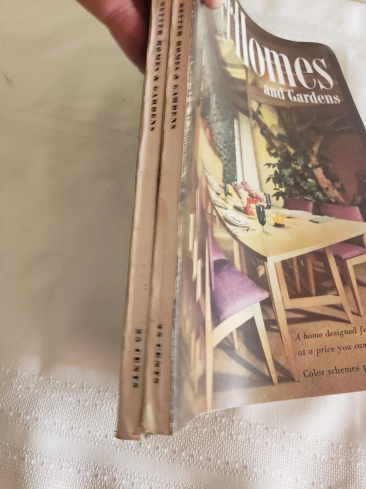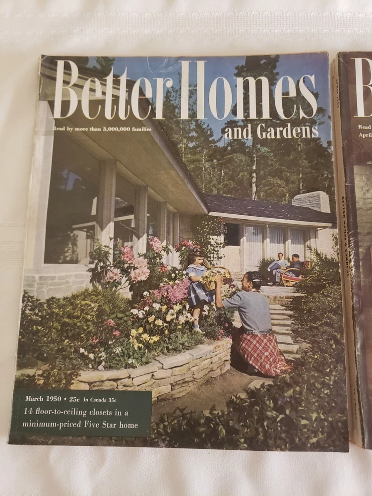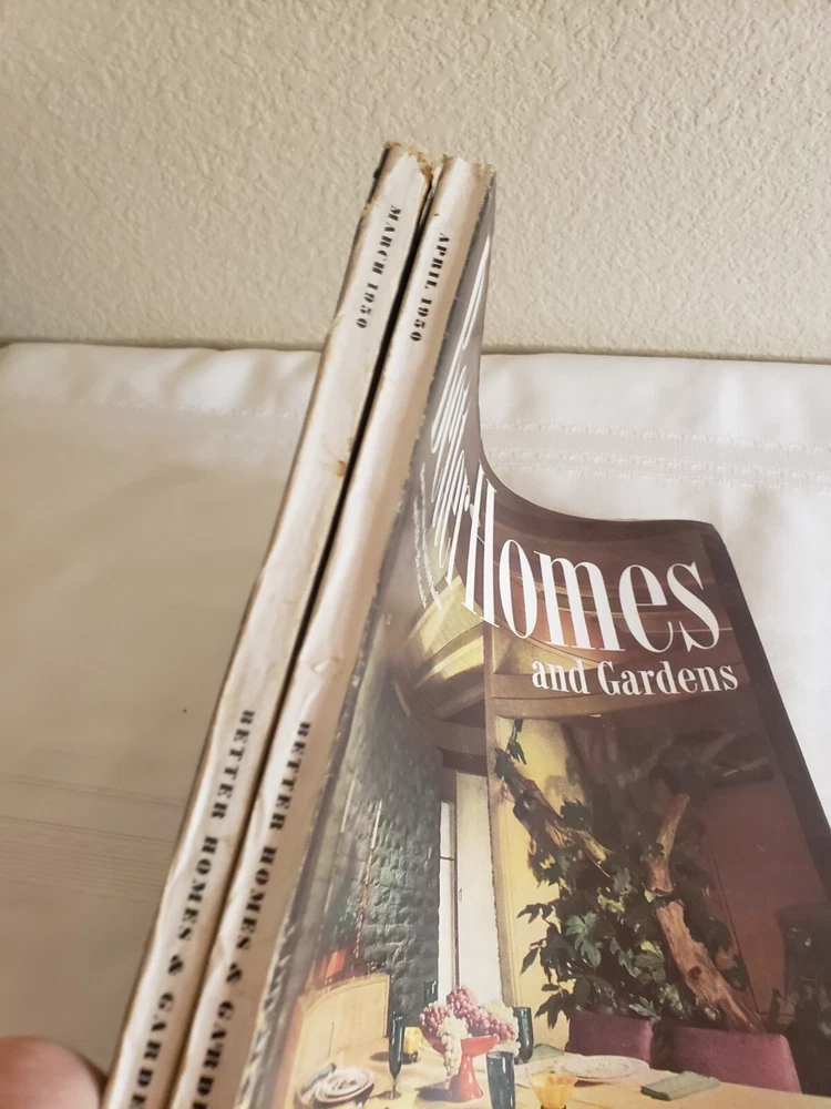 (2) 1950 Better Homes & Gardens Magazines March and April. All magazines are intact. They do have edge wear which is a little worse on the spine. Cover might have some light scuffing or small tears. Please see all photo's. returns only if not as described. Shipping cost in the USA only will ship USPS. will combines Ebay items for best shipping cost. Thank you for looking!